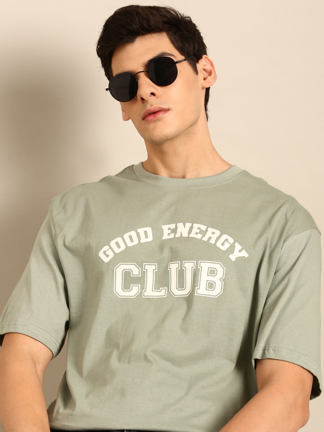 Elevate your style with our Good Energy Club Sage Typography Print Oversized Fit Tshirt. The...