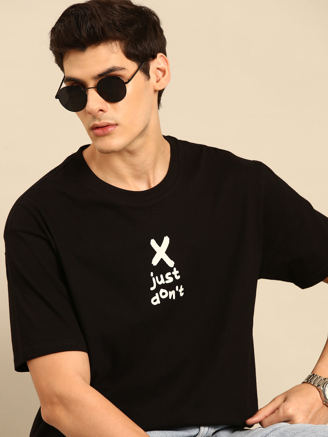 Unleash your playful side with the Just Don't oversized t-shirt. Featuring a quirky white typography...