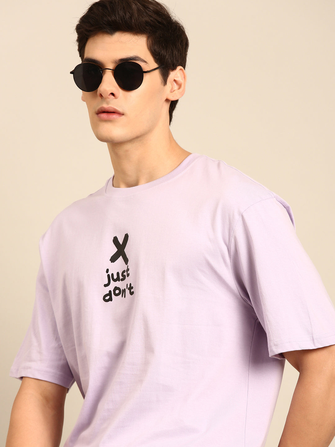 Be fashionably outspoken with our Just Don't tshirt in lilac! Its typography print and oversized...