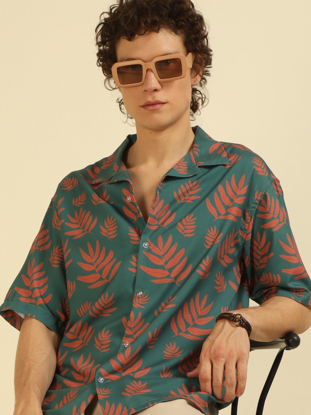 Green Floral Print Oversized Fit Shirt