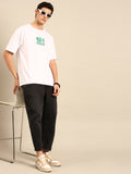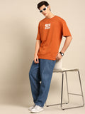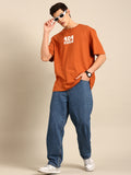 This t-shirt features a brown typography print and has an oversized fit for a stylish and comfortable look.