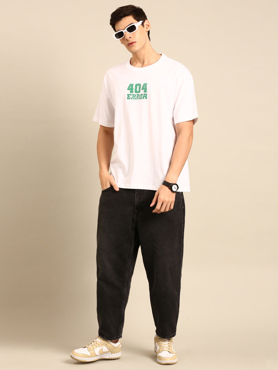 404 Error: White typography print oversized fit tshirt