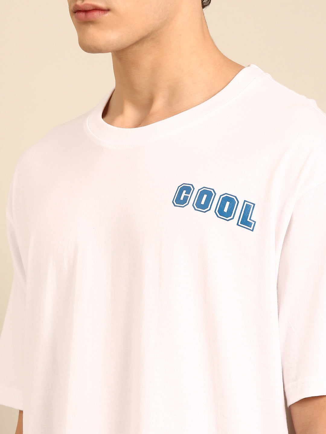 Stay effortlessly stylish and comfy with the Be Cool White Printed Oversized Tshirt. Its relaxed fit lets you move freely while the bold print adds a fun, confident vibe to your look. Perfect for laid-back days when you want to keep things cool and casual without trying too hard.