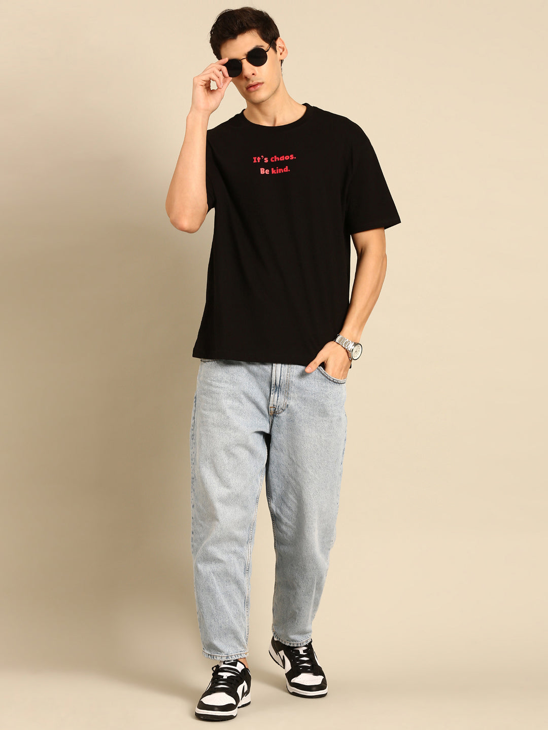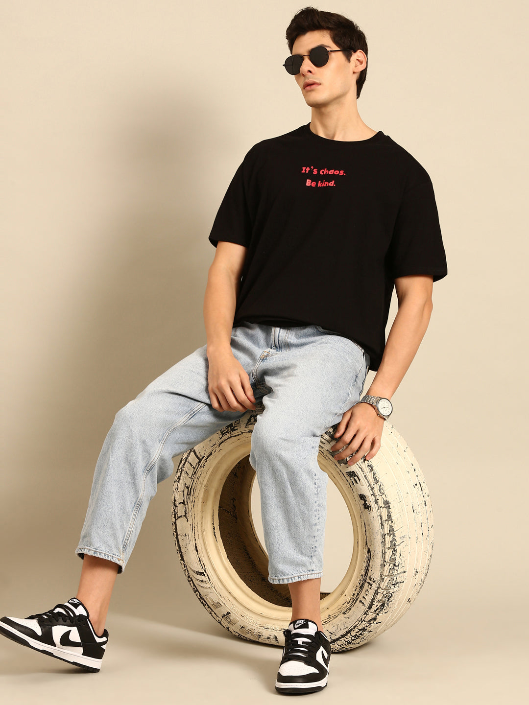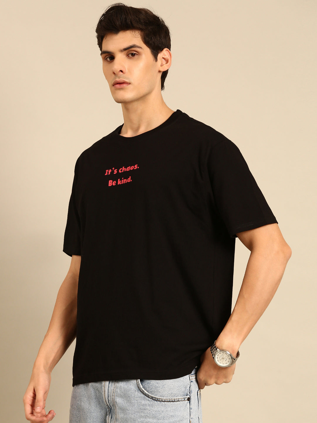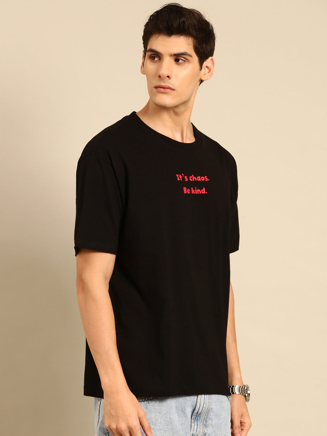 Inject some fun and quirkiness into your wardrobe with our Be Kind oversized fit tshirt. The black typography print adds a touch of edginess, while the relaxed fit ensures maximum comfort. Perfect for spreading positivity and style!