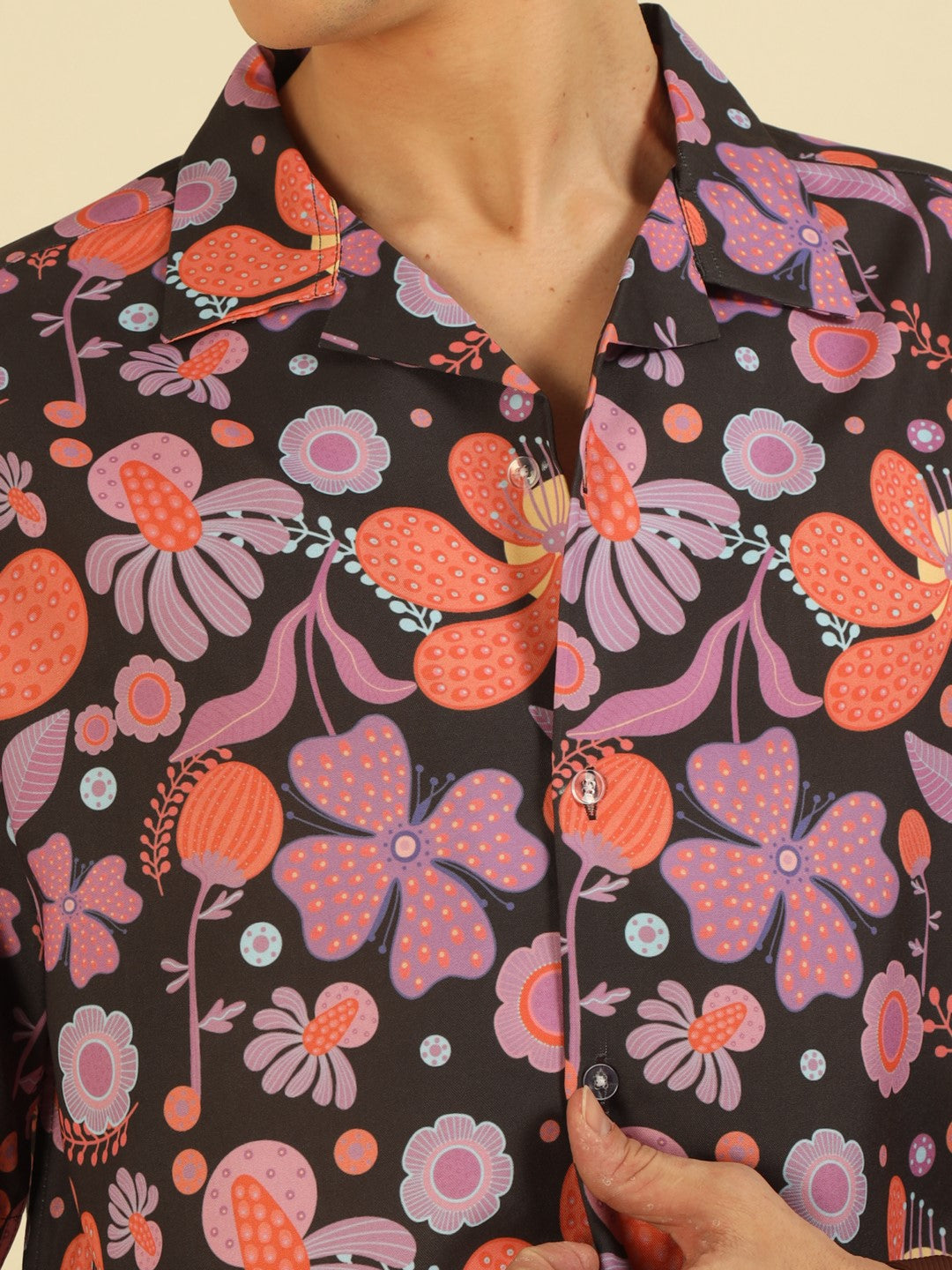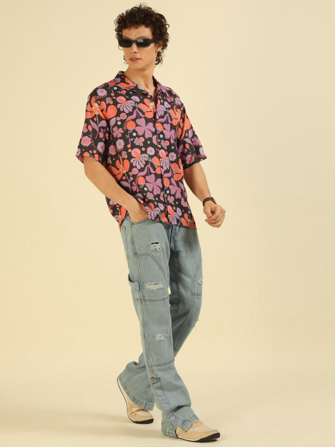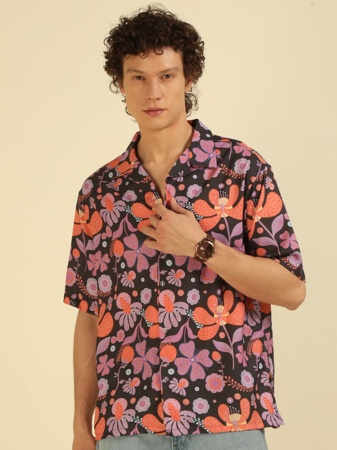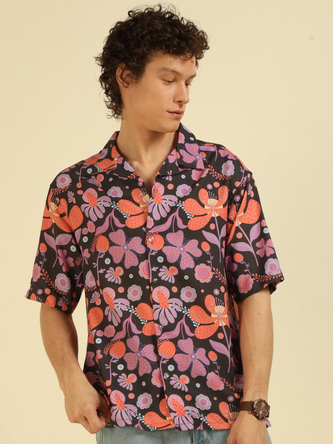 Add a bold touch to your wardrobe with our Black Floral Print Oversized Fit Shirt. With its playful and quirky floral print, this shirt is perfect for those who don't take themselves too seriously. Featuring a comfortable oversized fit, it's both stylish and fun. (No boring shirts here!)