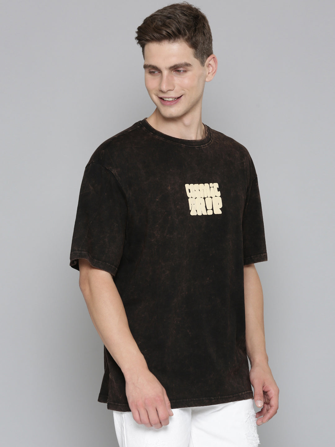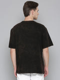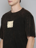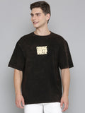 Black Typography COSMIC TRIP puff Print Acid Wash Oversized Tshirt