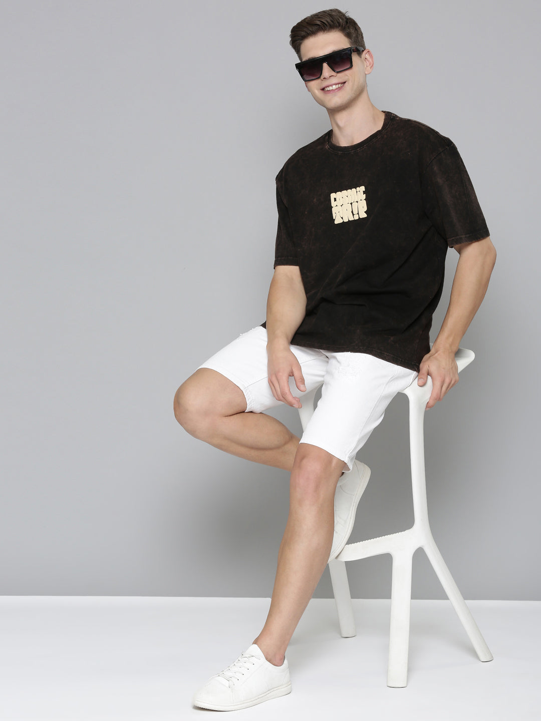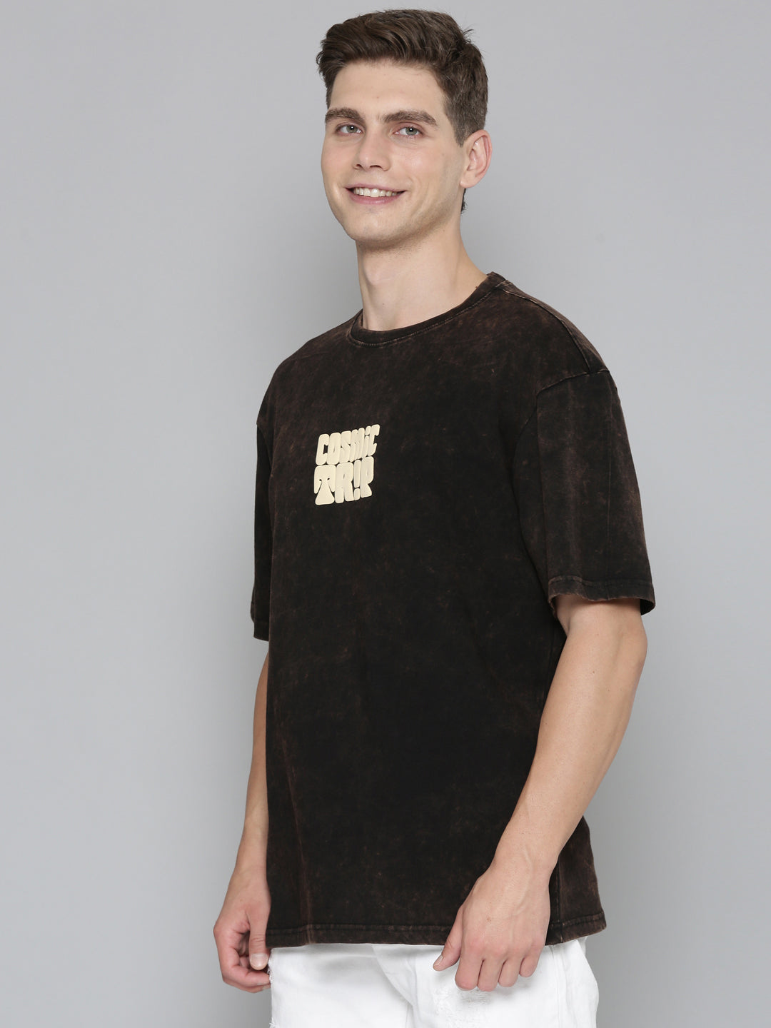 Take your style out of this world with our Black Typography COSMIC TRIP Tshirt. Featuring a playful puff print design and trendy acid wash, this oversized tee is sure to make a statement. Perfect for those who love to stand out and have a good time!