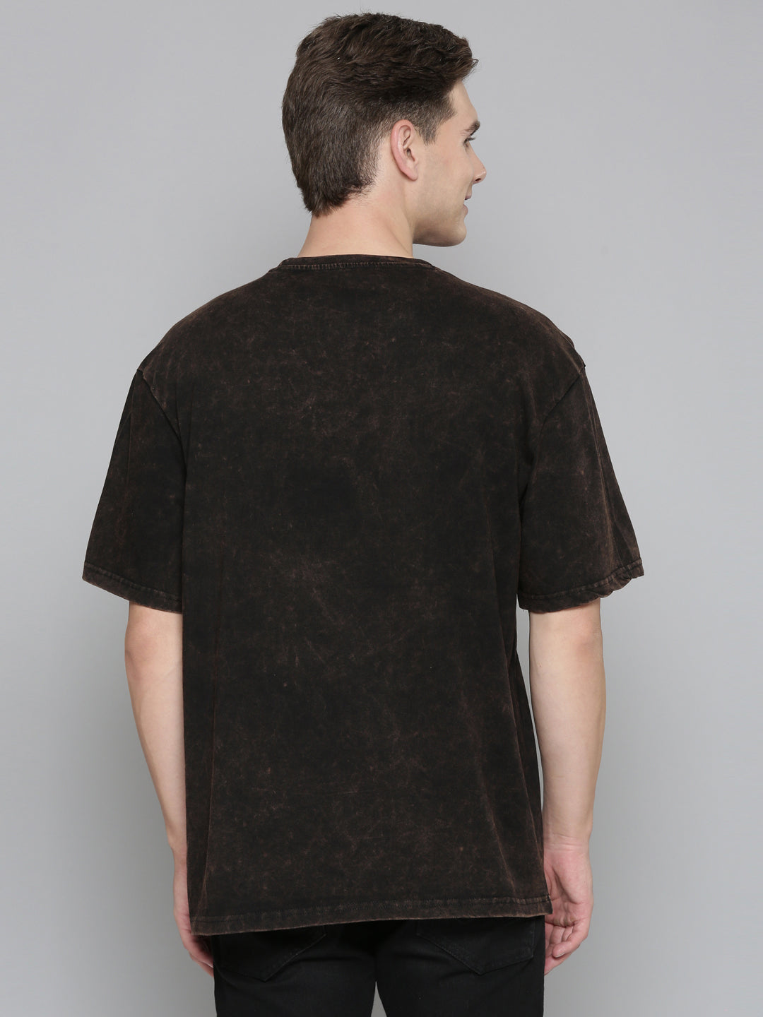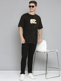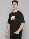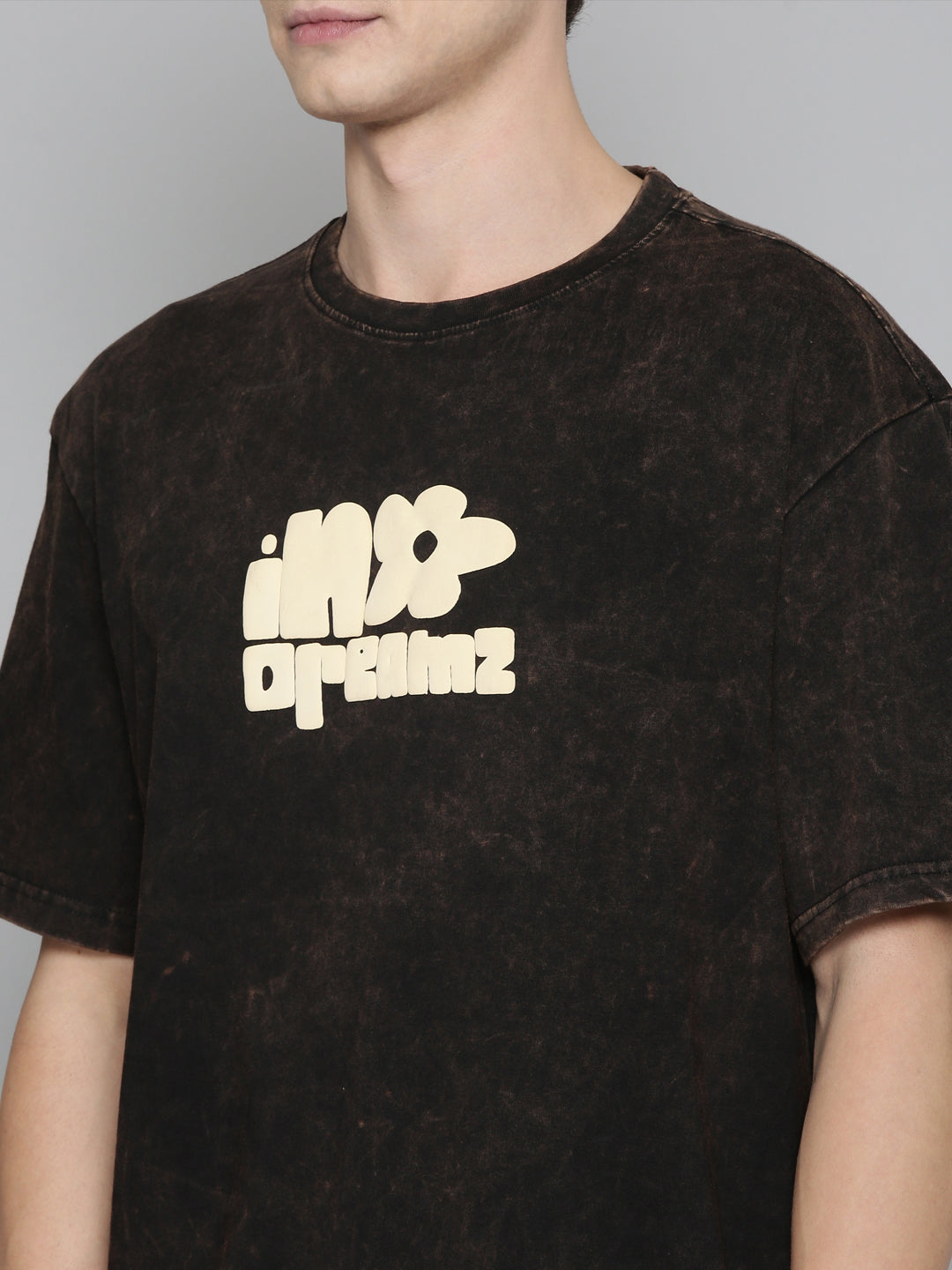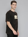 Black Typography puff Print Acid Wash Oversized Tshirt
