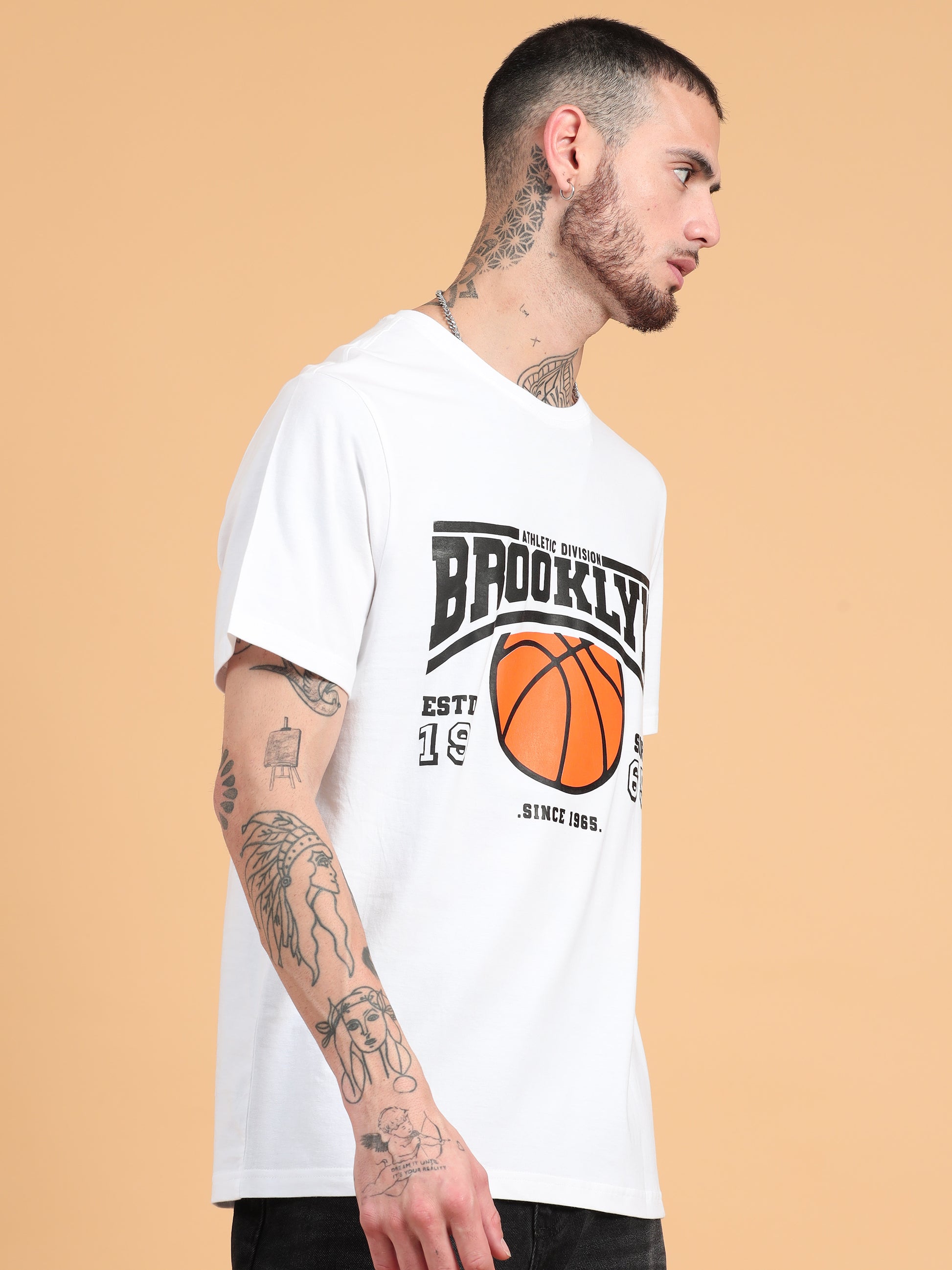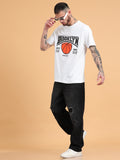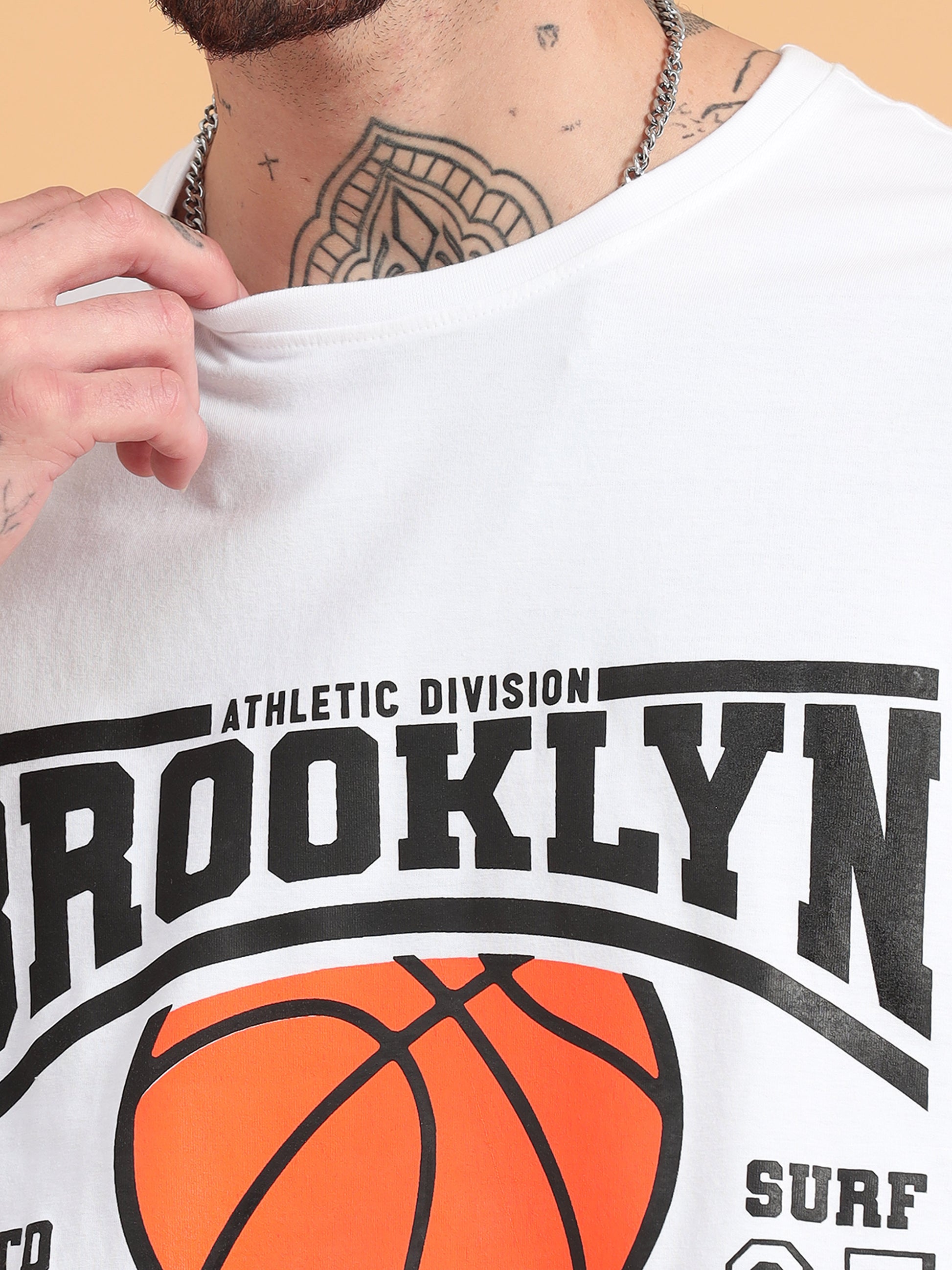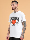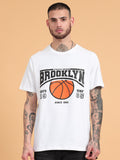 Brooklyn Basketball: White Typography Print Regular Fit Tshirt