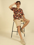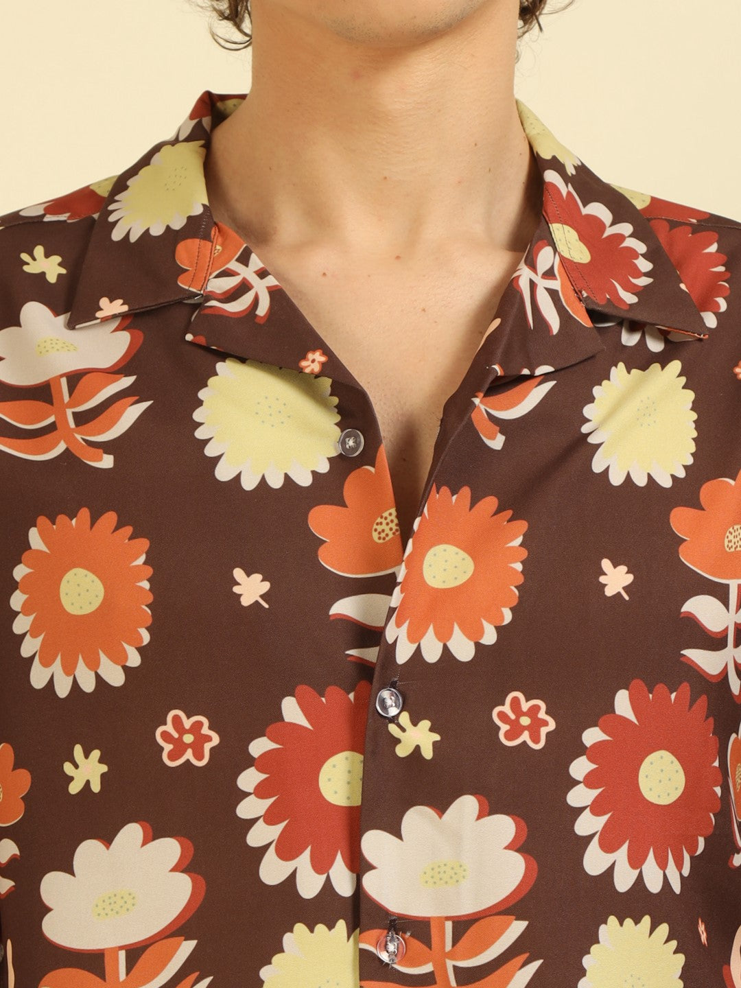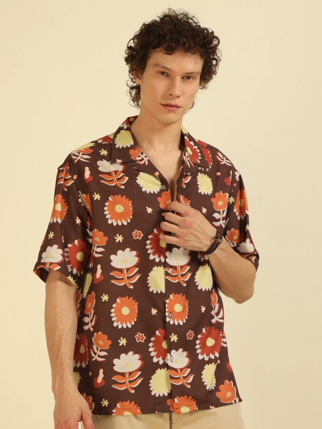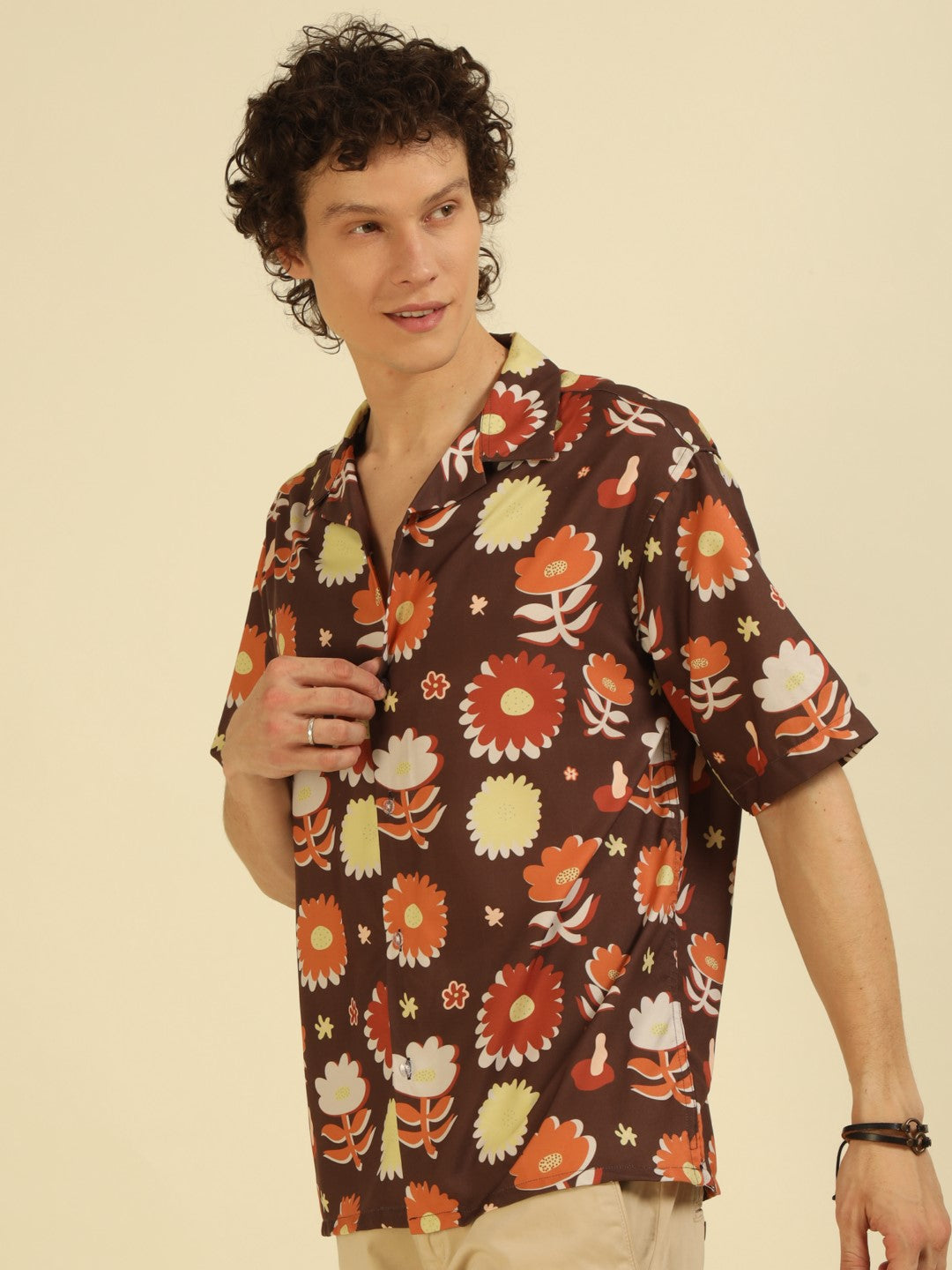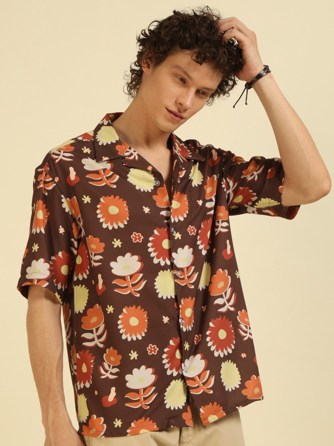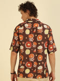 Brown Floral Print Oversized Fit Shirt