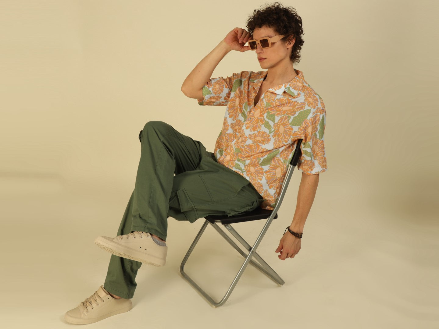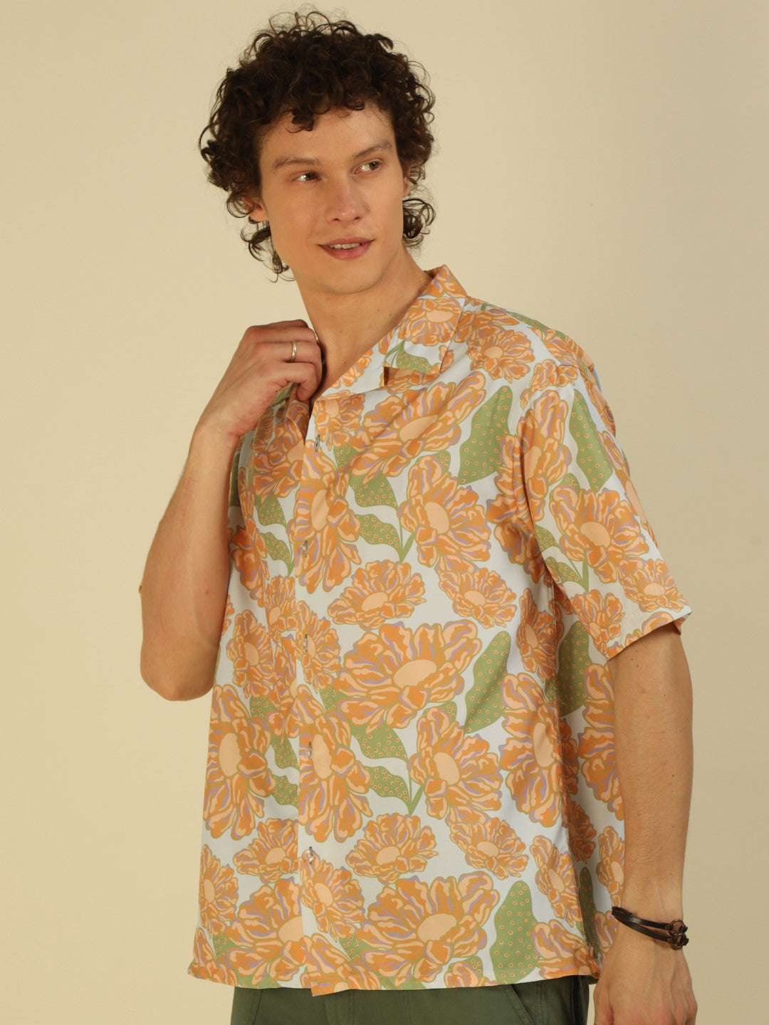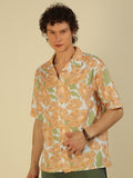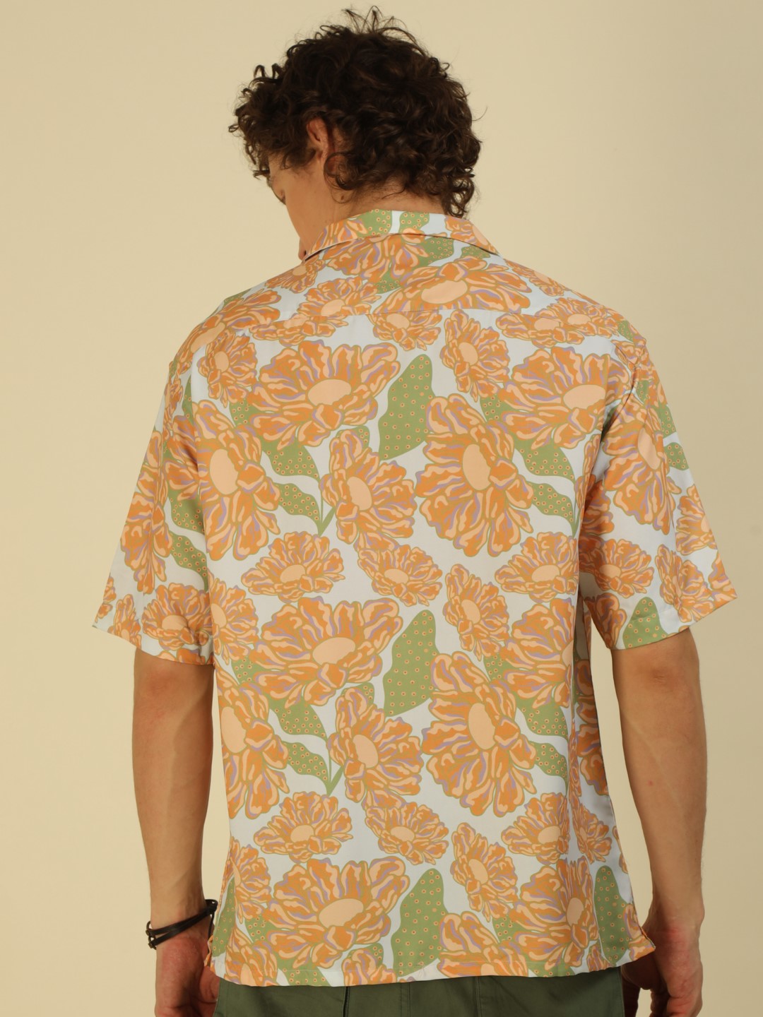 Elevate your style with this oversized shirt in a trendy brown floral print. With its loose fit, you'll stay comfortable while also making a statement. Perfect for a casual day out or a night on the town, this shirt is a must-have for any fashion-forward individual.