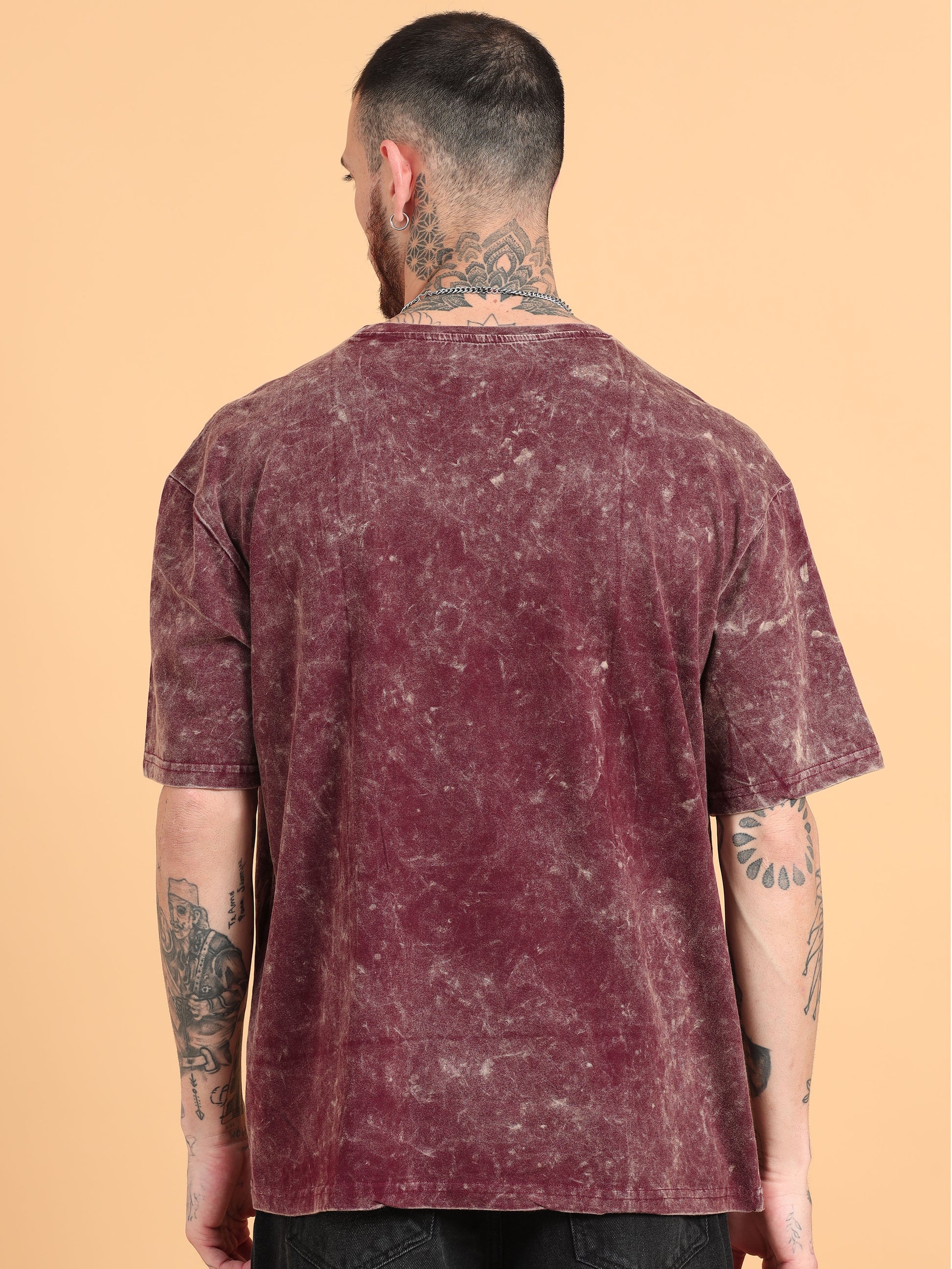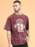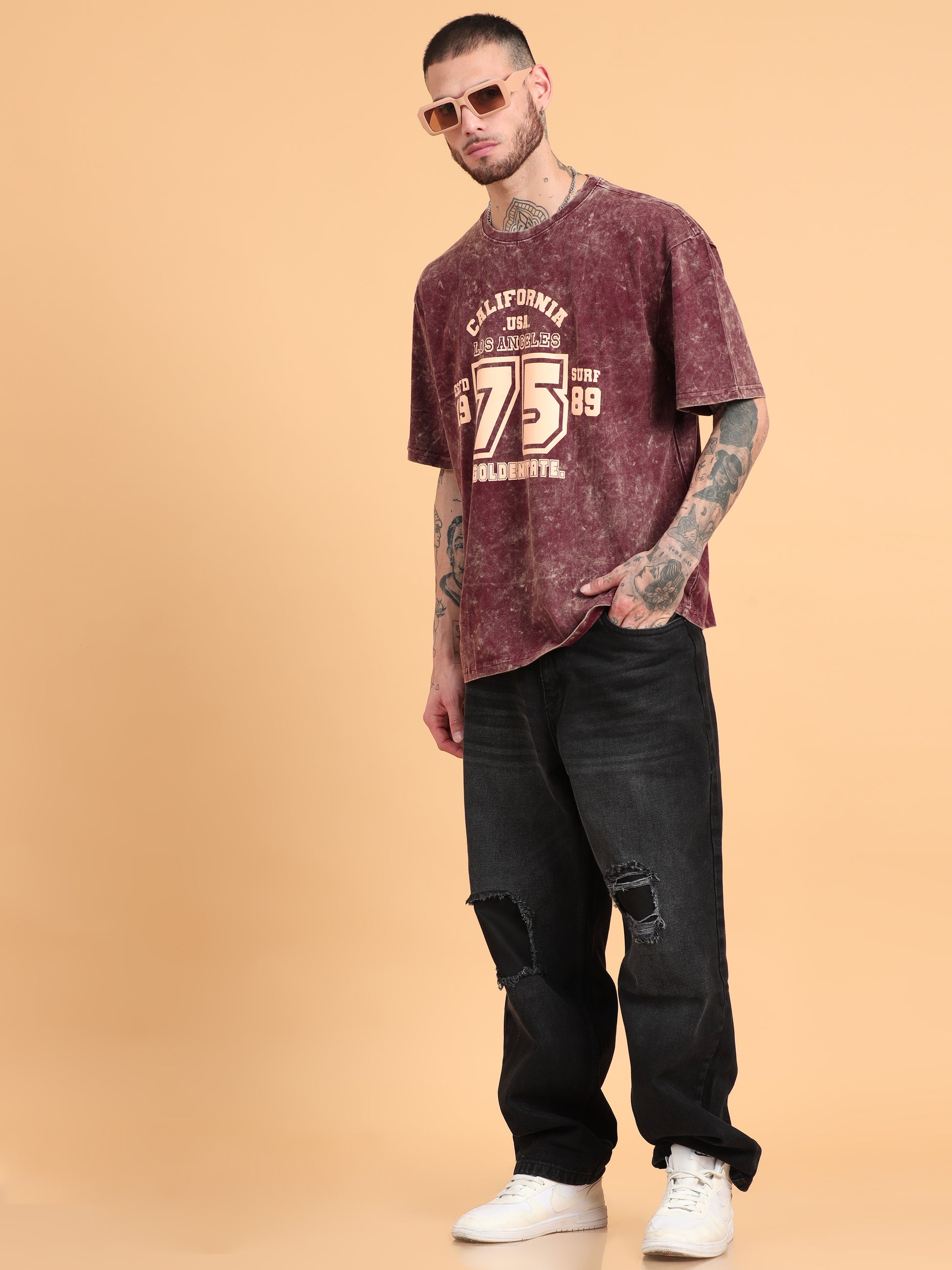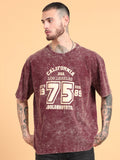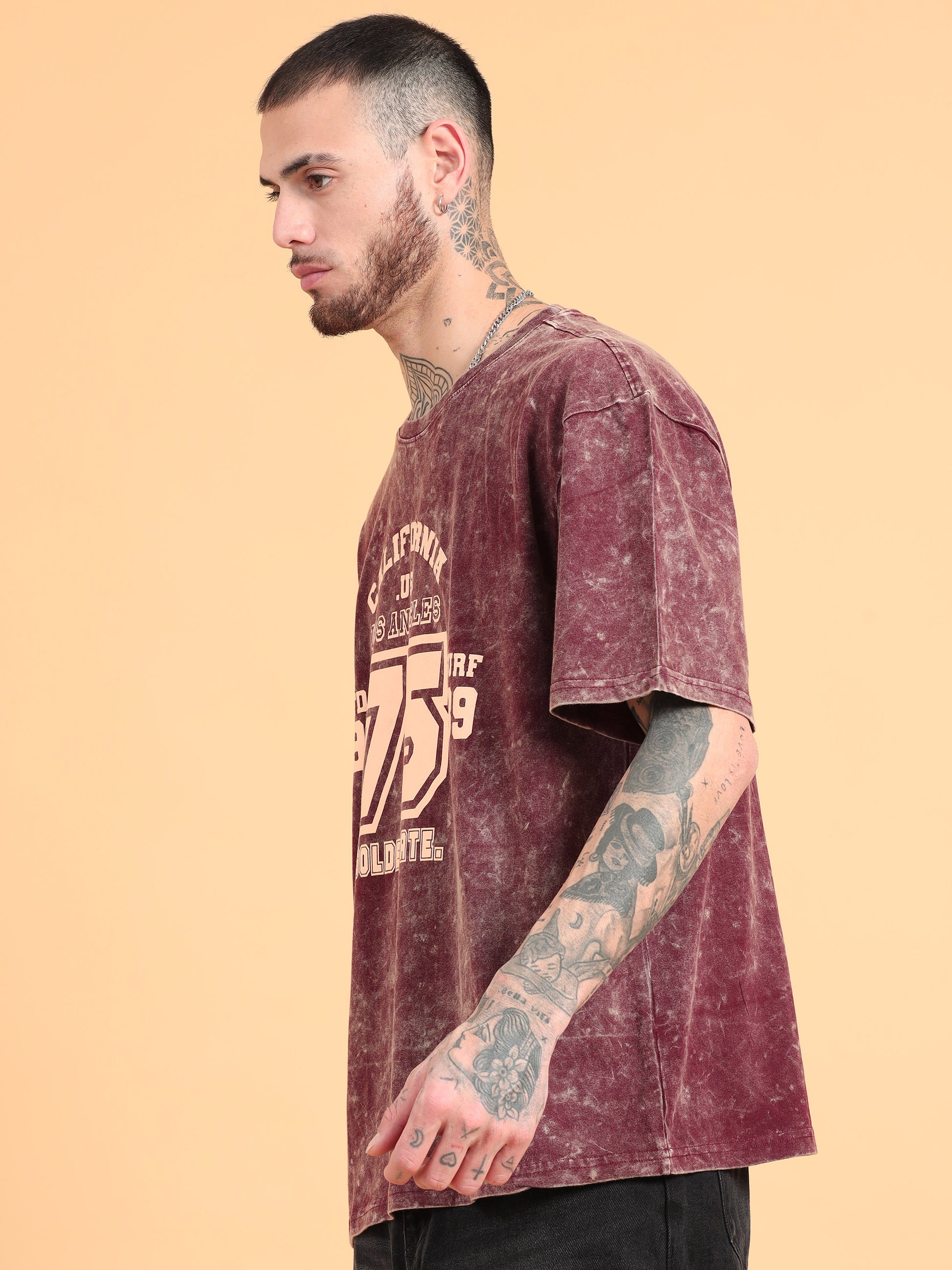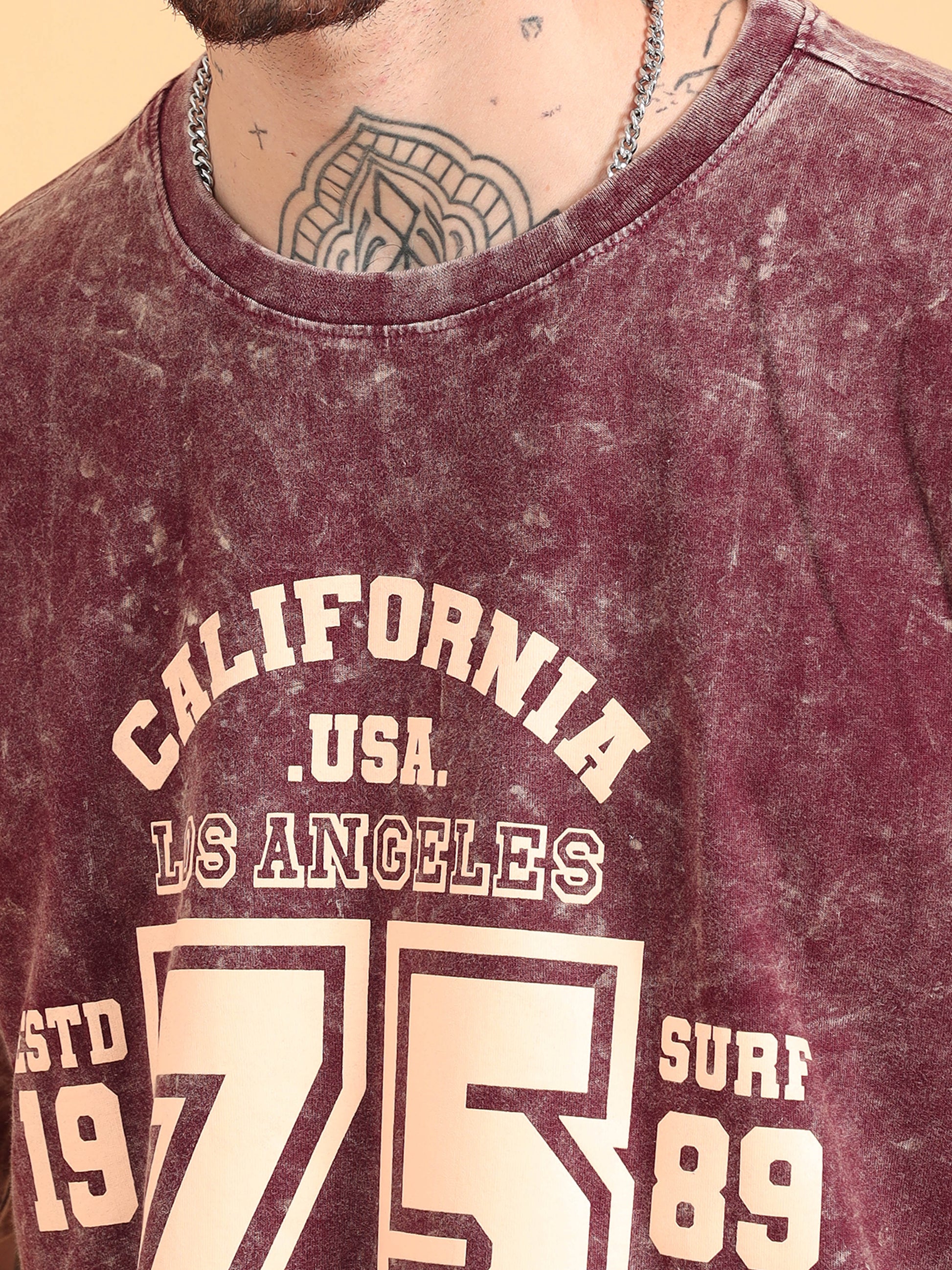 California 75: Burgundy Typography Print Acid Wash Oversized Tshirt