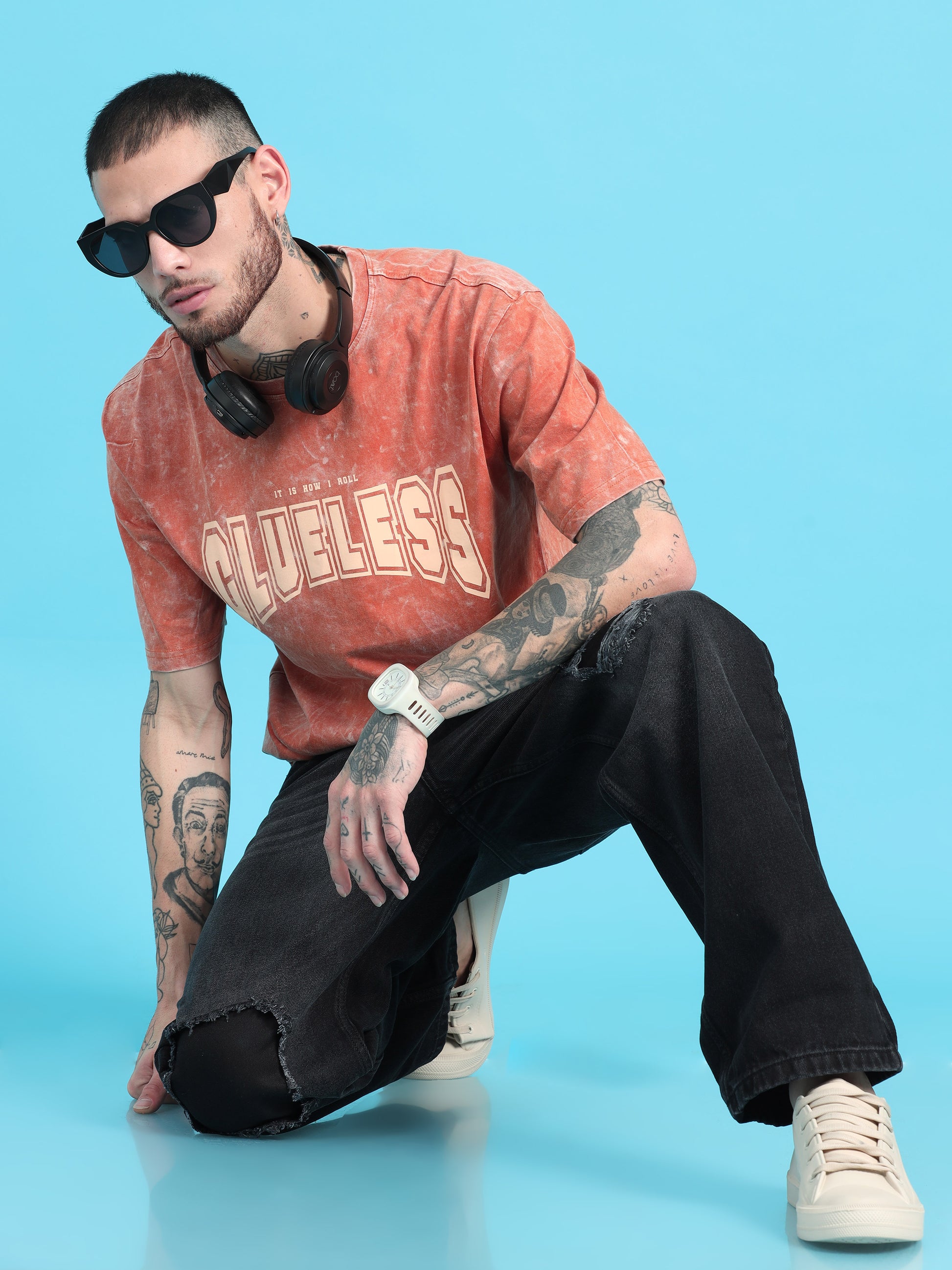 Clueless: Sage Typography Print Acid Wash Oversized Tshirt