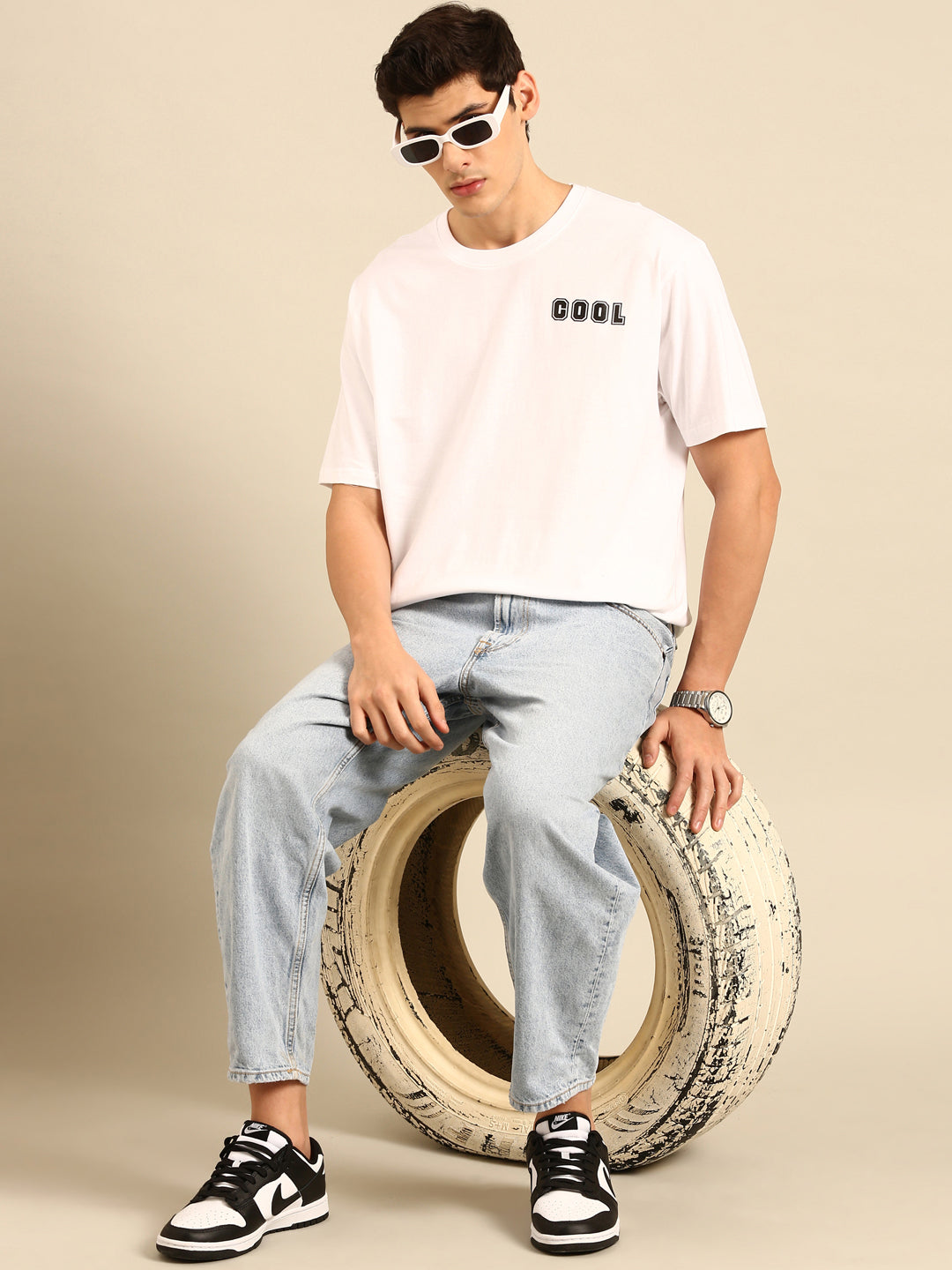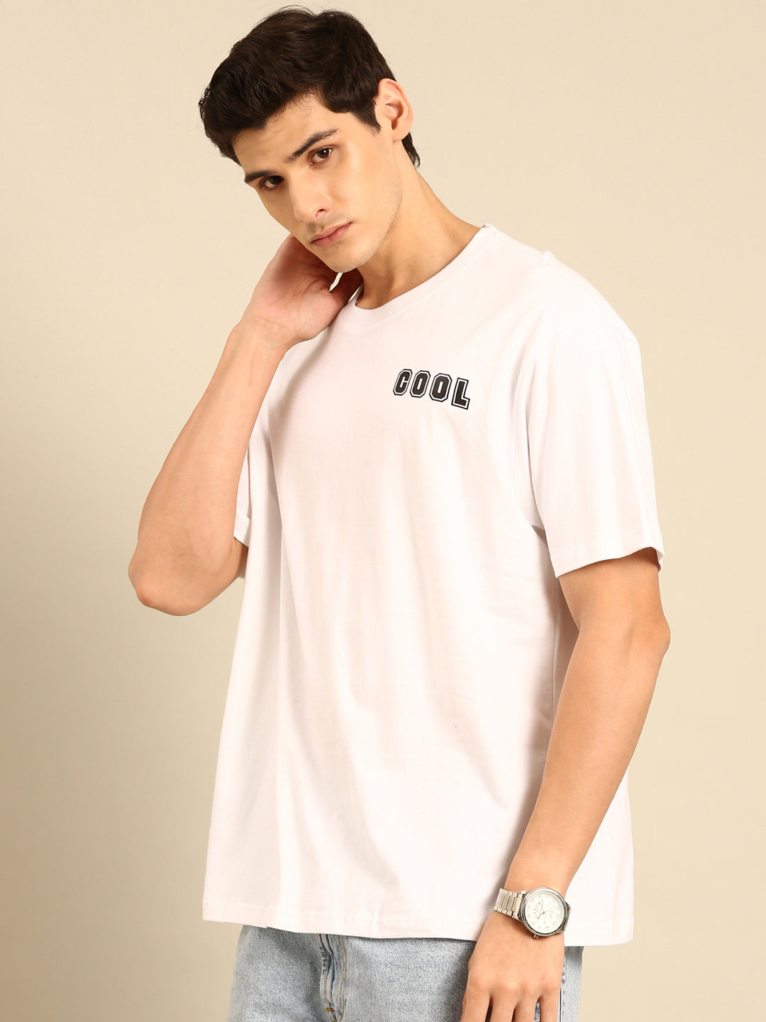 Upgrade your tshirt game with our Cool oversized fit tee in a classic white shade and stylish Varsity print. Add some fun to your wardrobe with this quirky and comfortable option.