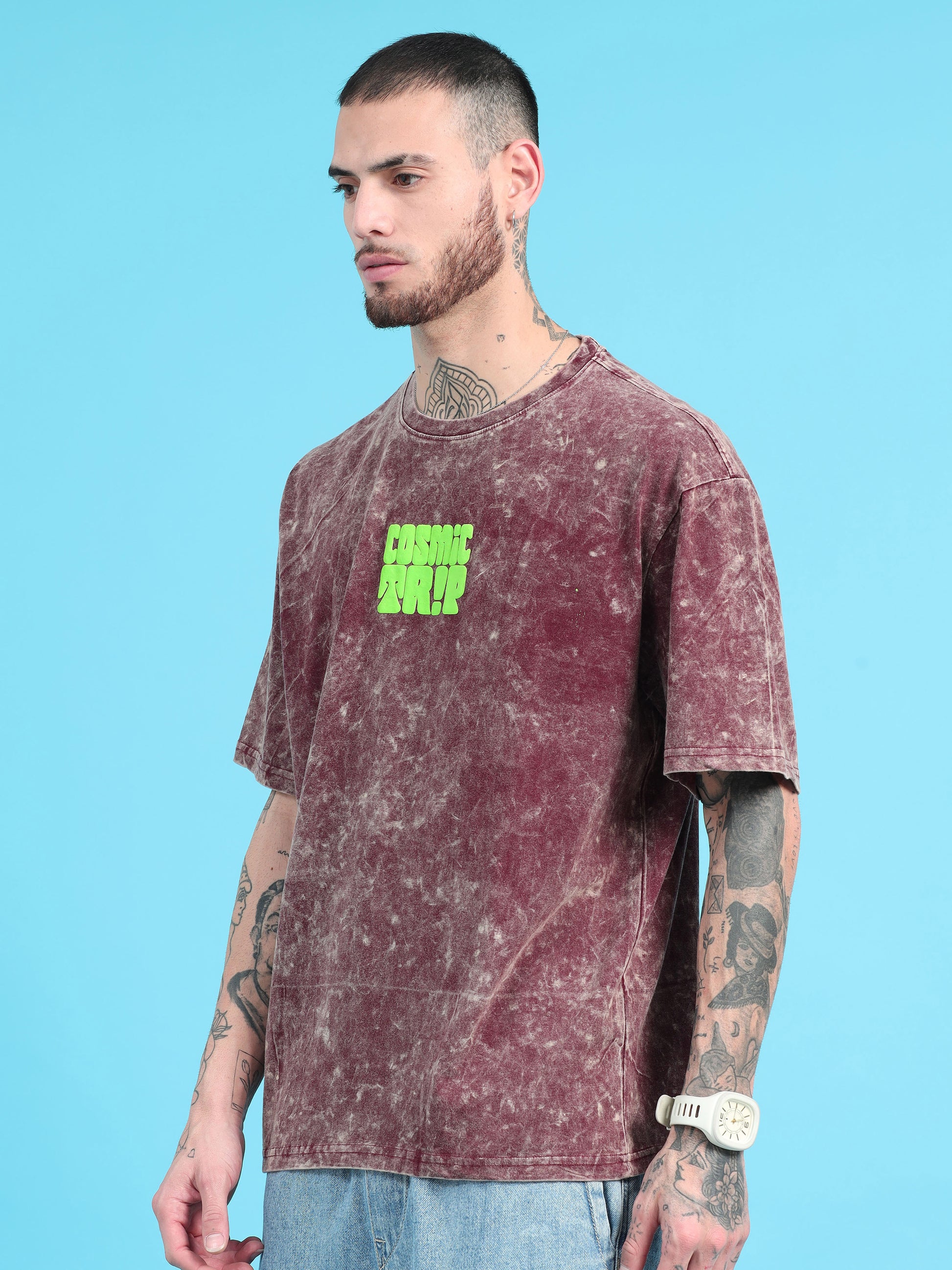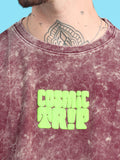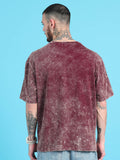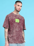 Cosmic Trip: Burgundy Typography Print Acid Wash Oversized Tshirt