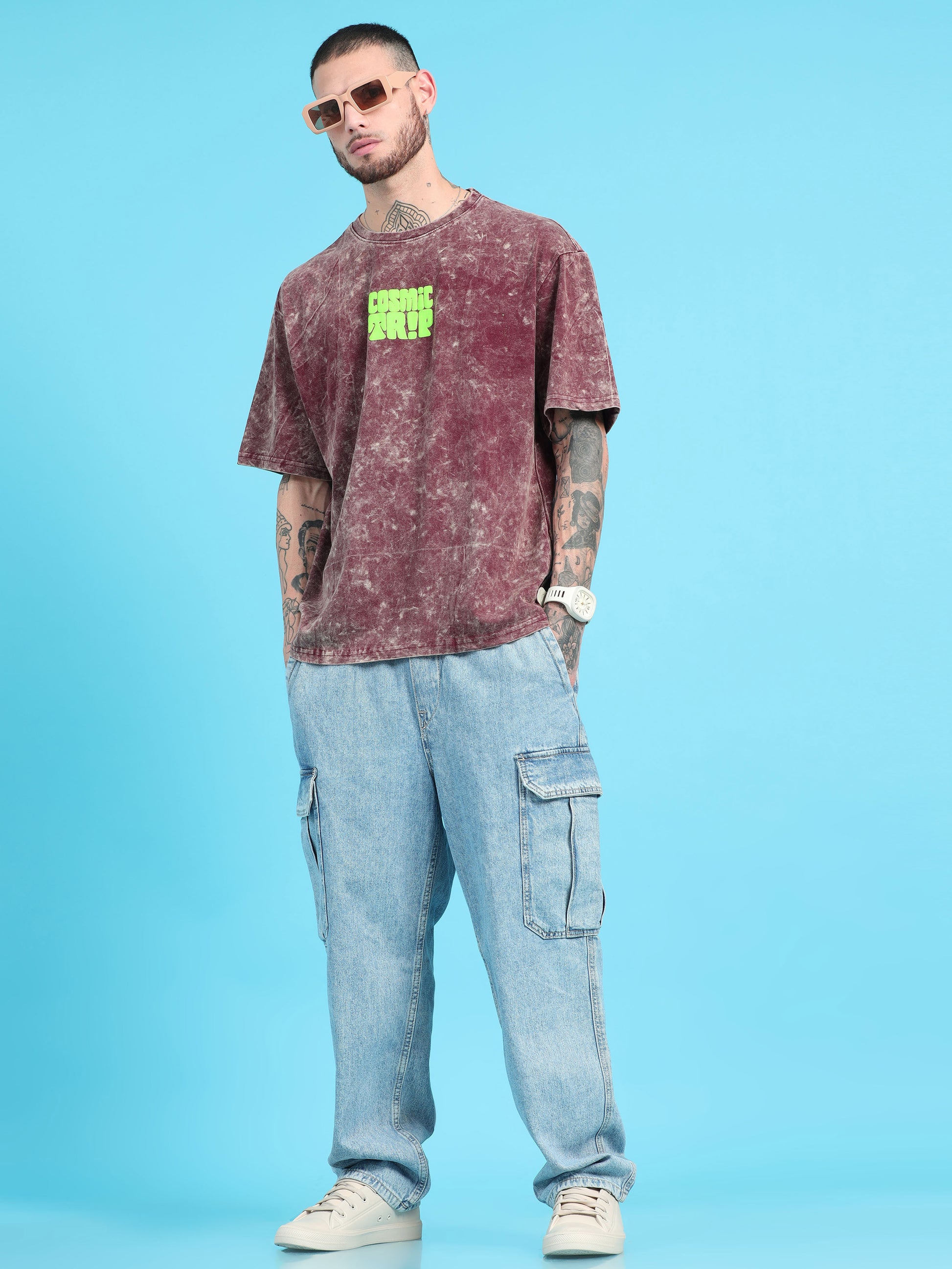Get ready to blast off to style heaven with our Cosmic Trip tshirt! Featuring a bold burgundy typography print that's out of this world and an on-trend acid wash finish, this oversized tee is perfect for any fashion-forward space explorer. Don't be afraid to make a statement with this quirky and fun tshirt. (Blast off not included!)