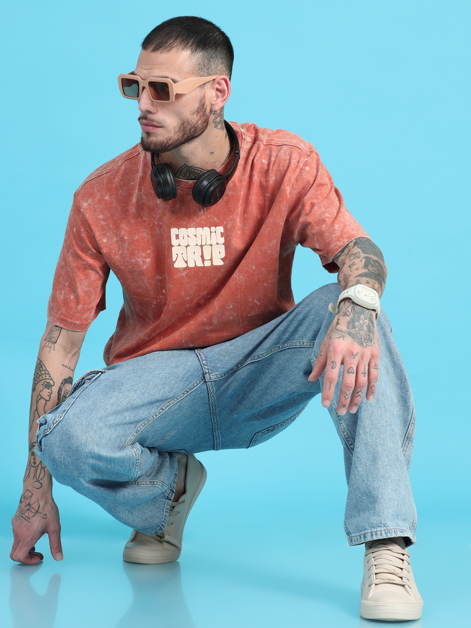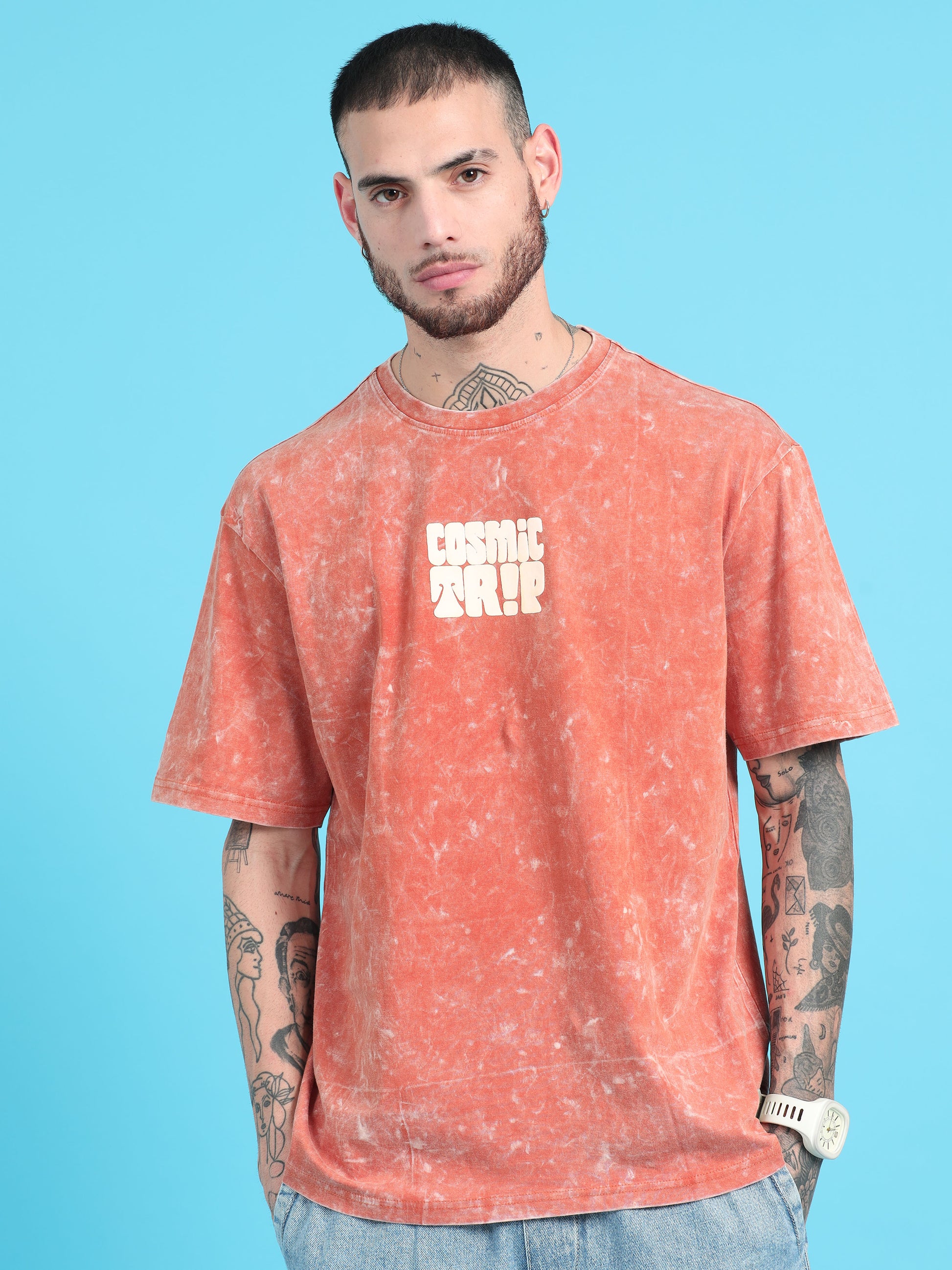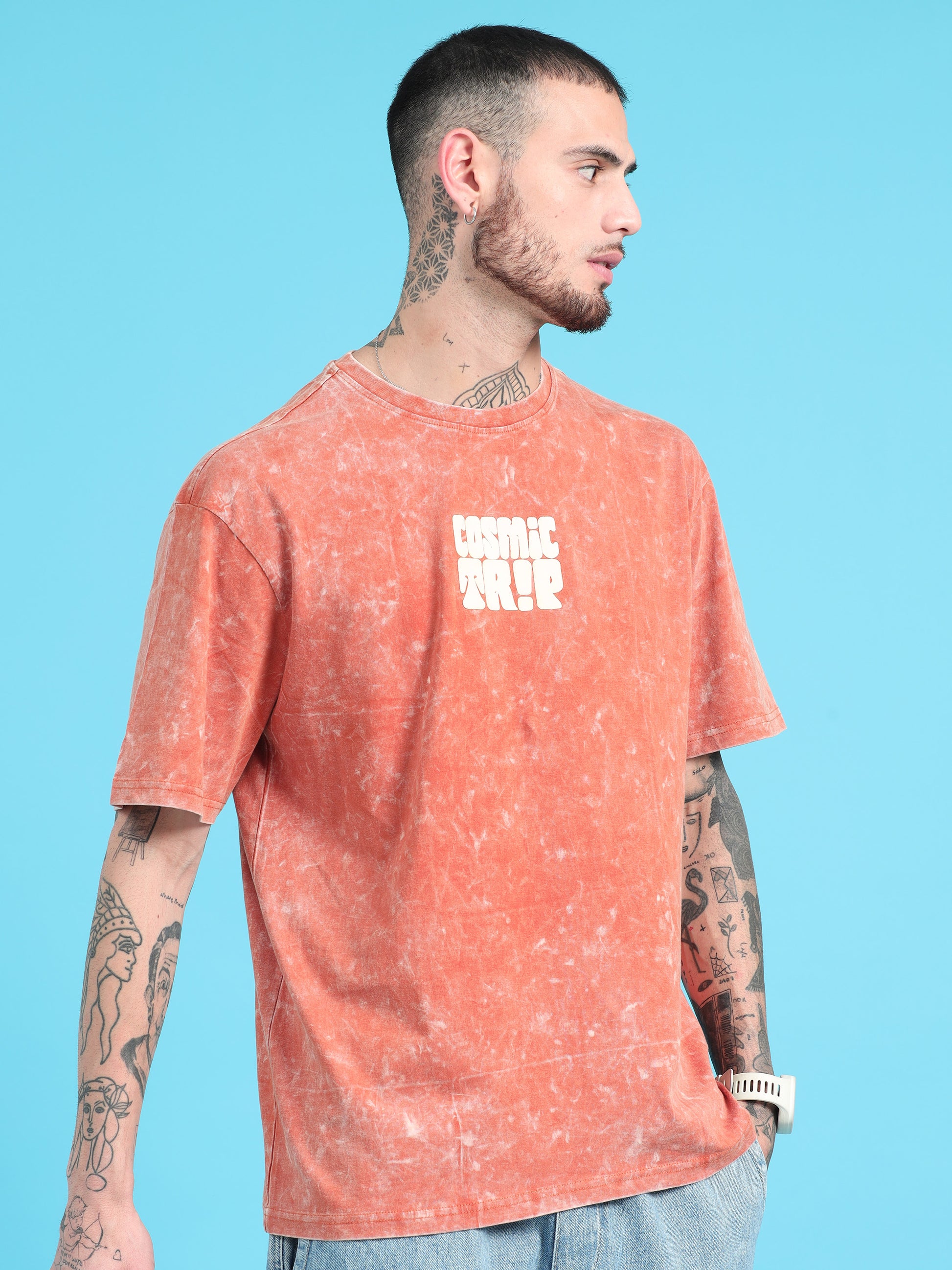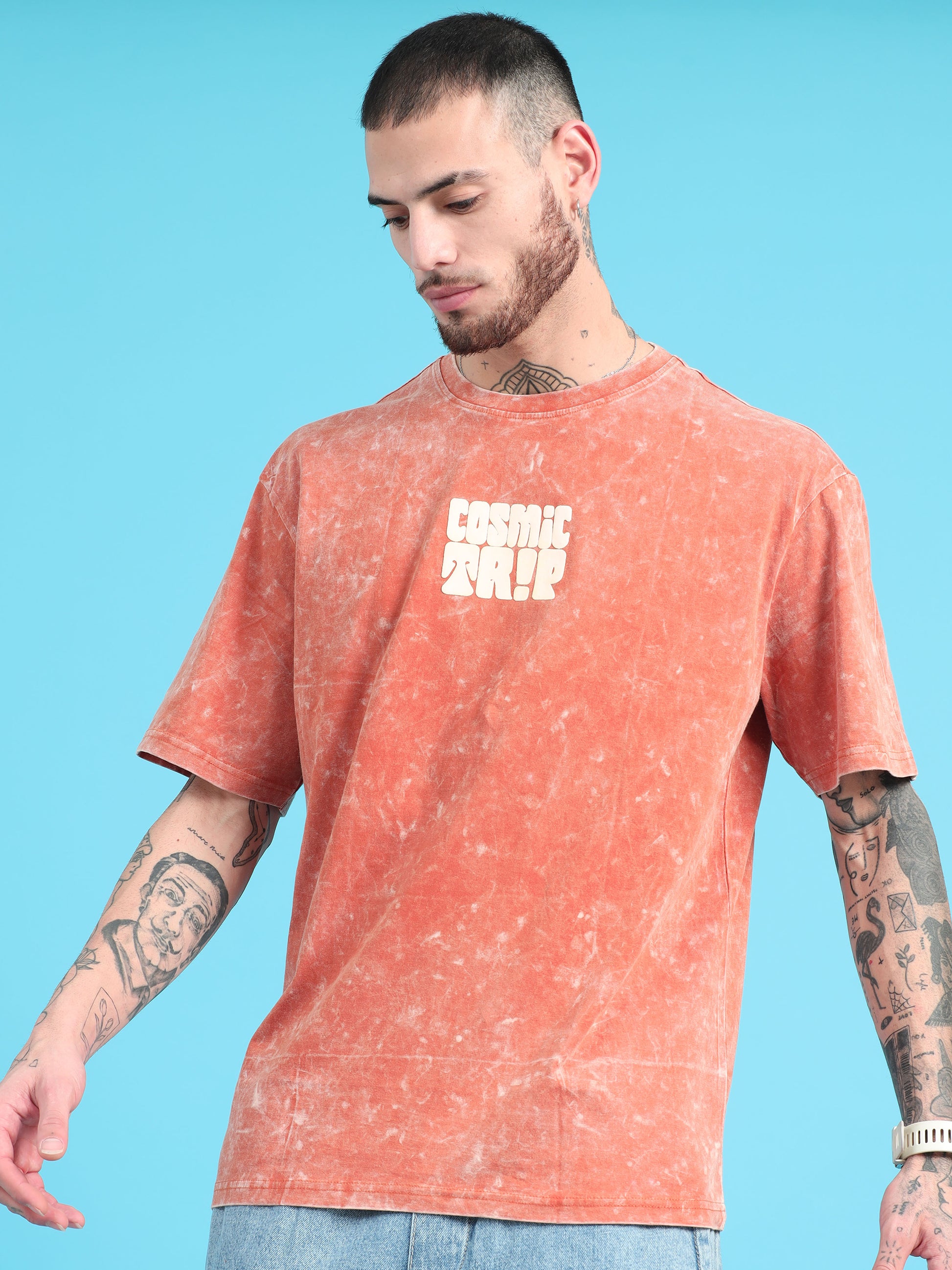 Take your style to the next dimension with our Cosmic Trip Rust Typography Print Acid Wash Oversized Tshirt. With a unique rust typography design and acid wash finish, this tee is sure to make a statement. Embrace your individuality in this oversized shirt that's perfect for any cosmic adventure. (Warning: may cause intergalactic envy.)