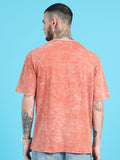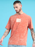 Cosmic Trip: Rust Typography Print Acid Wash Oversized Tshirt