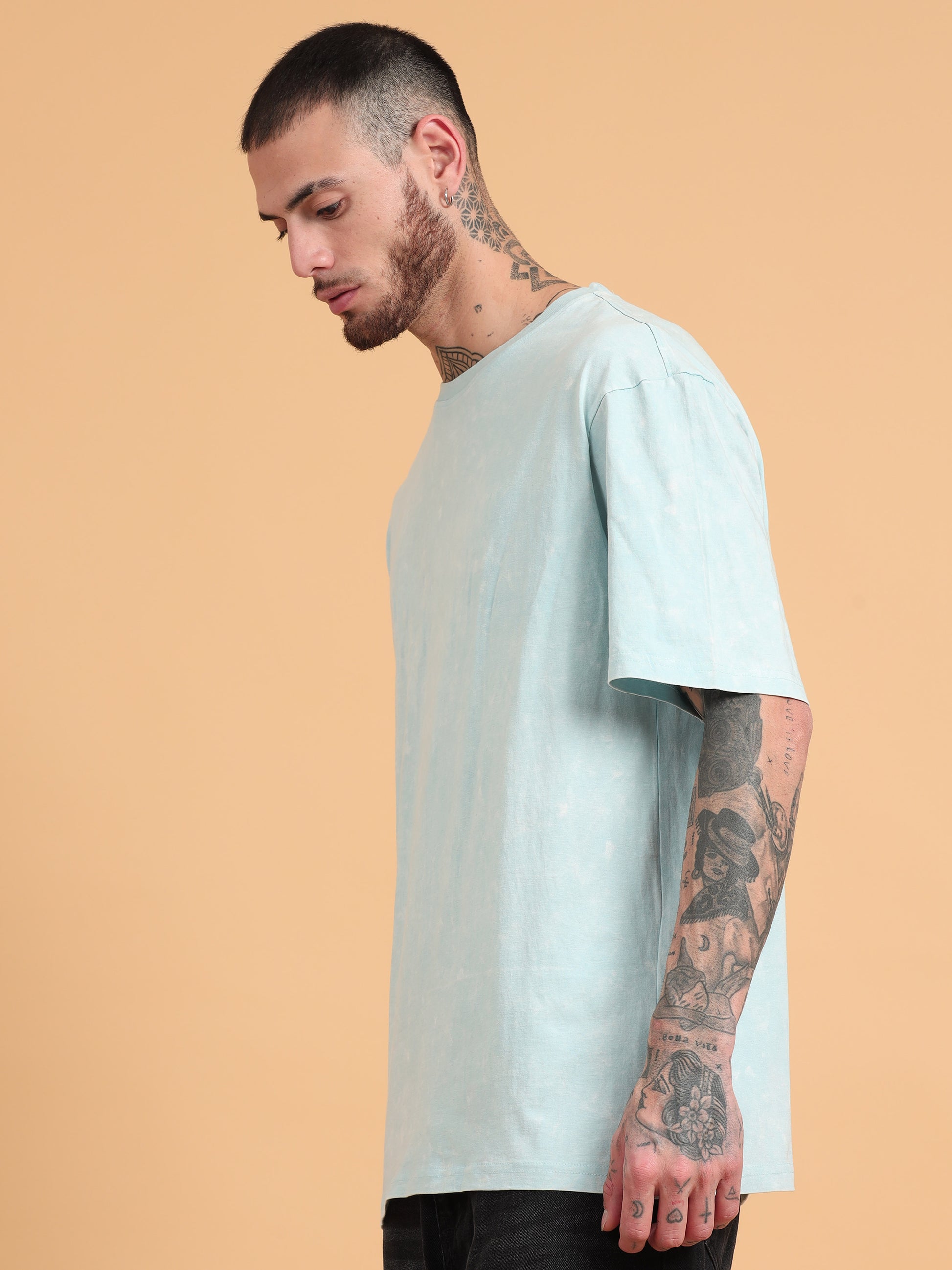 Distress: Aqua Solid Acid Wash Oversized Tshirt
