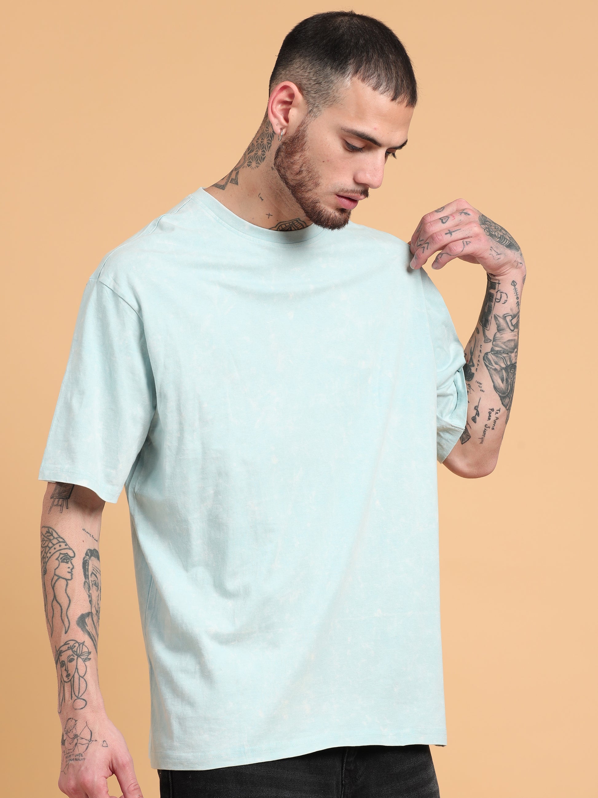 Be bold and make a splash with our Distress: Aqua Solid Acid Wash Oversized Tshirt! This unique tee features a trendy acid wash design and an oversized fit for ultimate comfort. Let your fun and playful side shine through with this quirky and stylish top. (Plus, it's perfect for any casual occasion!)