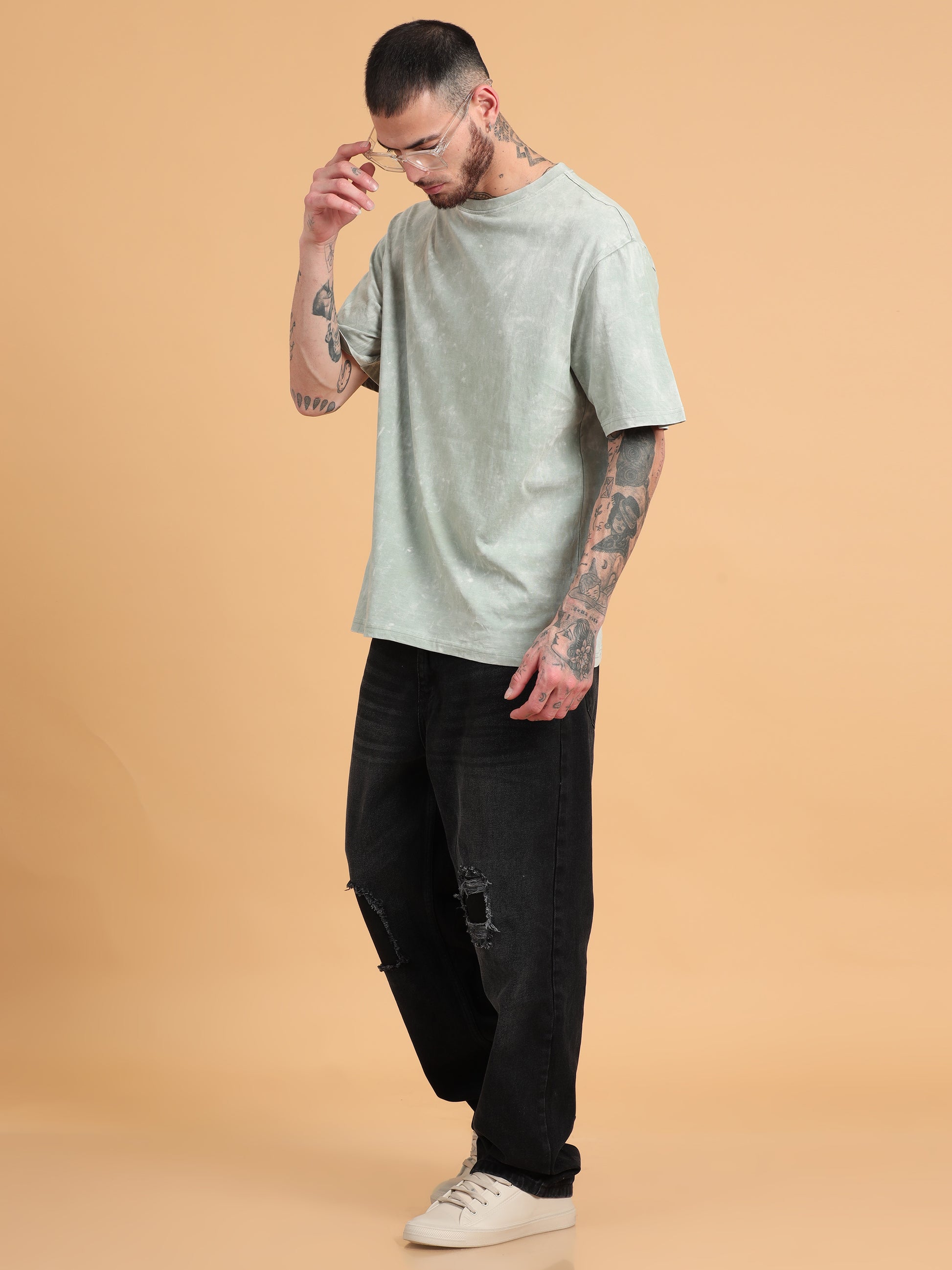 Distress: Sage Solid Acid Wash Oversized Tshirt