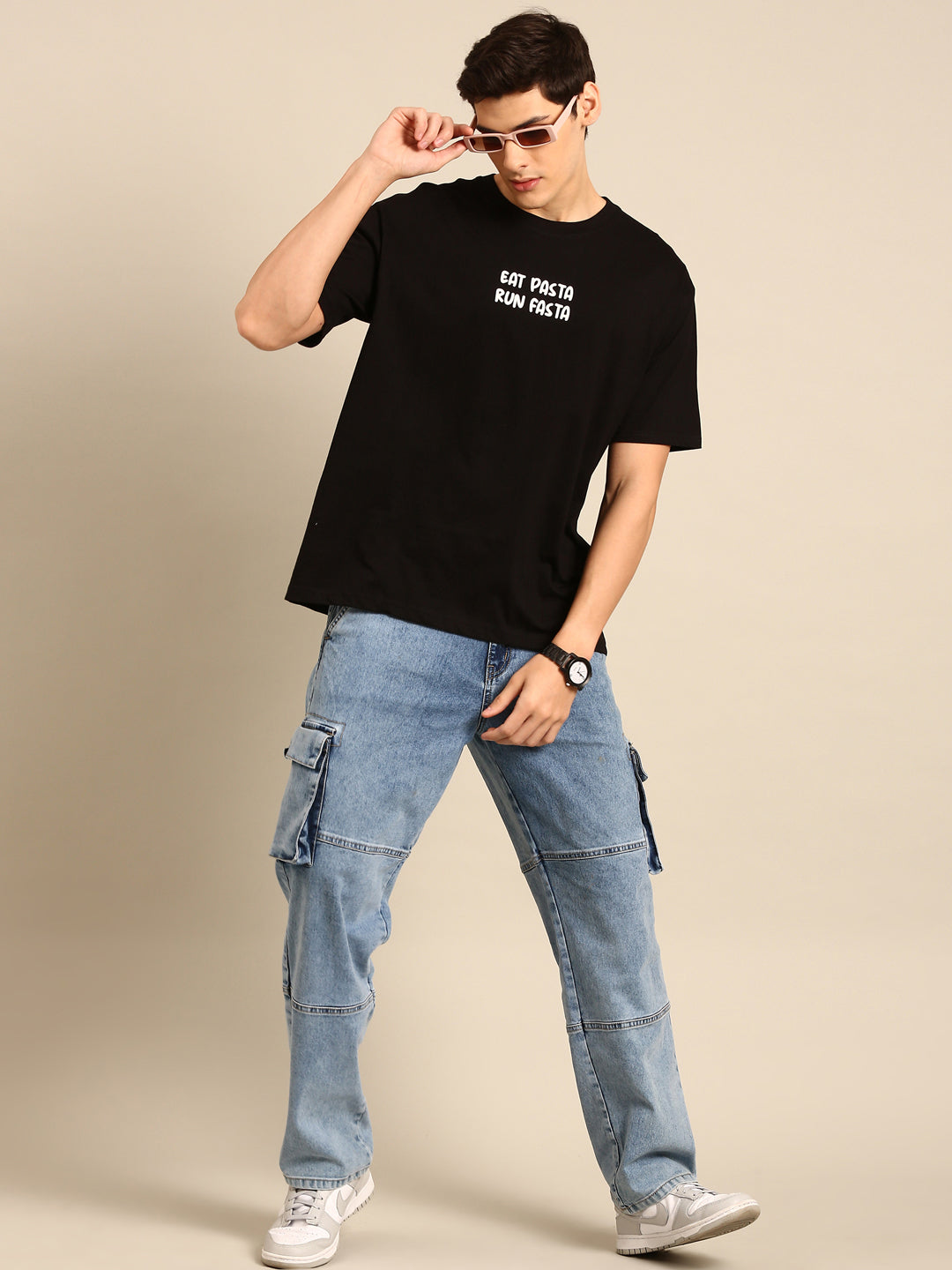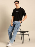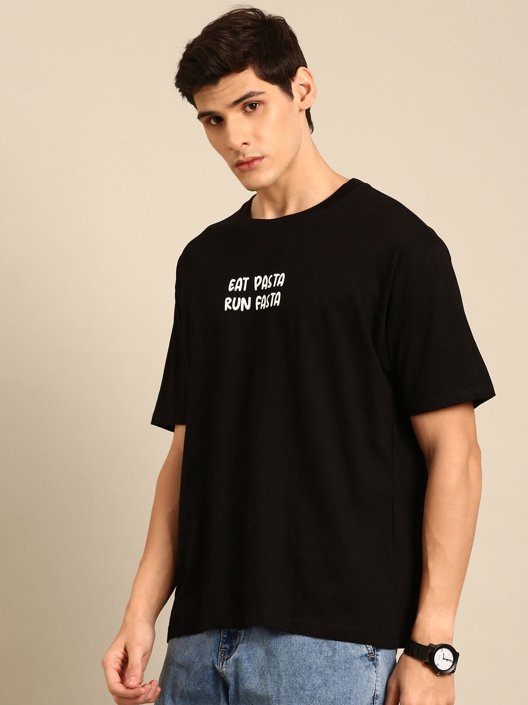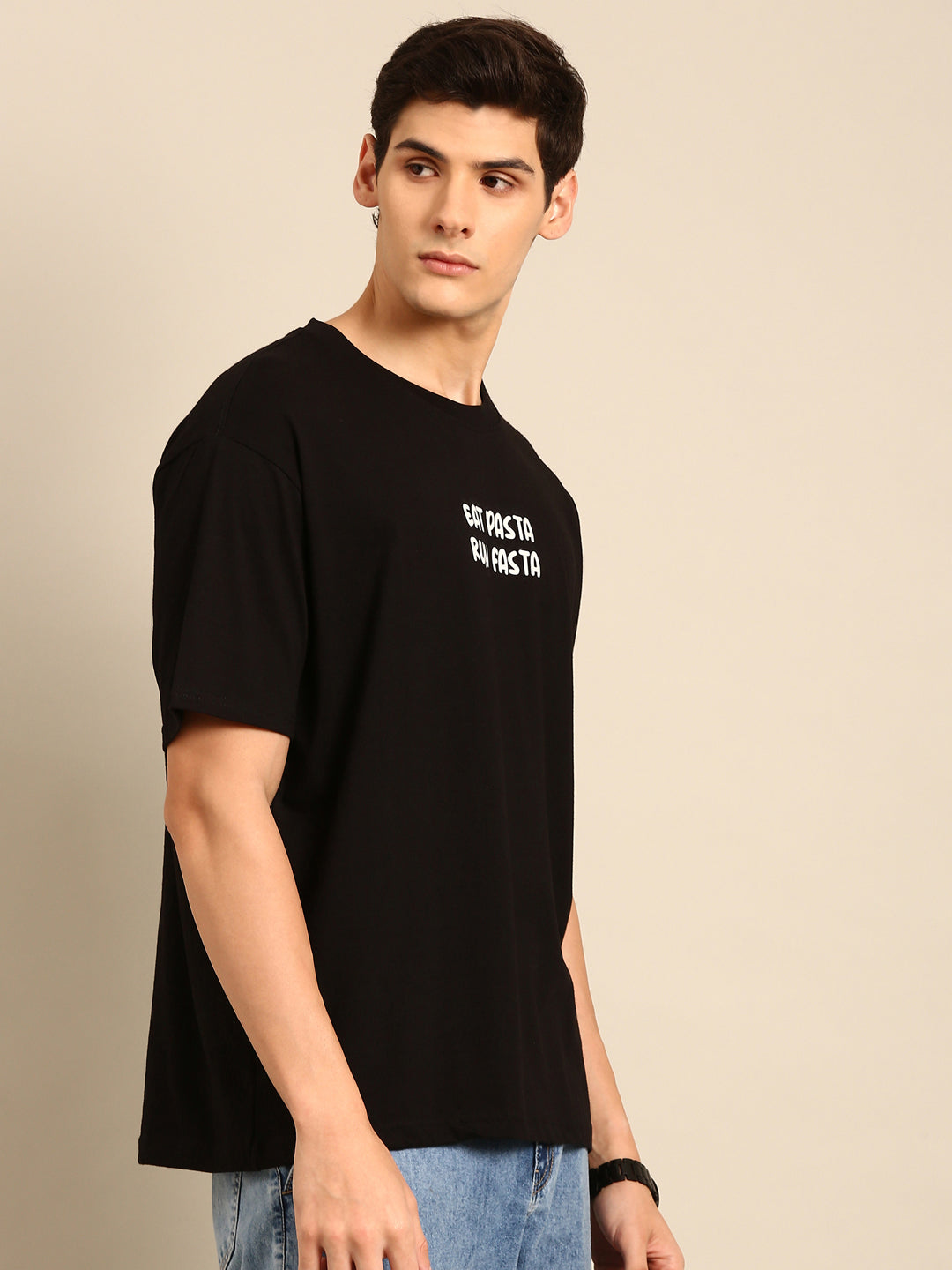 Eat Pasta: Black typography print oversized fit tshirt