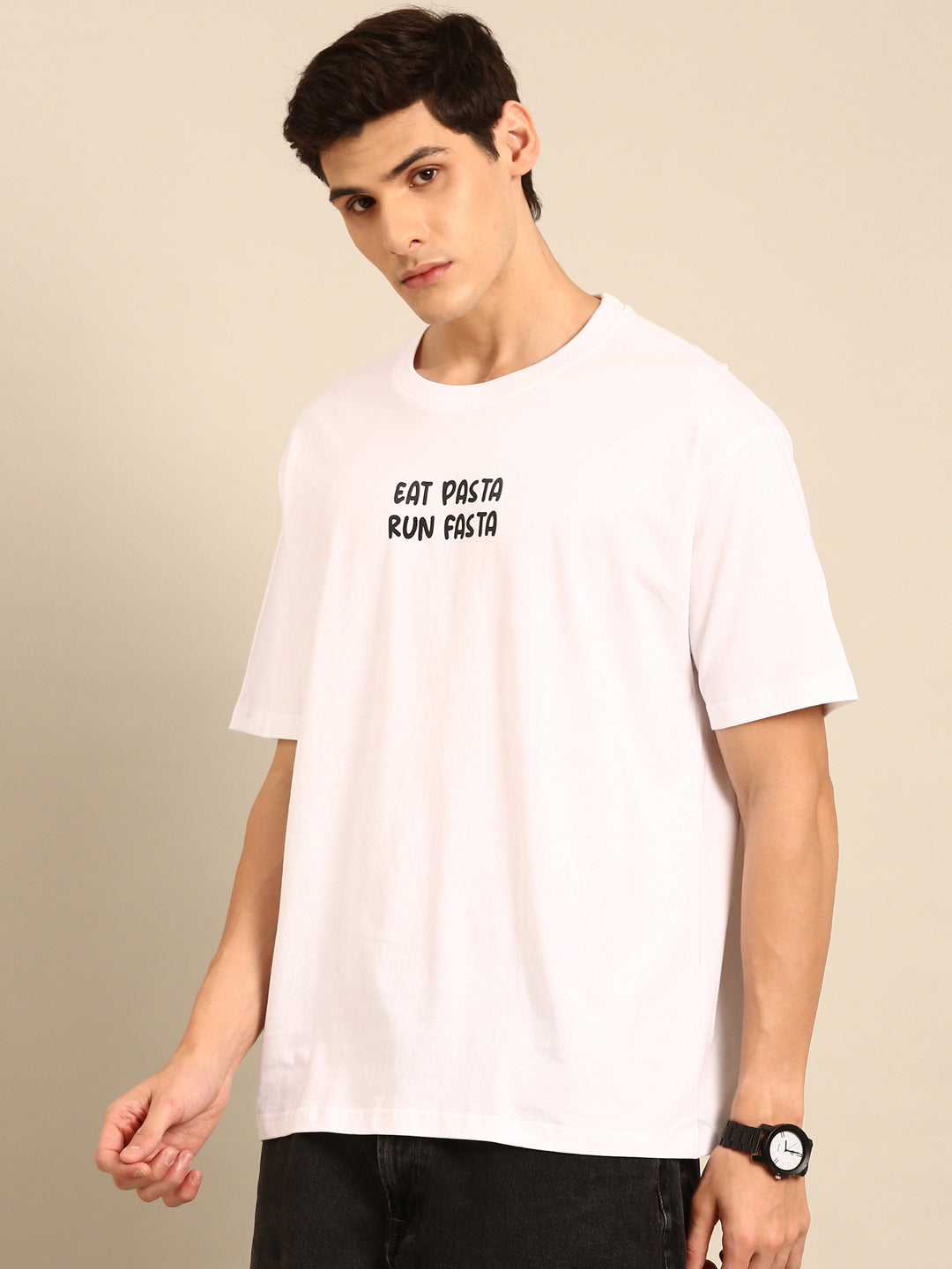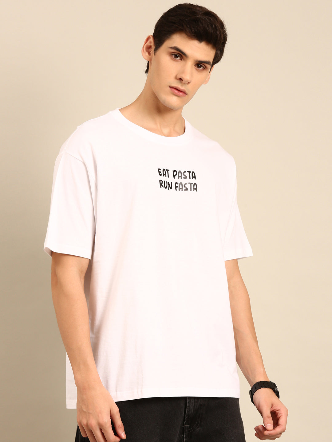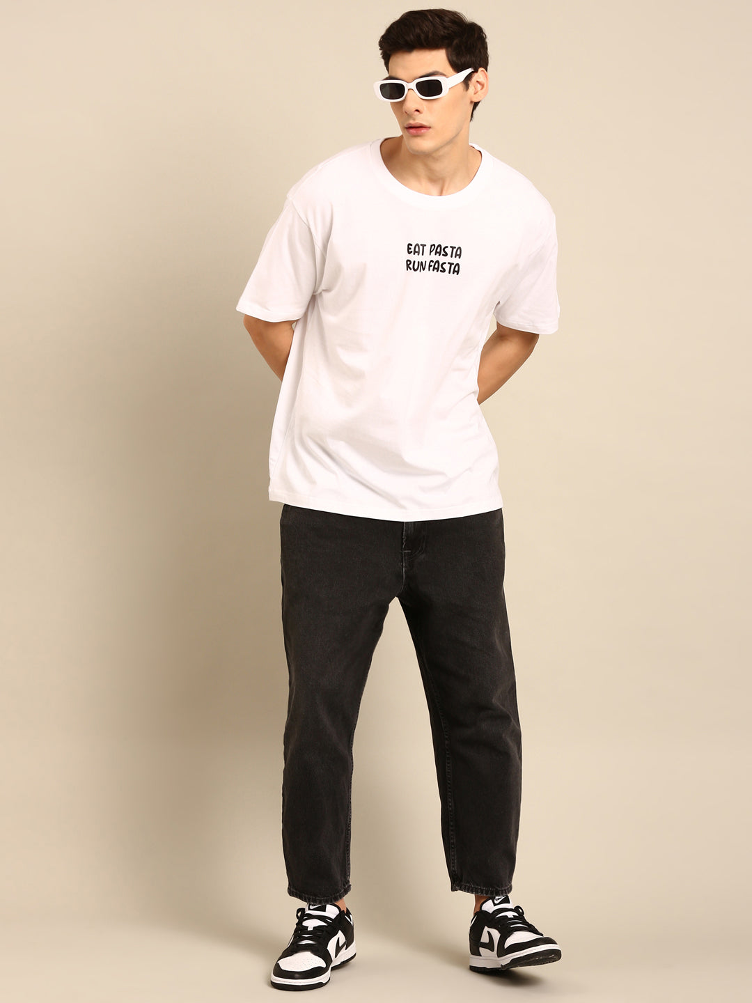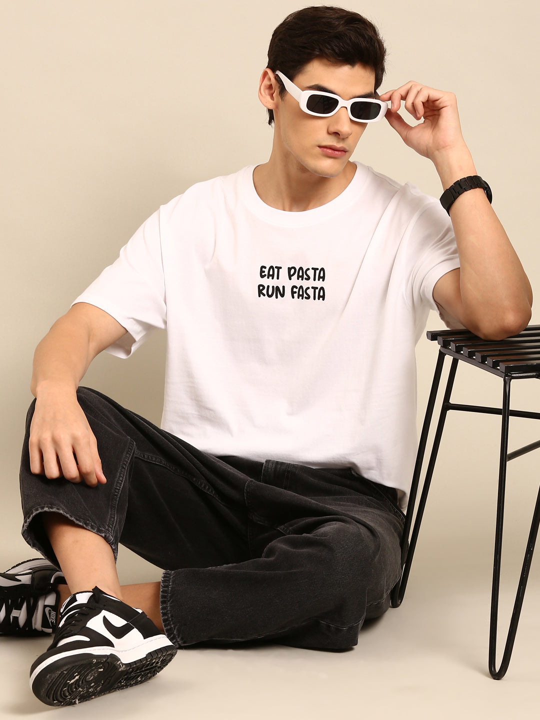 Indulge your love for pasta with our Eat Pasta t-shirt! Featuring a white typography print and an oversized fit, it's the perfect addition to any foodie's wardrobe. Whether you're a carb lover or just have a craving for a delicious bowl of pasta, this tee is sure to satisfy your appetite. (Carb coma not included!)