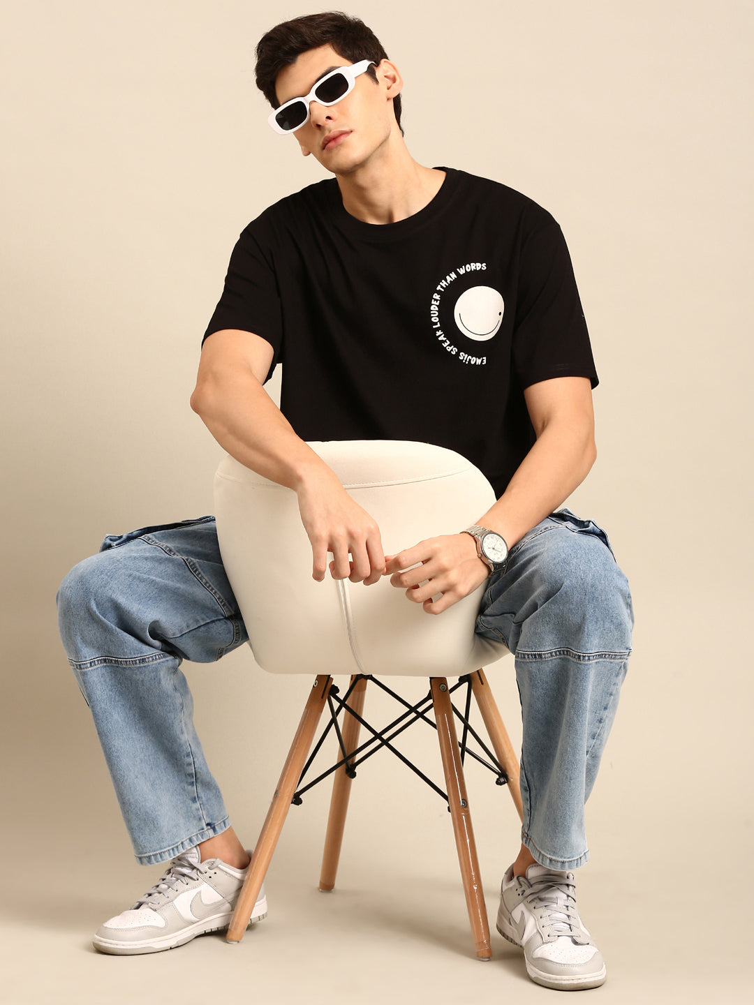 Get ready to make a statement in our Emoji oversized tshirt. Featuring bold black typography, this tshirt is perfect for those who want to stand out and express themselves. With an oversized fit, this tshirt is both stylish and comfortable.