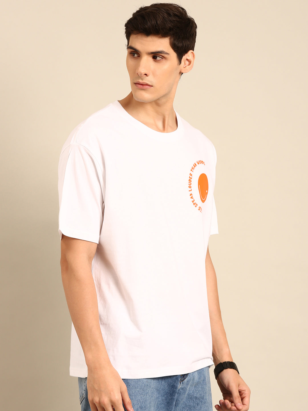 Add some whimsy to your wardrobe with this oversized tshirt featuring a playful white typography print. Perfect for anyone looking to make a statement while keeping things light and comfy. (Wink emoji)