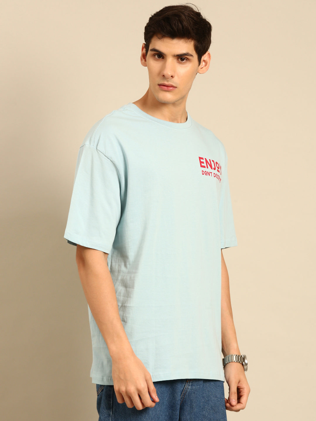 Take a dip in style with the Enjoy oversized fit tshirt! Featuring a cool aqua typography print, this tshirt is perfect for effortless and comfortable fashion. Ideal for lounging or making a statement, you'll love the quirky and playful vibe of this oversized fit tshirt!