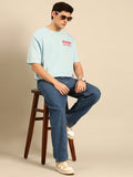 Enjoy: Aqua typography print oversized fit tshirt