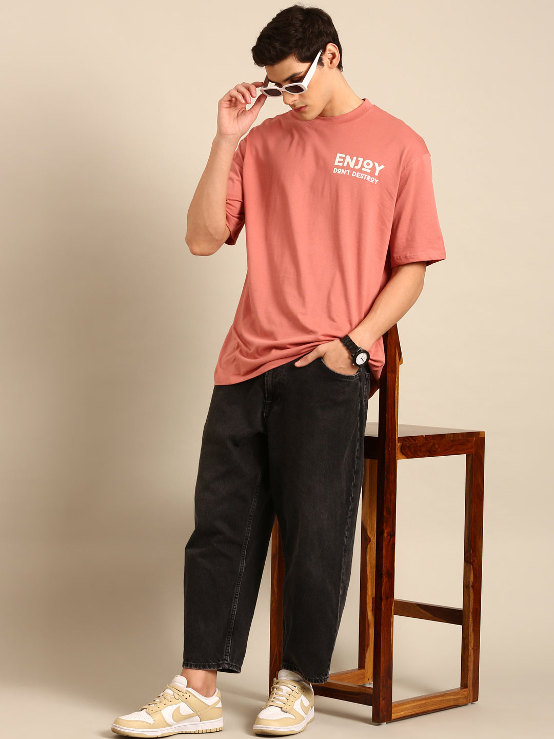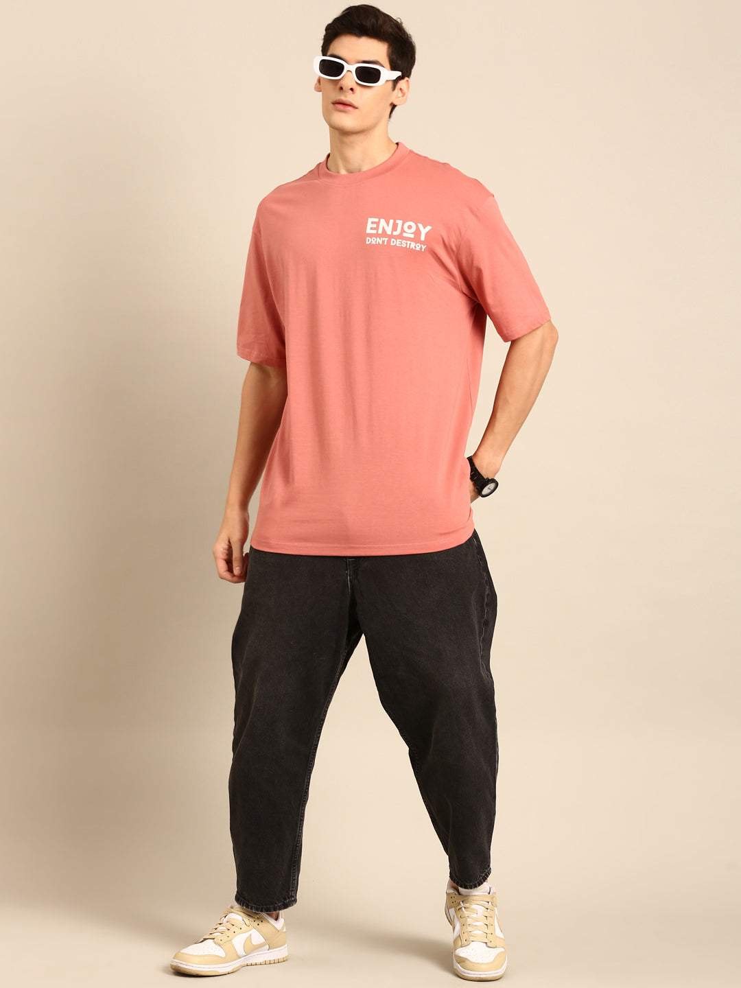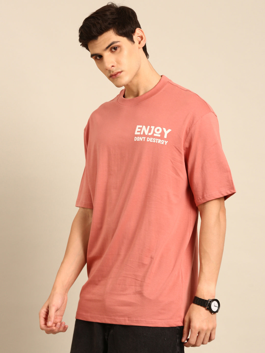 Enjoy: Pink typography print oversized fit tshirt