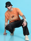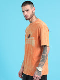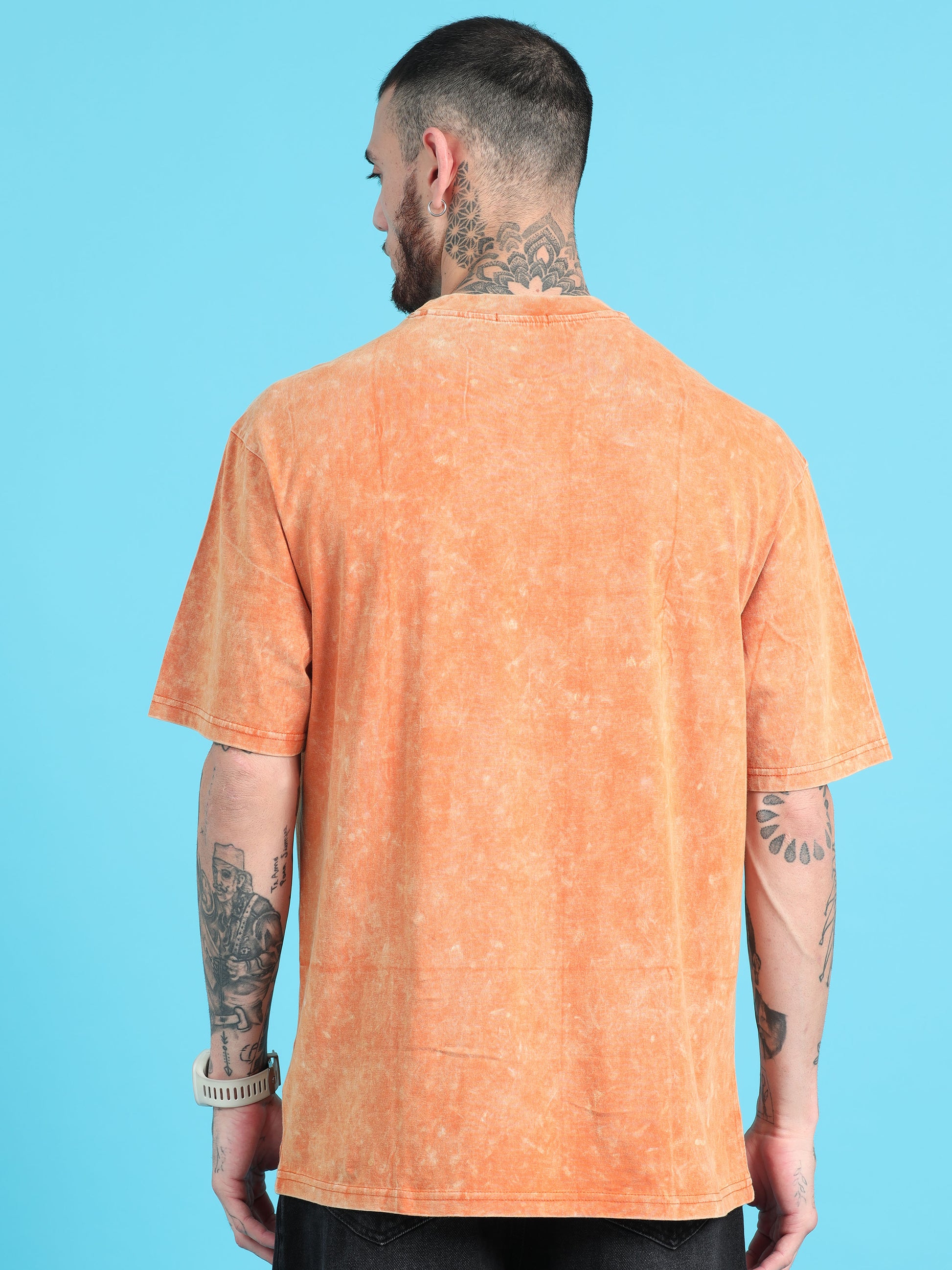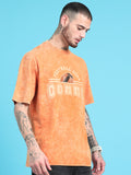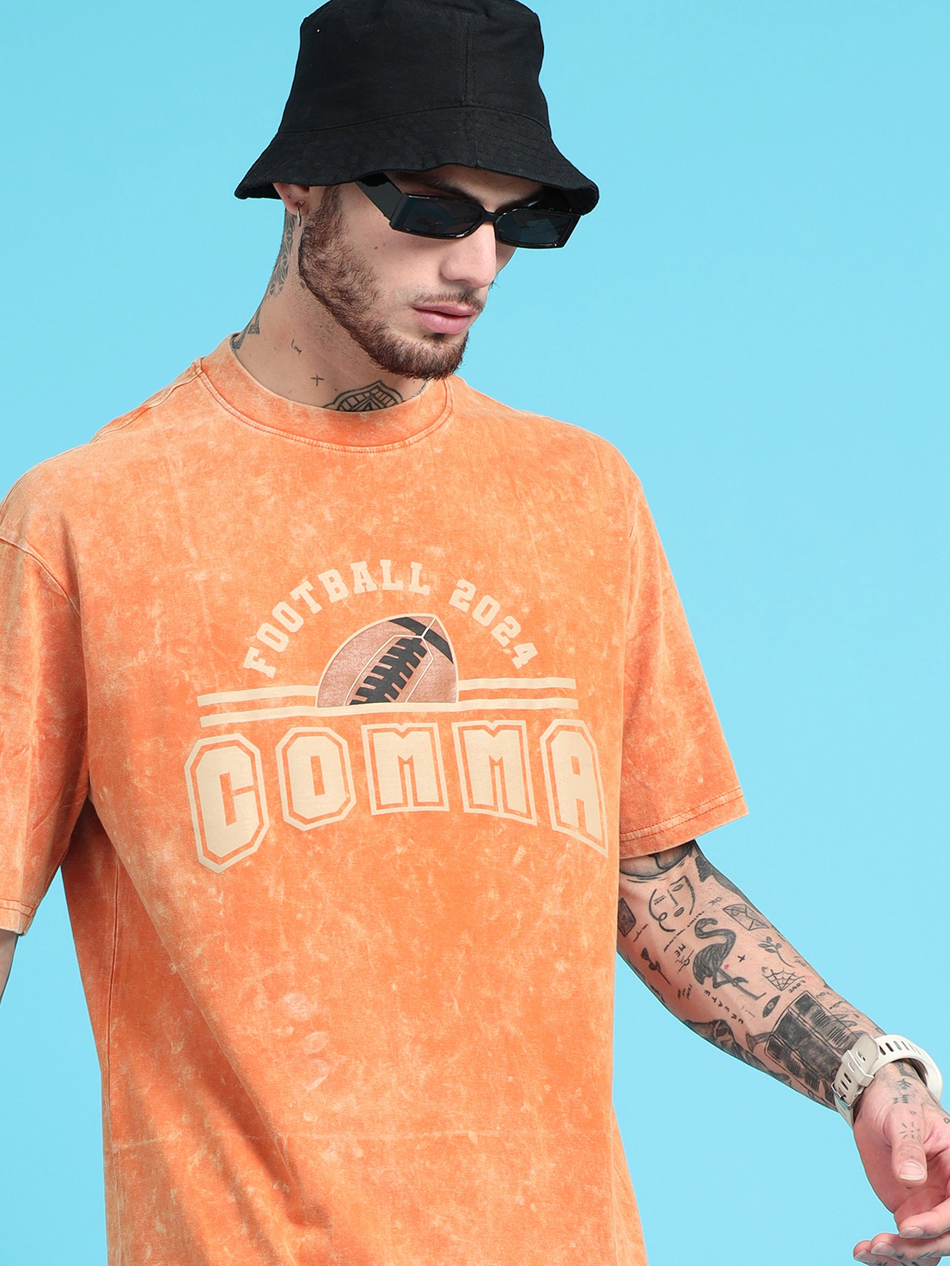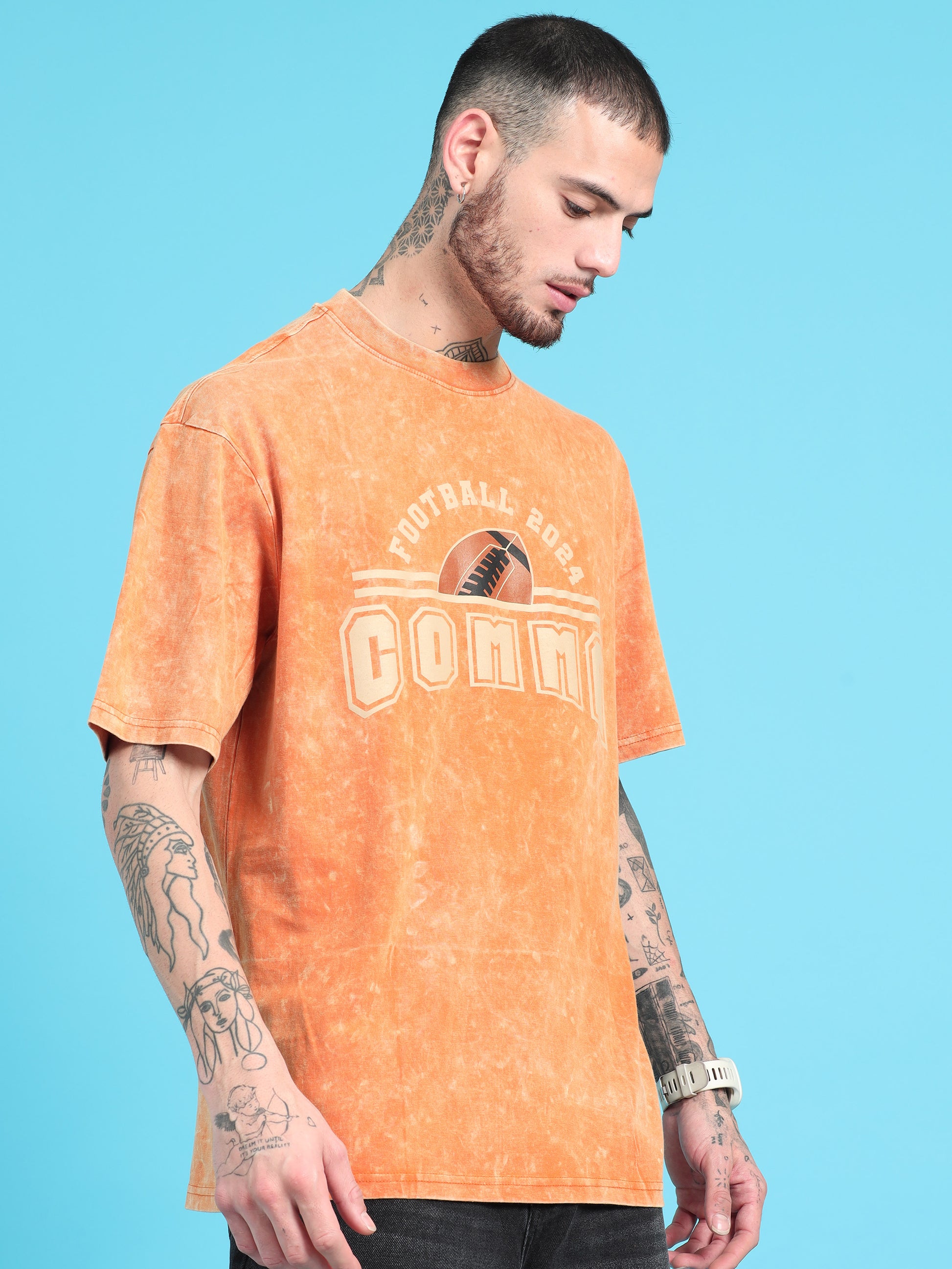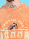 Football 2024: Orange Typography Print Acid Wash Oversized Tshirt