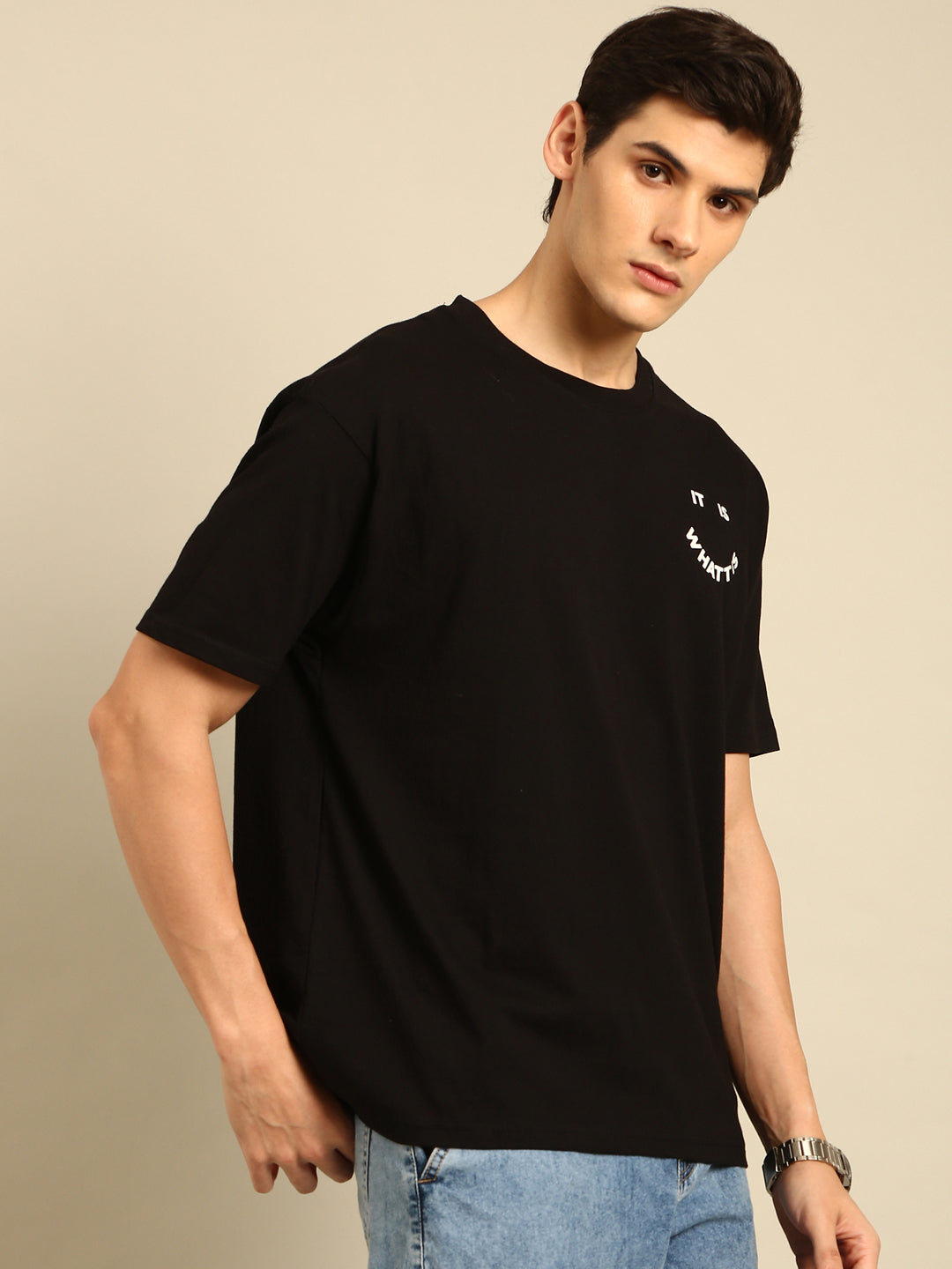 Stay true to yourself with our "It is What it is" black typography print oversized fit tshirt. Embrace comfort and style with this quirky and playful addition to your wardrobe. Let your outfit do the talking with this unique tshirt. (Note: Check the sizing chart for a perfect fit!)
