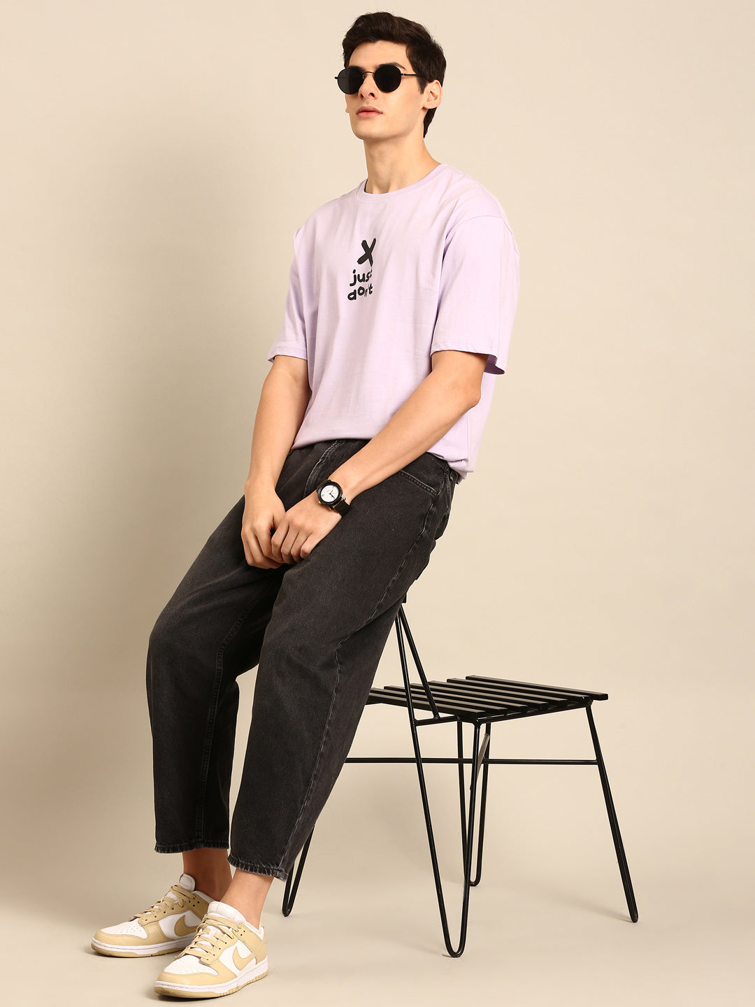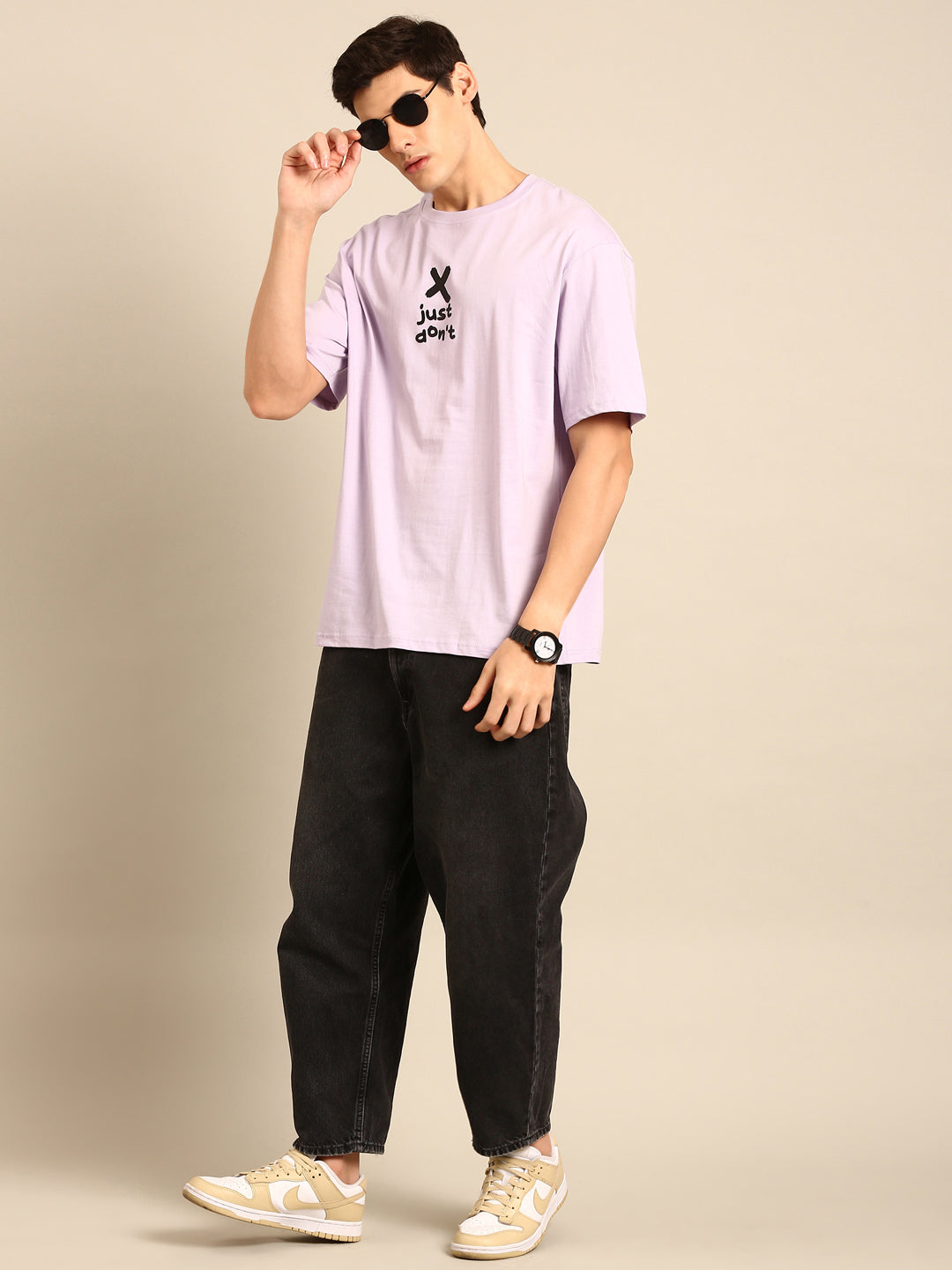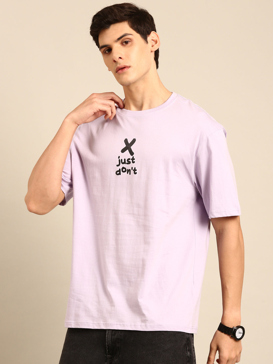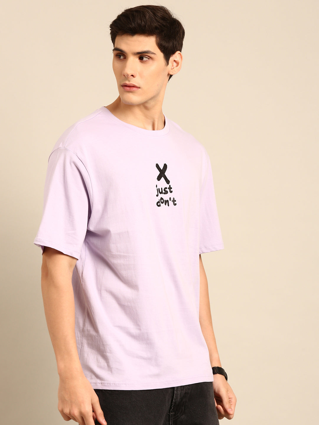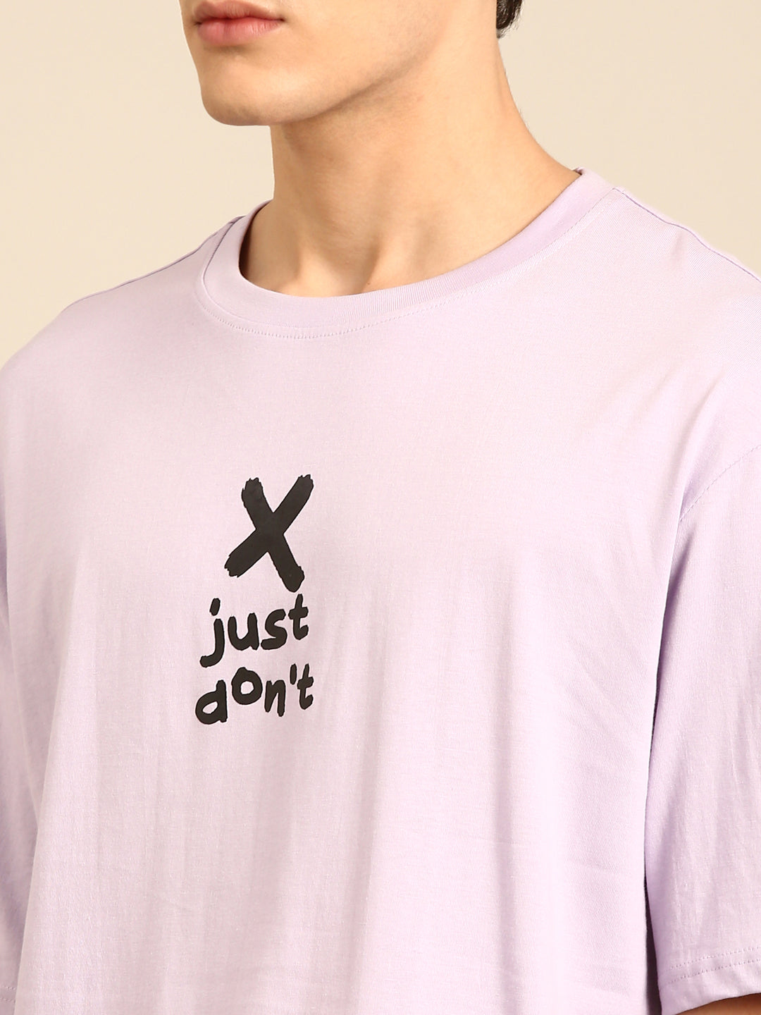 Be fashionably outspoken with our Just Don't tshirt in lilac! Its typography print and oversized fit bring a playful twist to your wardrobe. Make a statement and embrace your unique style with this quirky and fun tshirt.