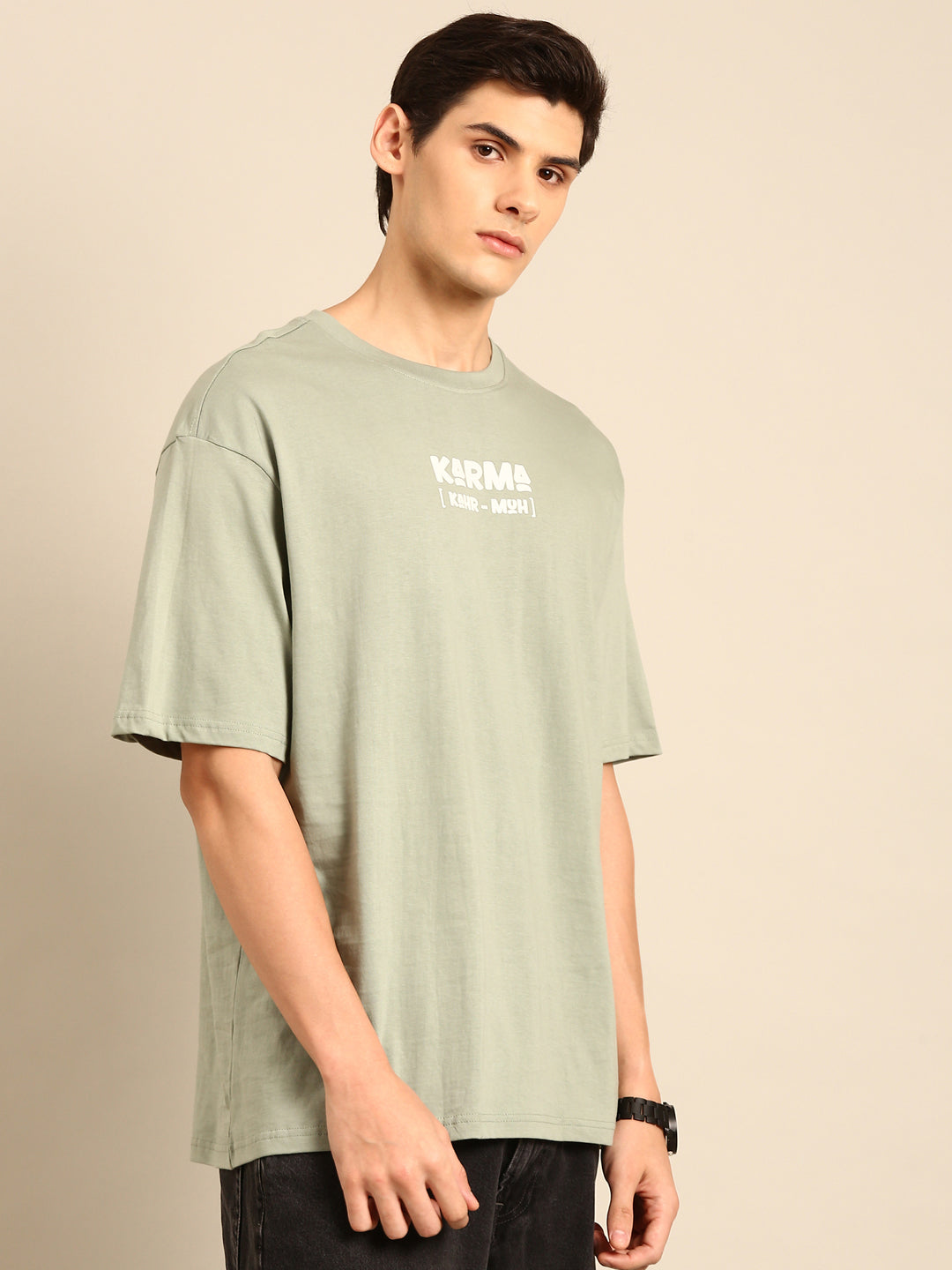 Karma: Sage typography print oversized fit tshirt