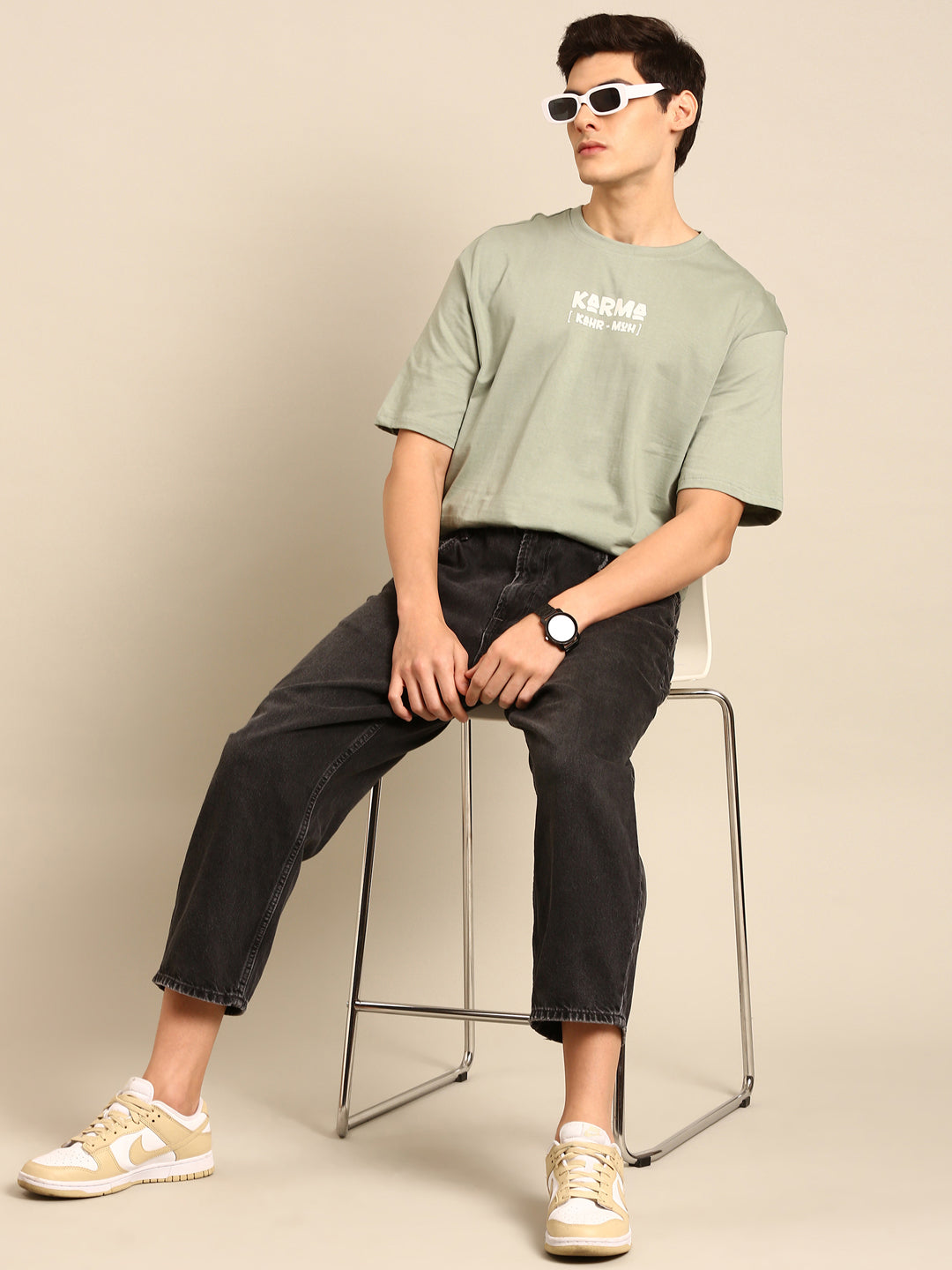 Embrace good karma while looking effortlessly cool in our Sage typography print oversized fit tshirt. The oversized fit and sage typography print add a touch of quirkiness to your wardrobe, making this tshirt a must-have for any laid-back, playful individual. (Karma not included!)