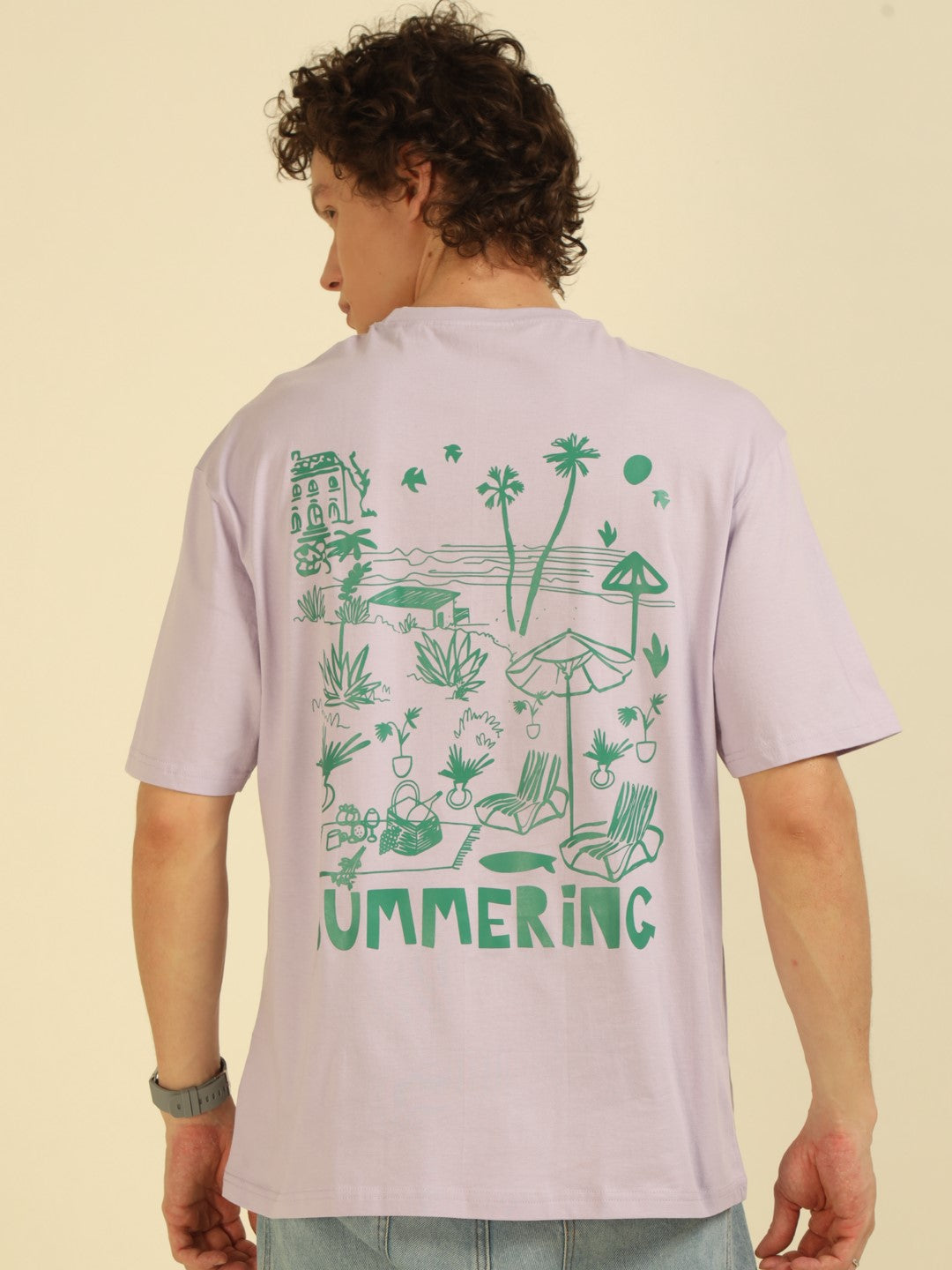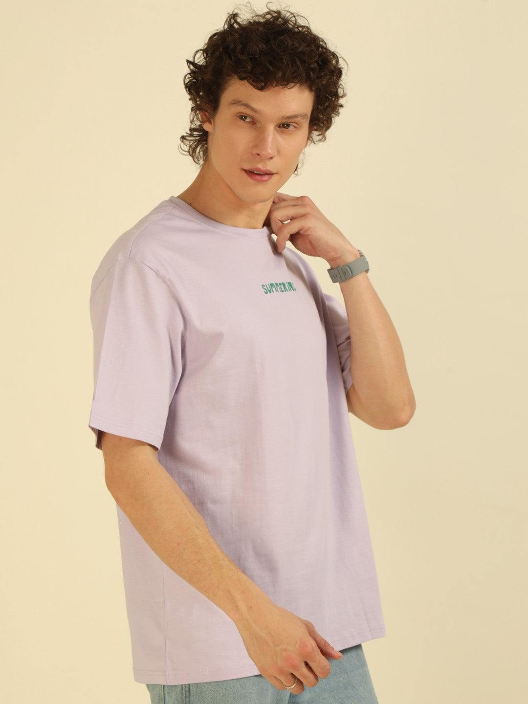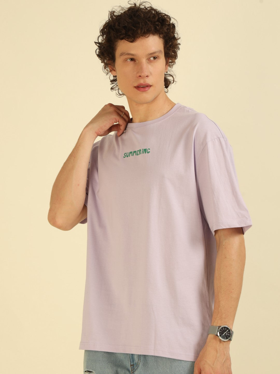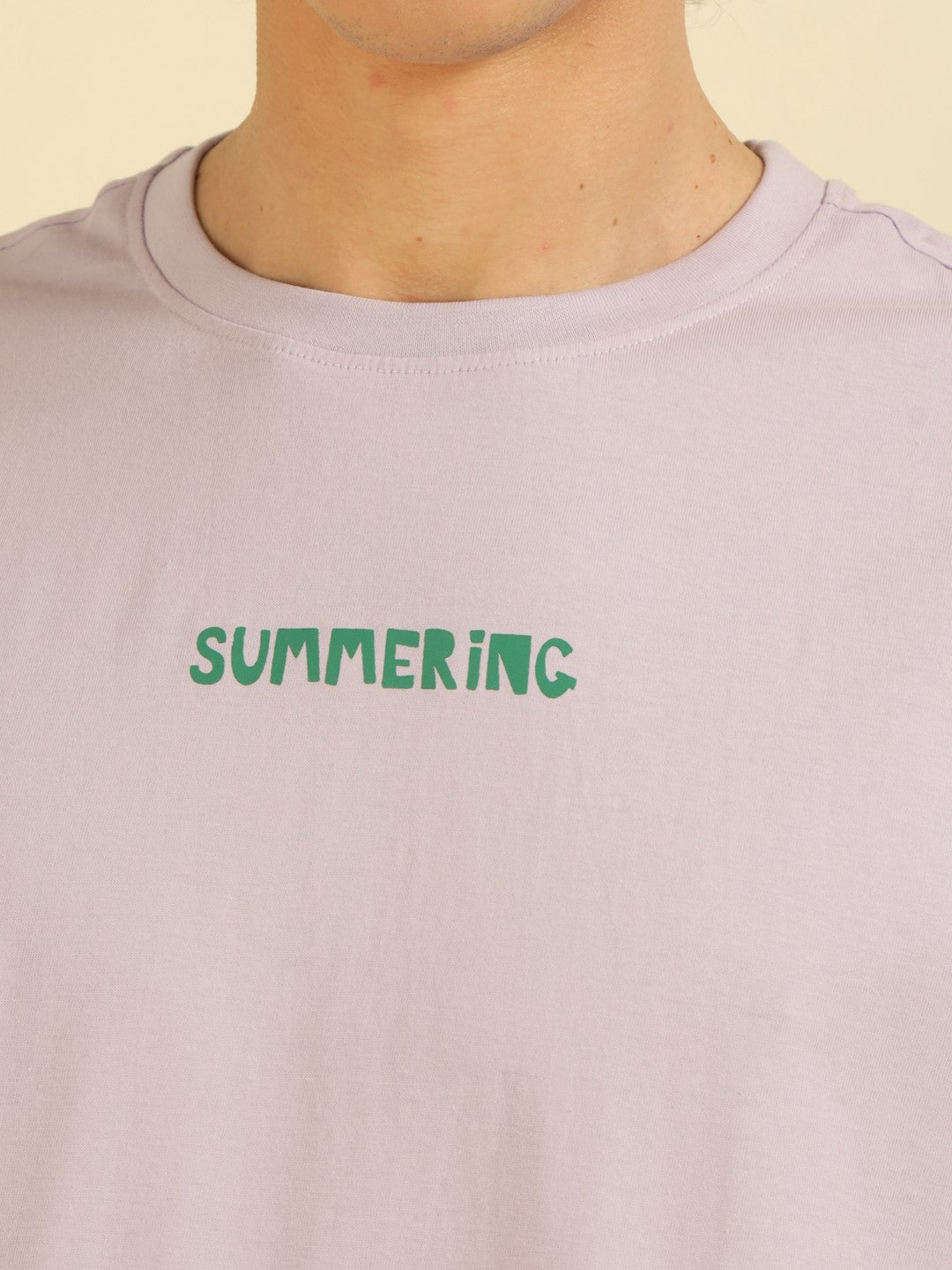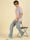 Lilac Typography Print Oversized Half-sleeve Tshirt