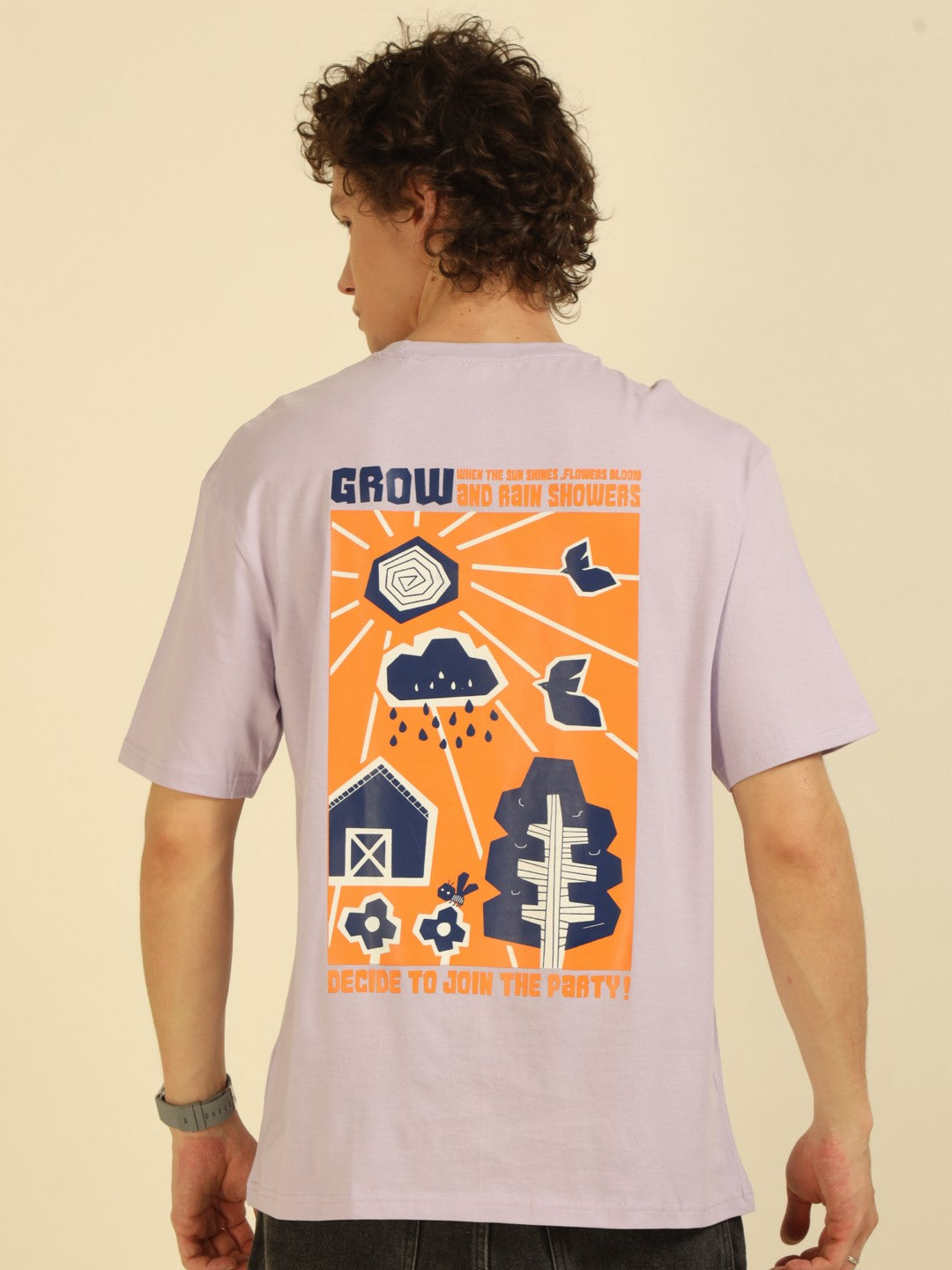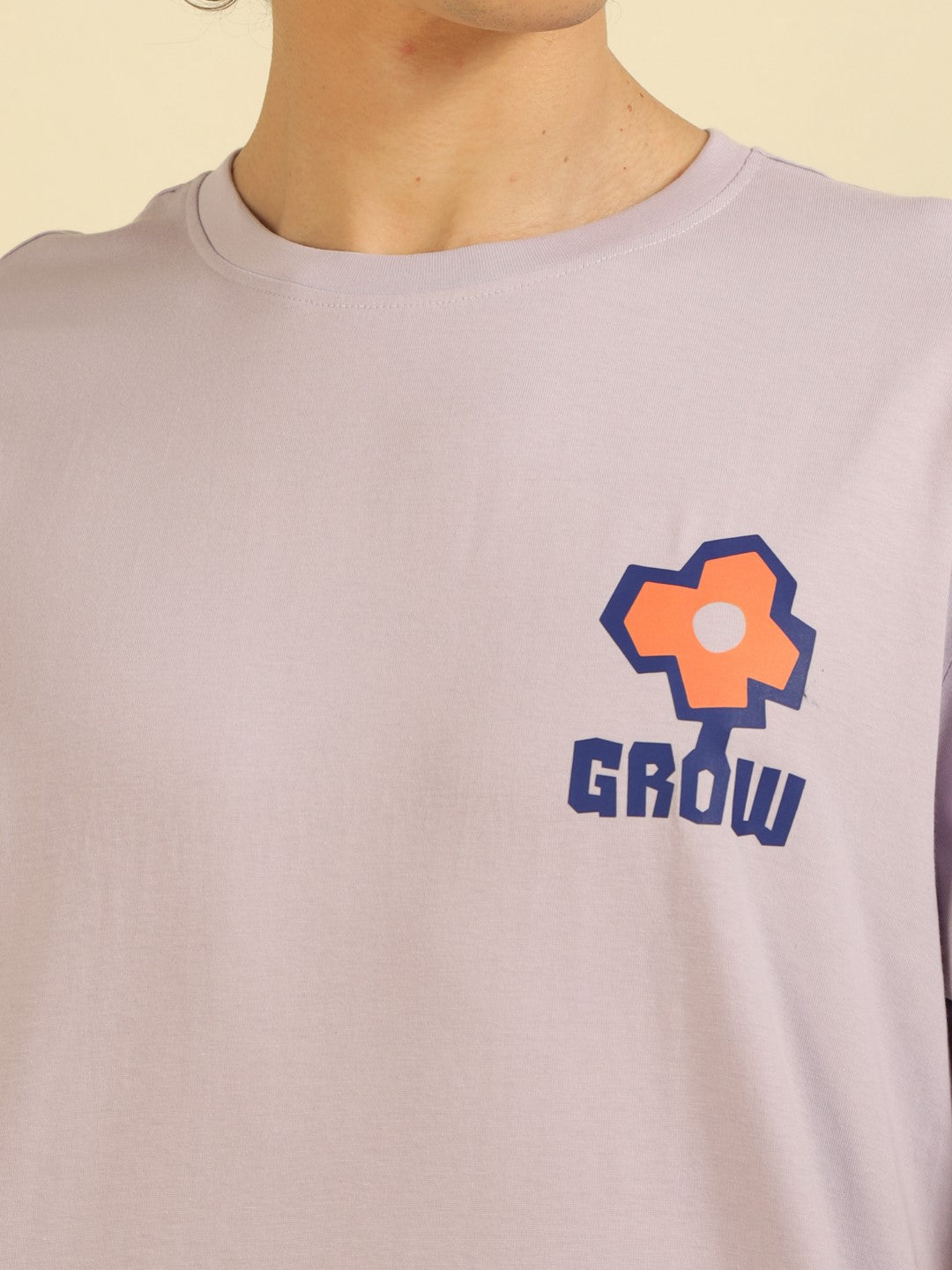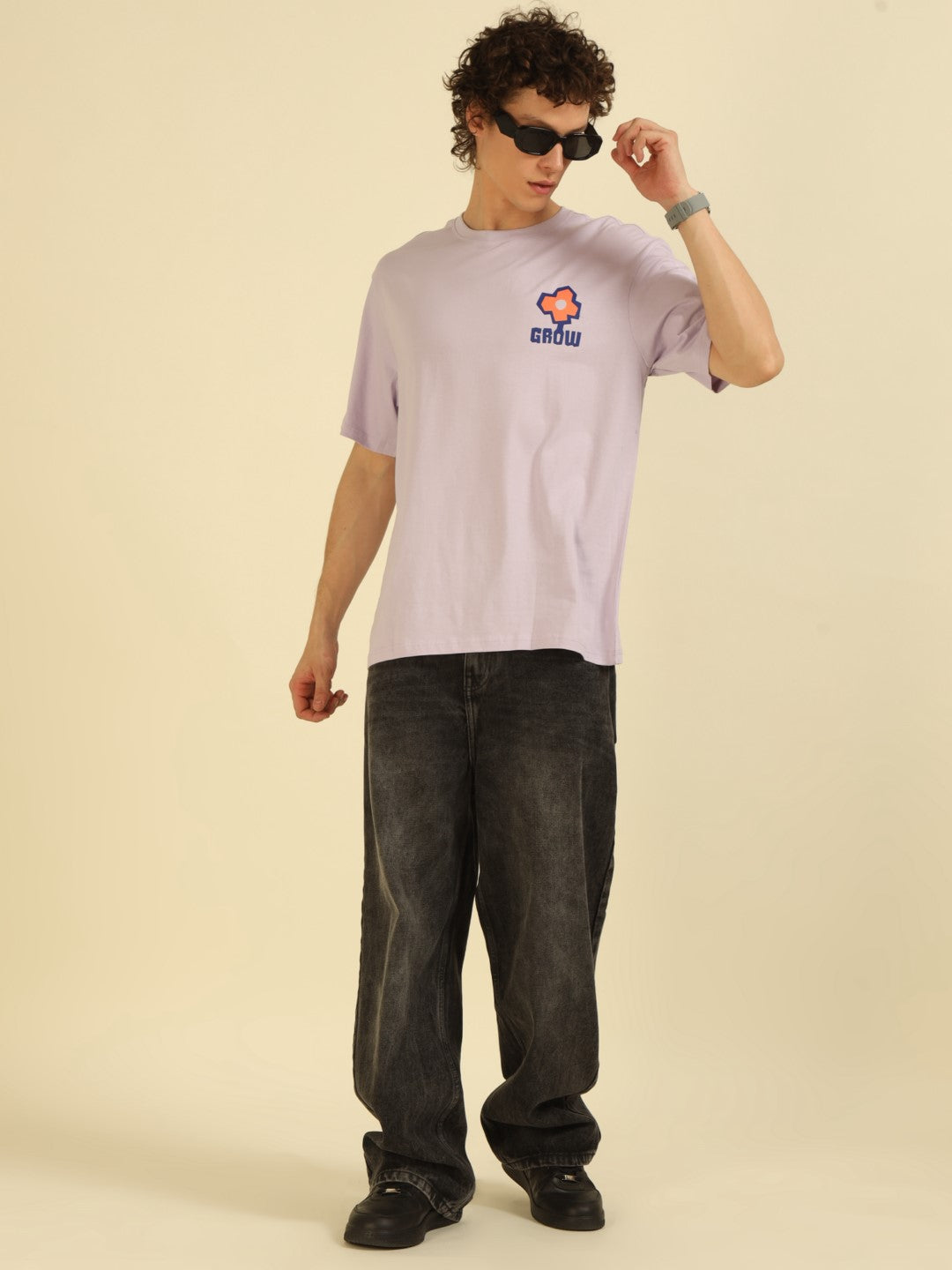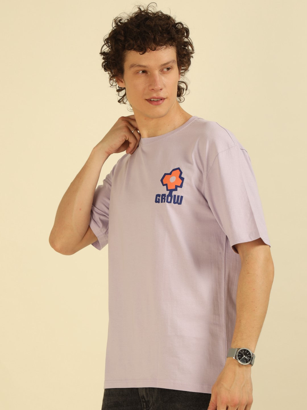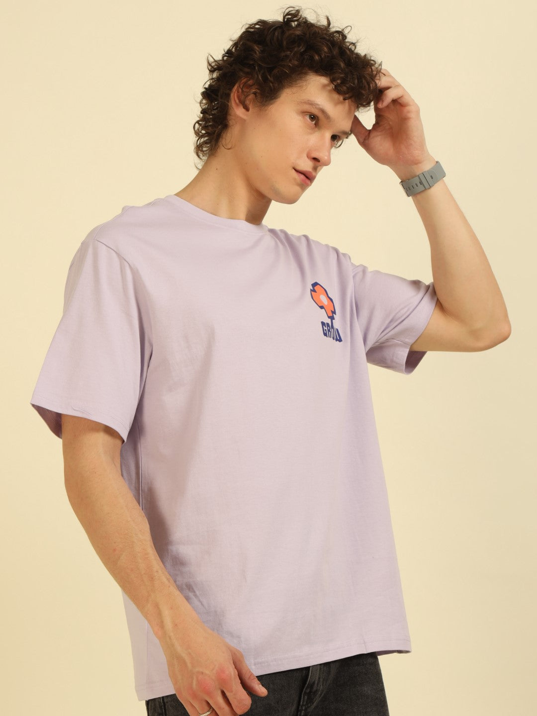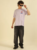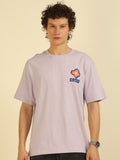 Lilac Typography Print Oversized Half-sleeve Tshirt