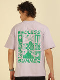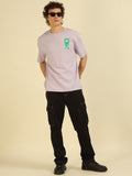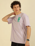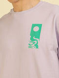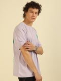 Lilac Typography Print Oversized Half-sleeve Tshirt