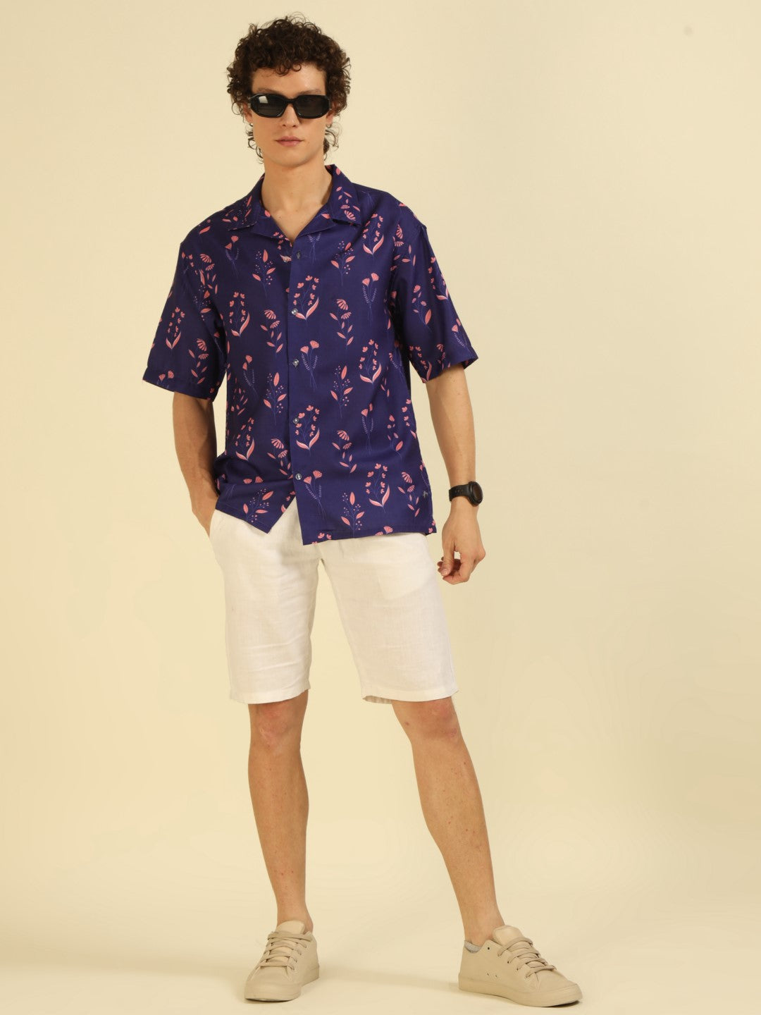 Get ready to bloom in style with our Navy Floral Print Oversized Fit Shirt. This playful piece features a fun floral print and a loose, comfortable fit that will keep you feeling cool and looking chic. Perfect for any occasion, from a casual day out to a night on the town. Don't miss out on this must-have addition to your wardrobe!