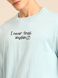 Never Finish Anything: Aqua typography print oversized fit tshirt