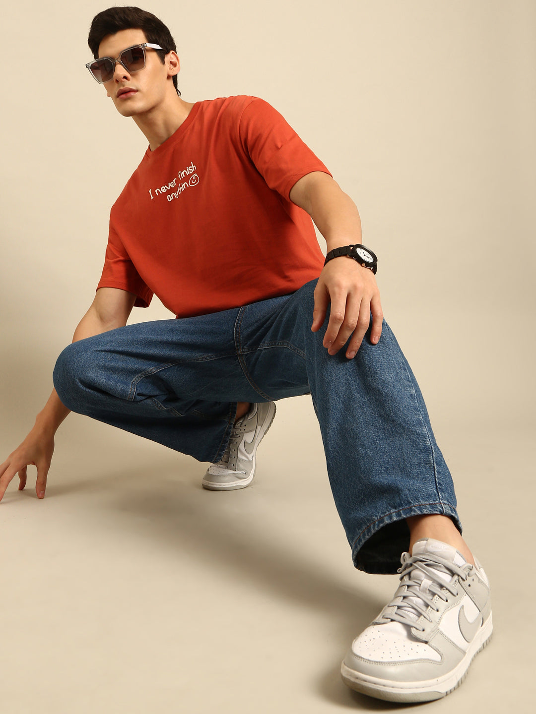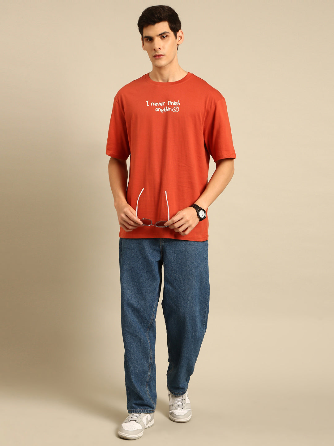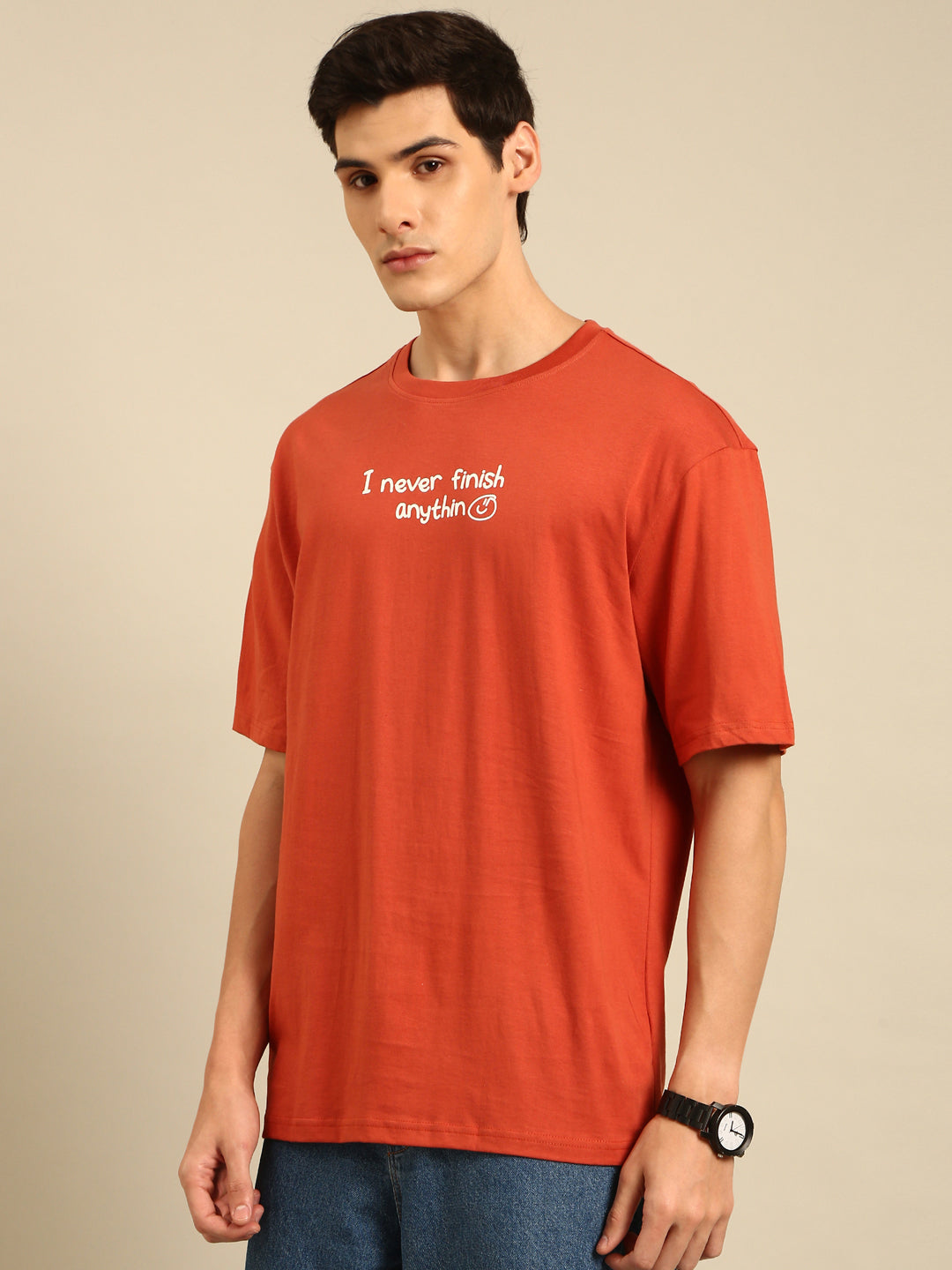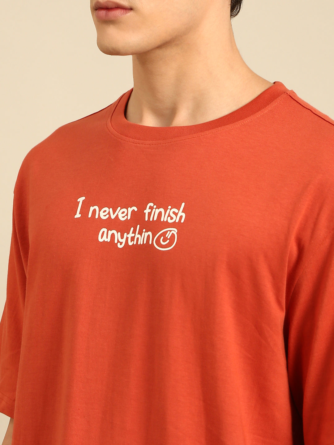 Never Finish Anything: Rust typography print oversized fit tshirt