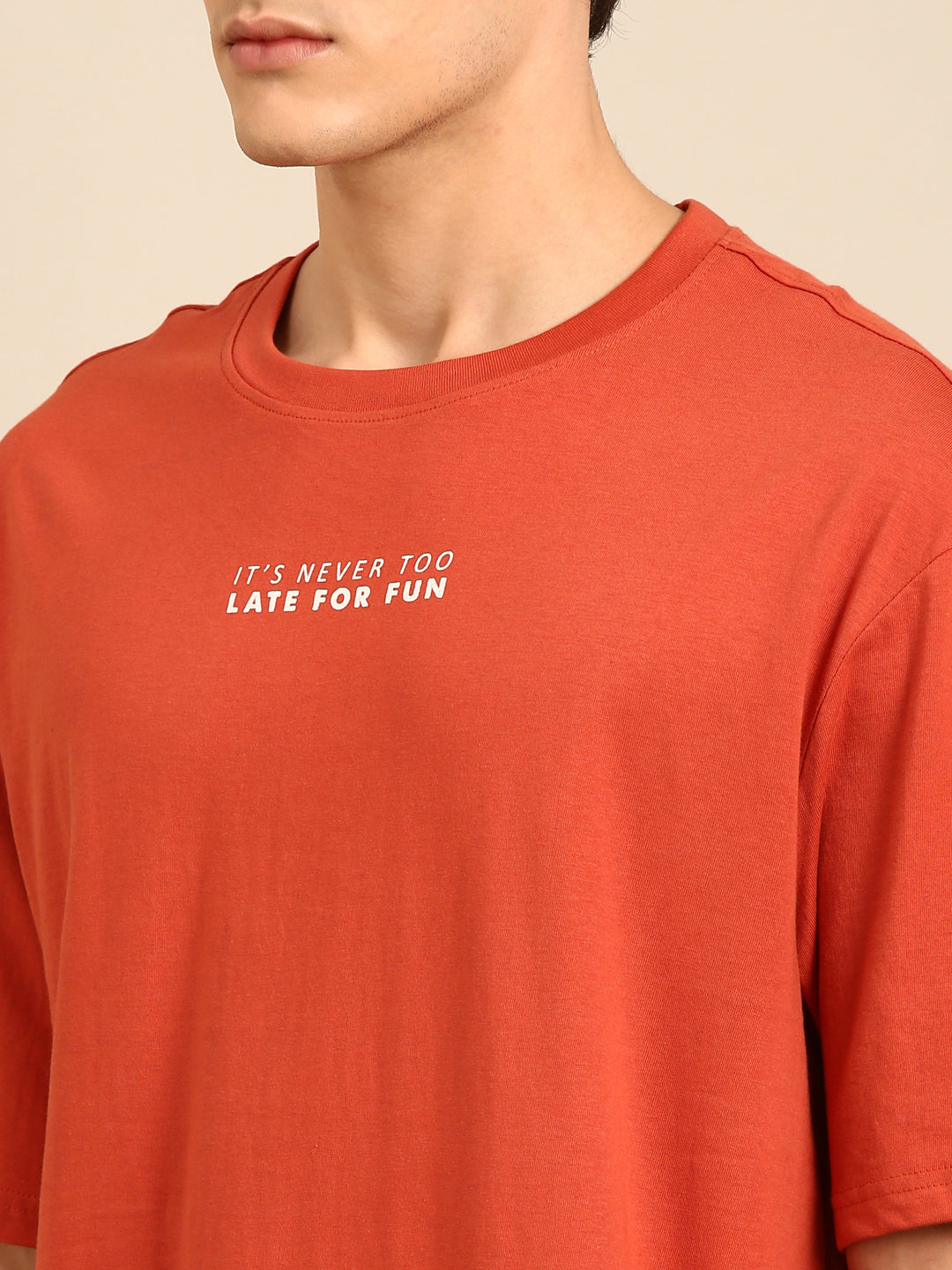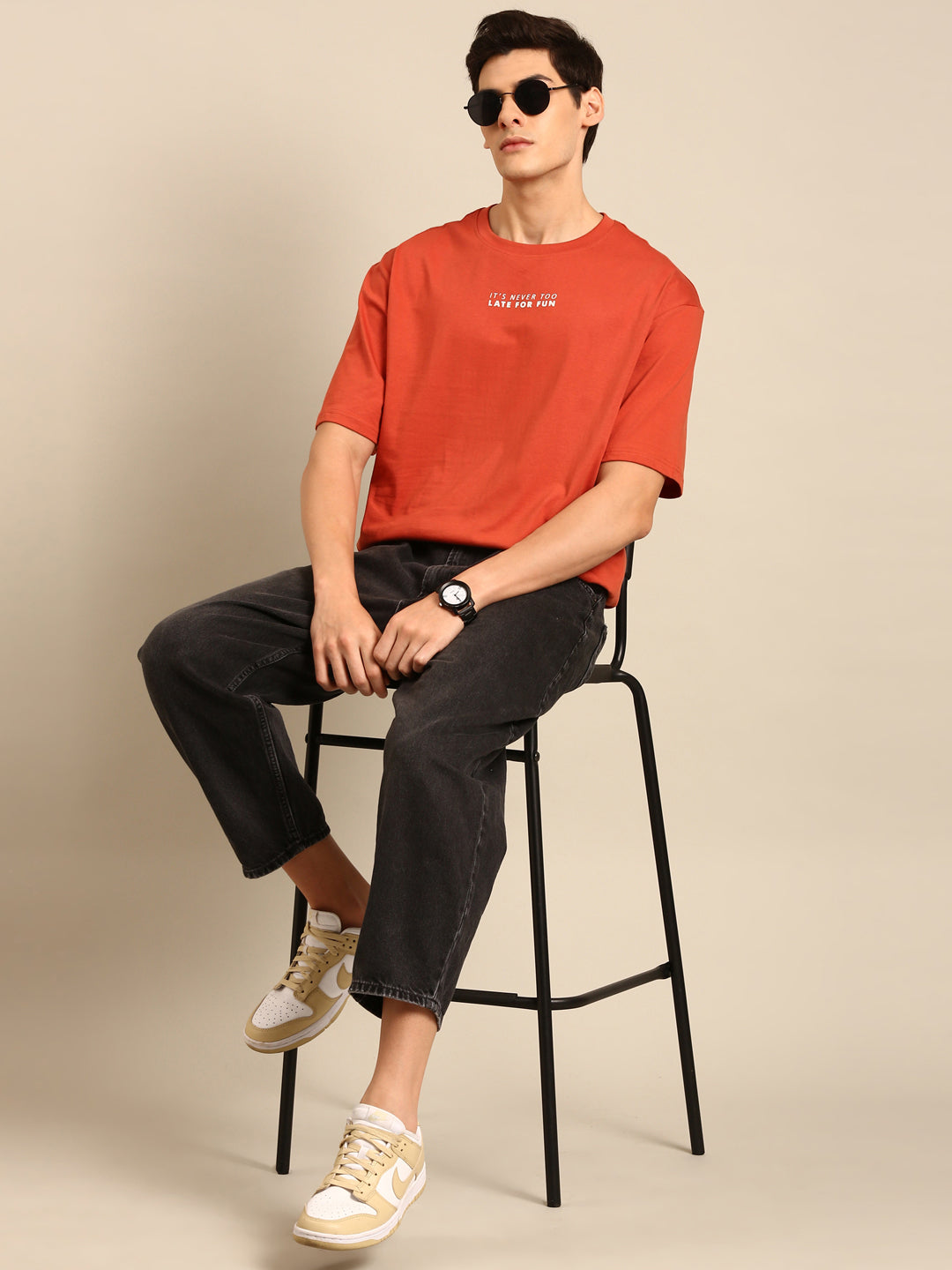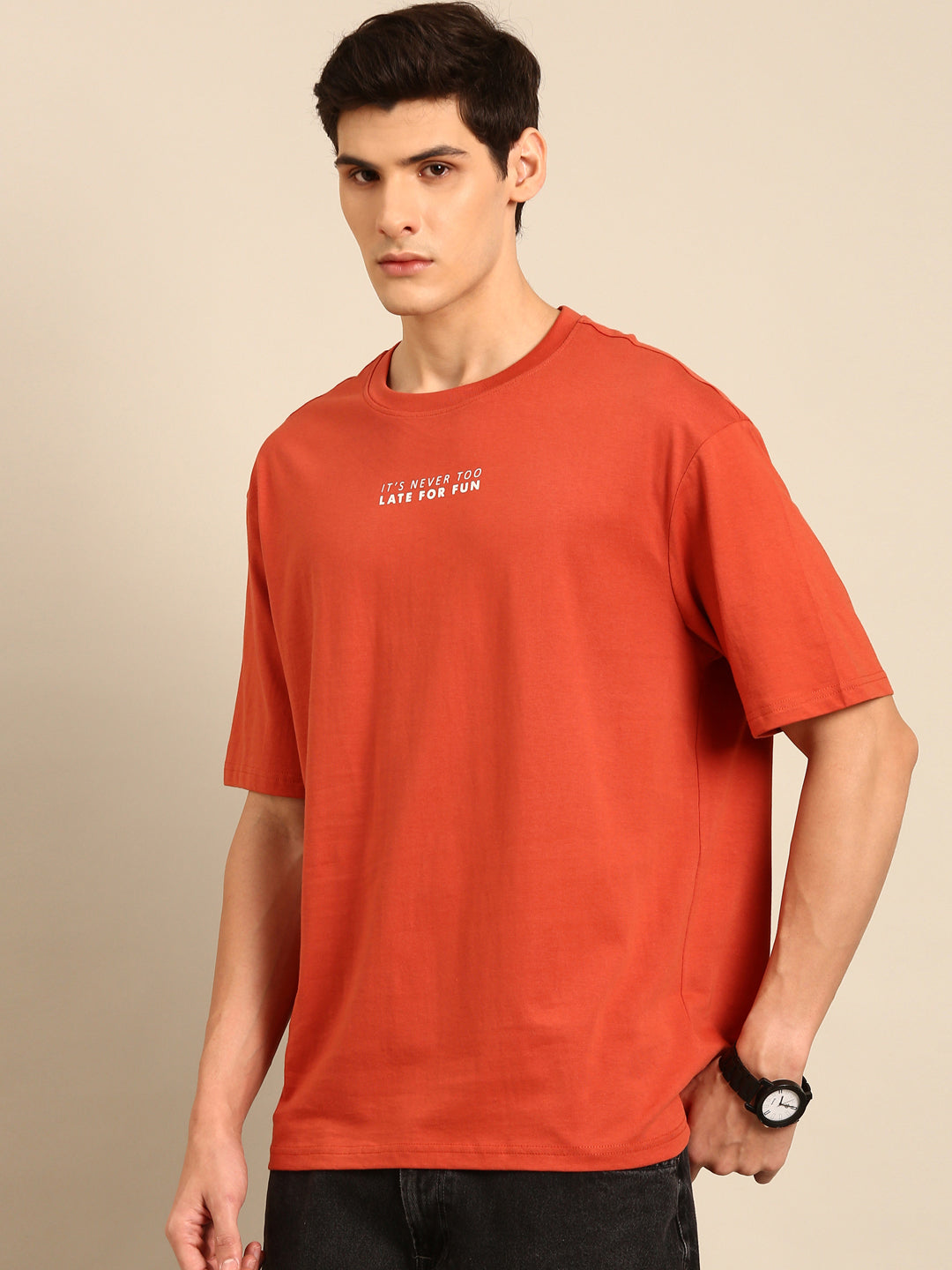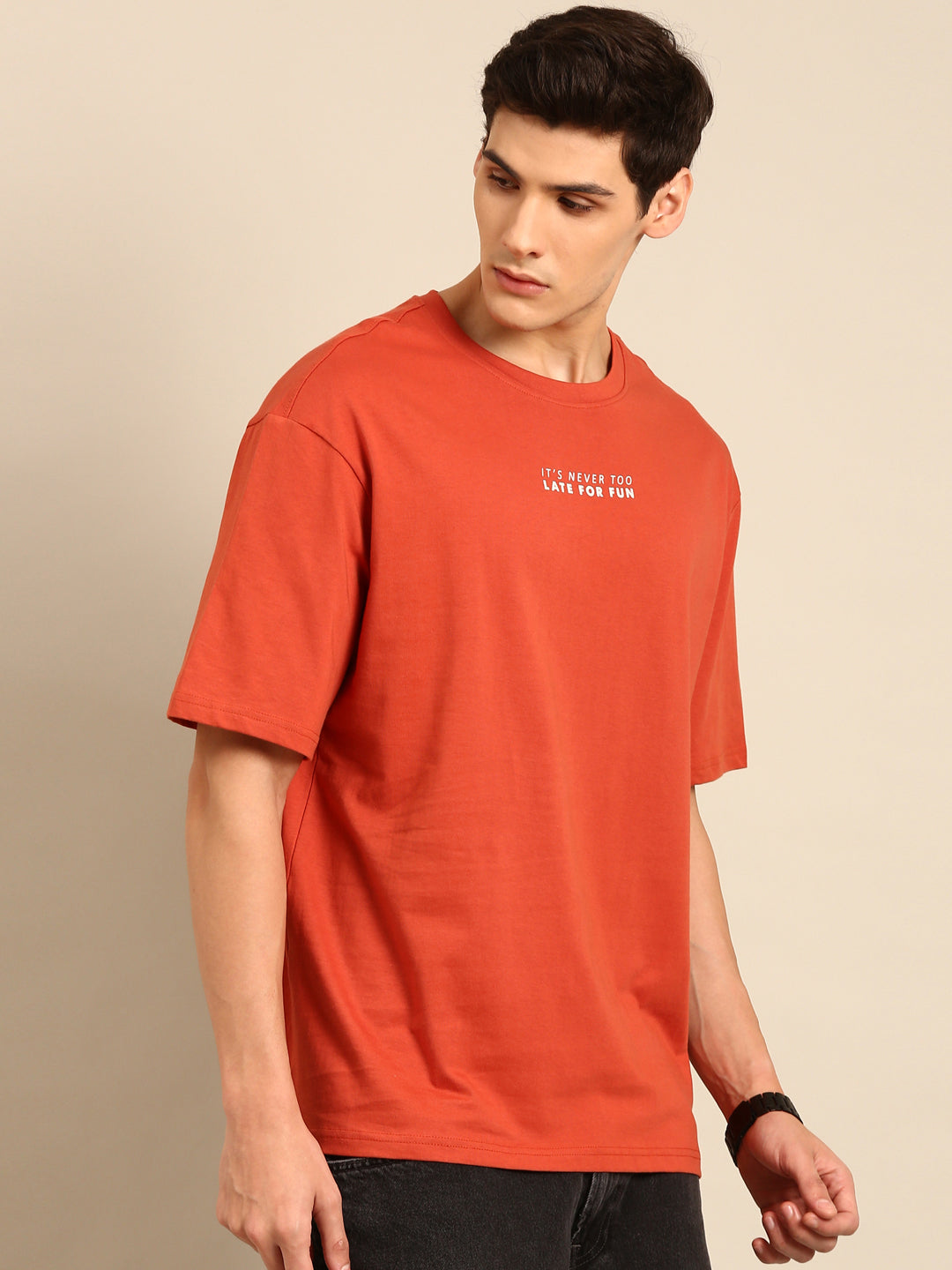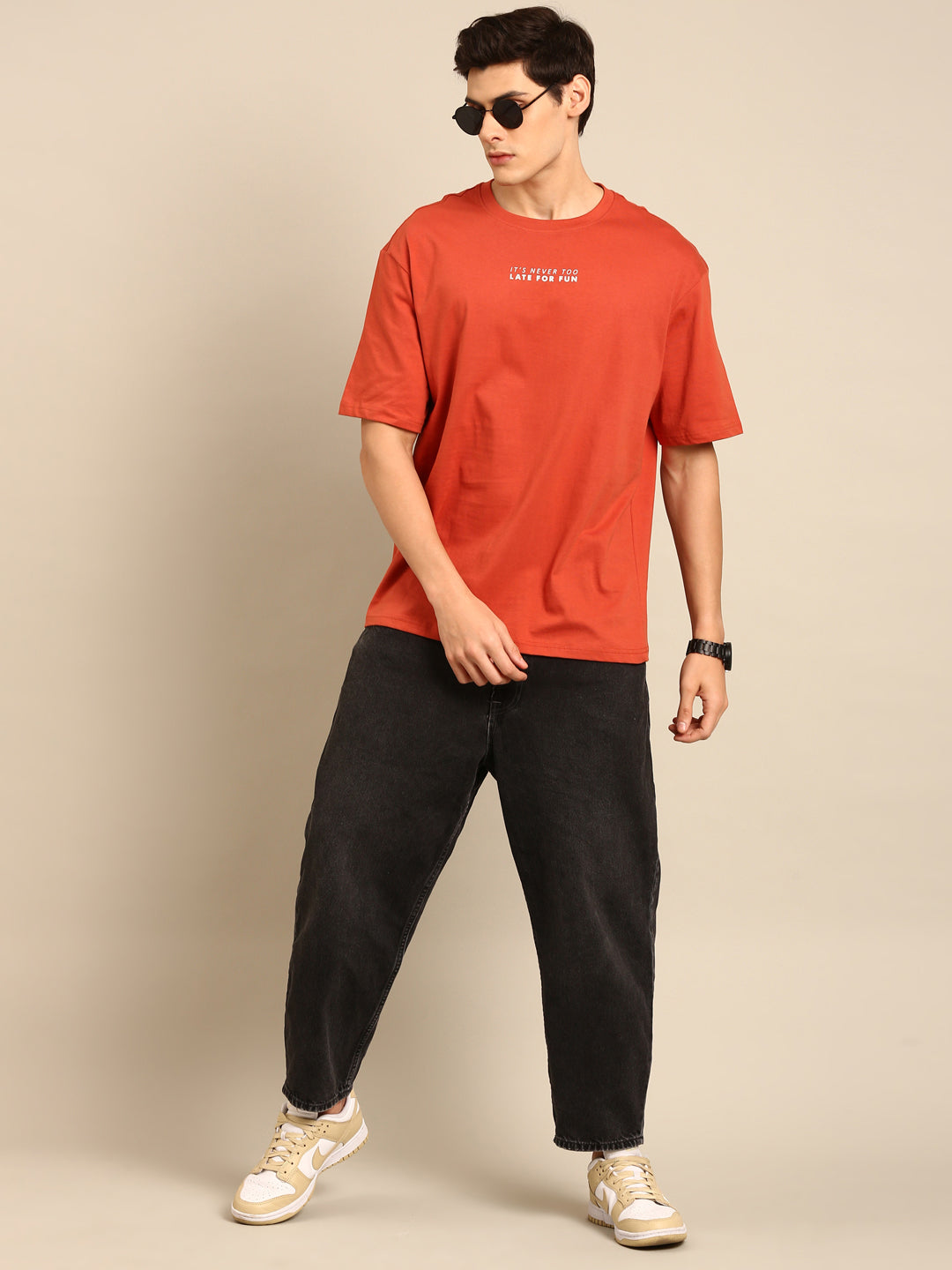 Never too Late for Fun: Rust typography print oversized fit tshirt