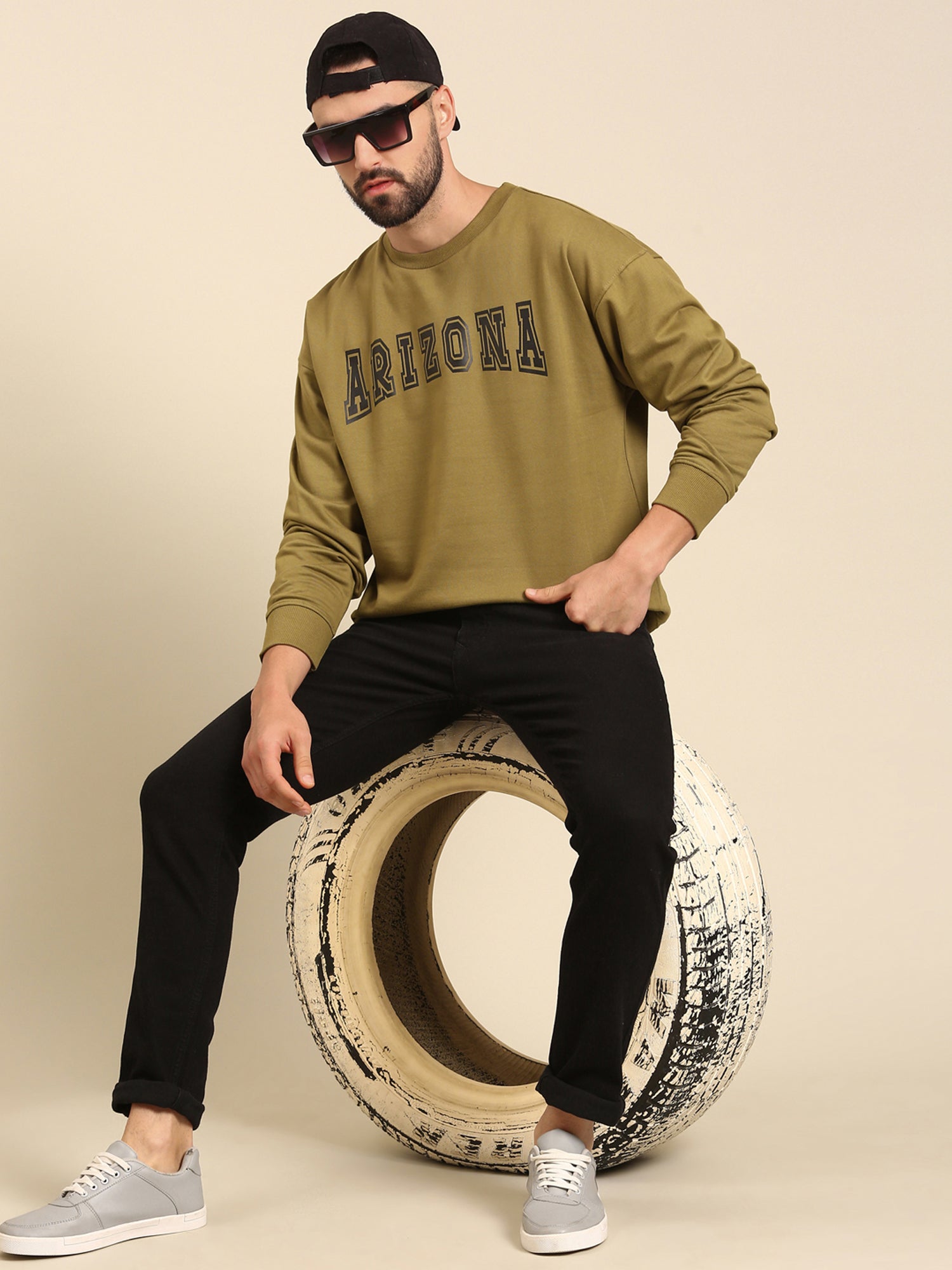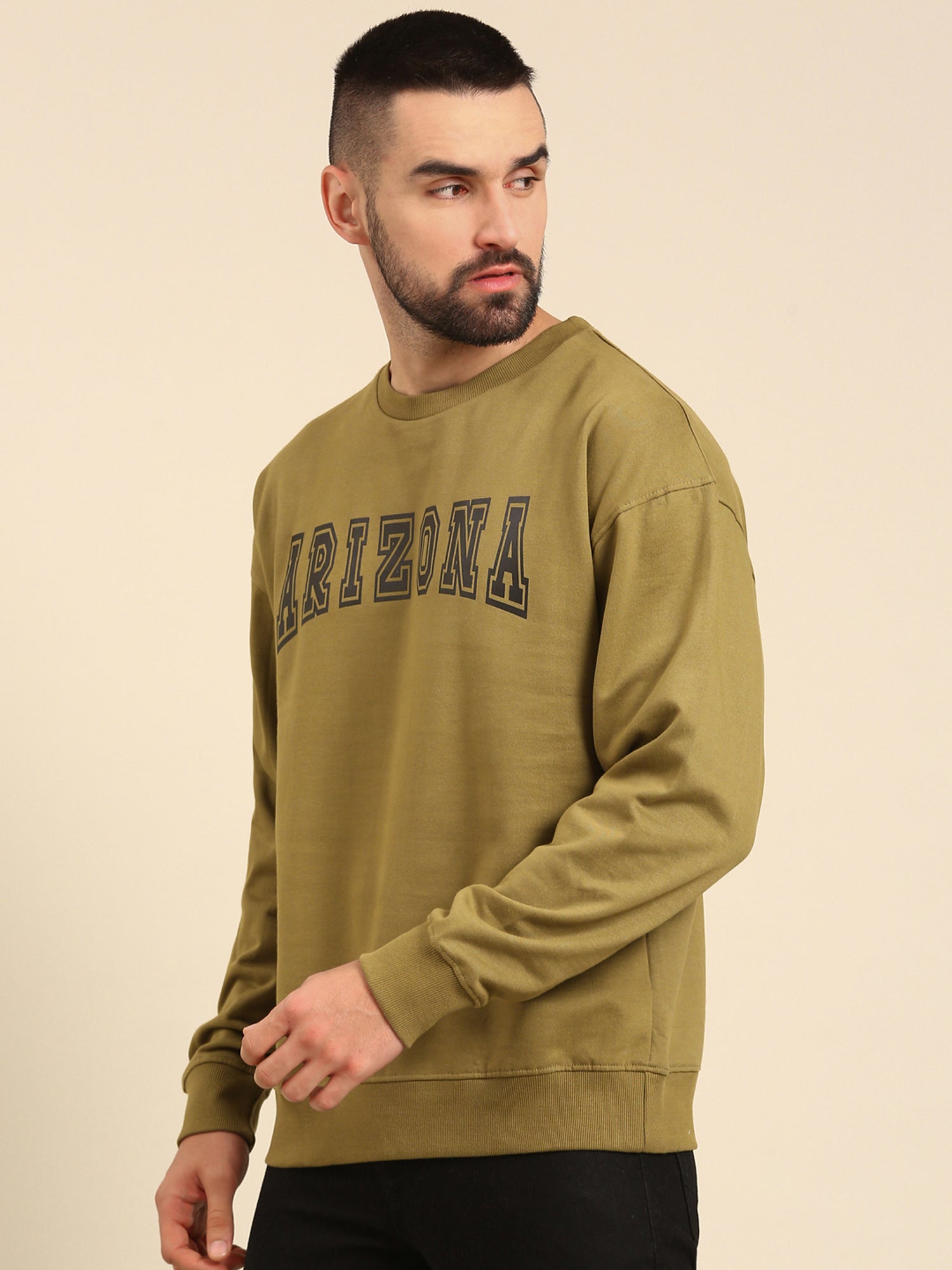ARIZONA: Olive Typography Oversized drop-shoulder Sweatshirt