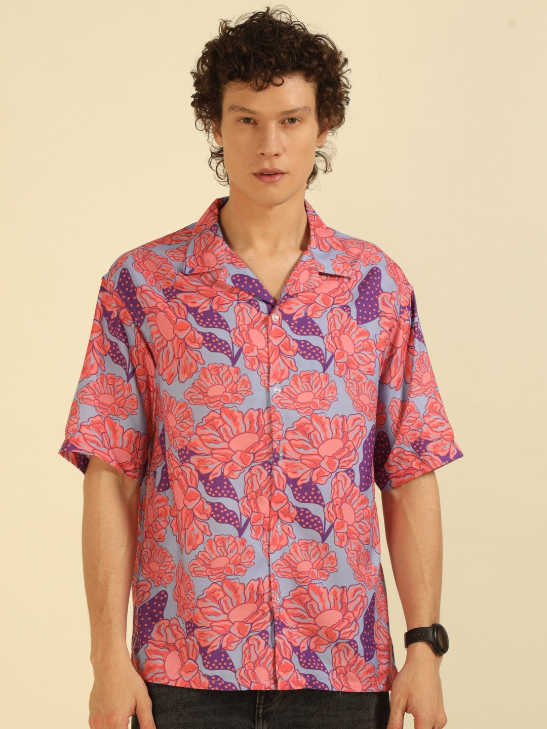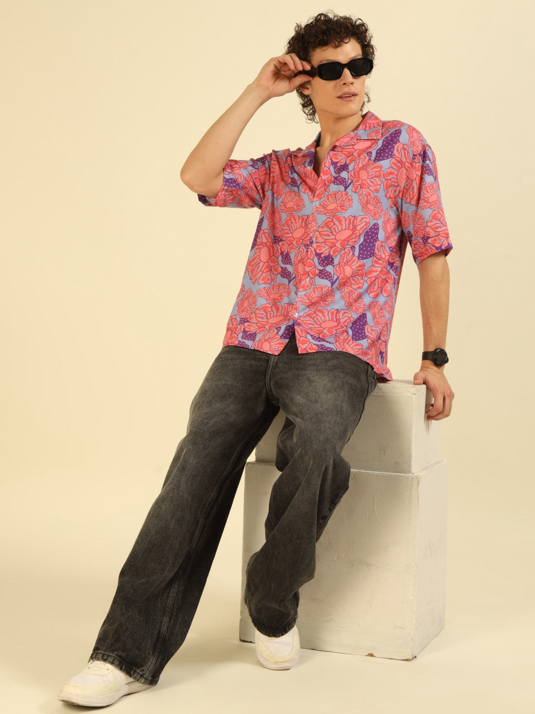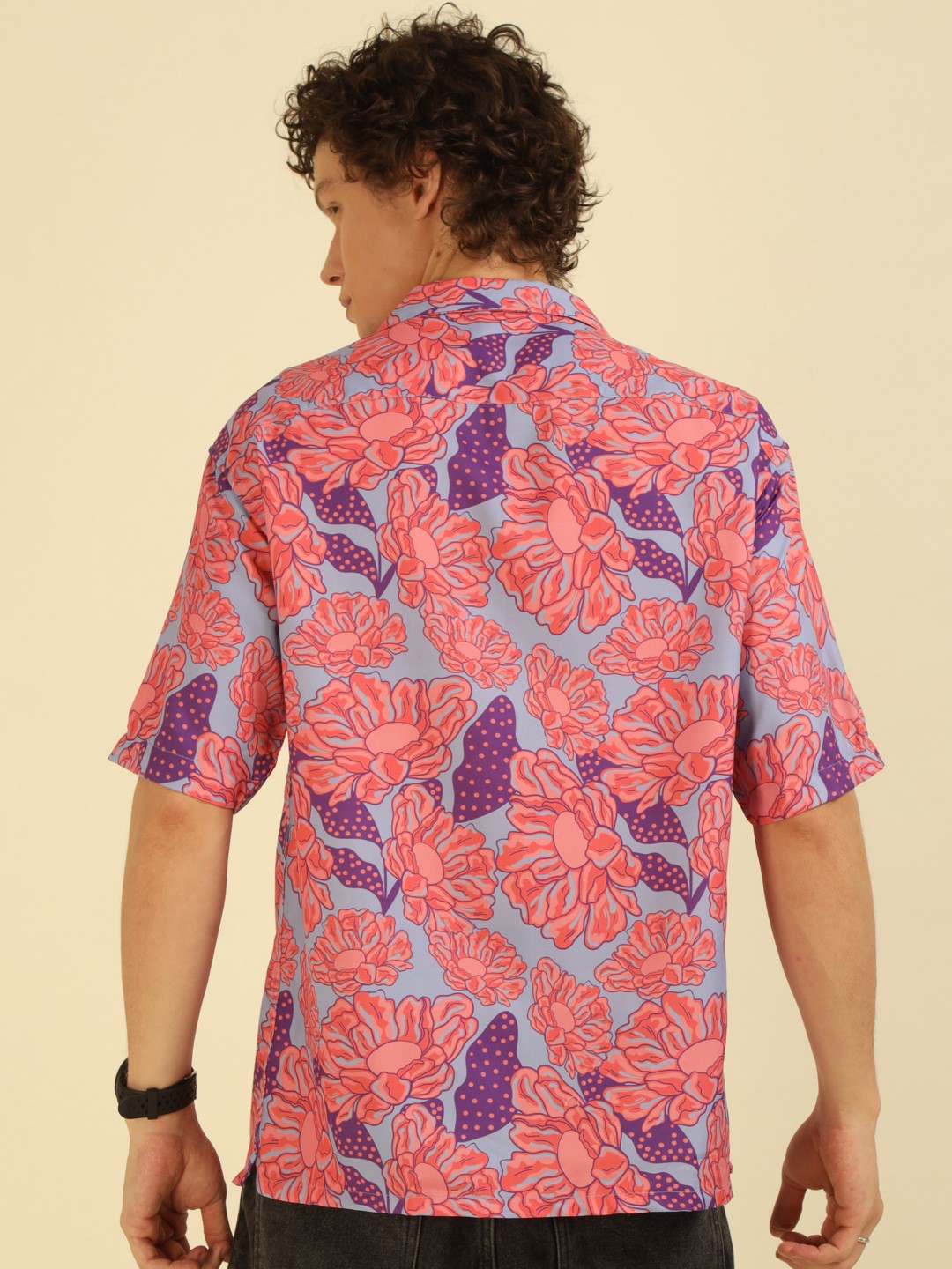 Flaunt your style with this oversized fit shirt featuring a playful pink floral print. The relaxed fit allows for comfort and the vibrant print will add a touch of quirkiness to your wardrobe. Unleash your inner fashionista with this one-of-a-kind piece!