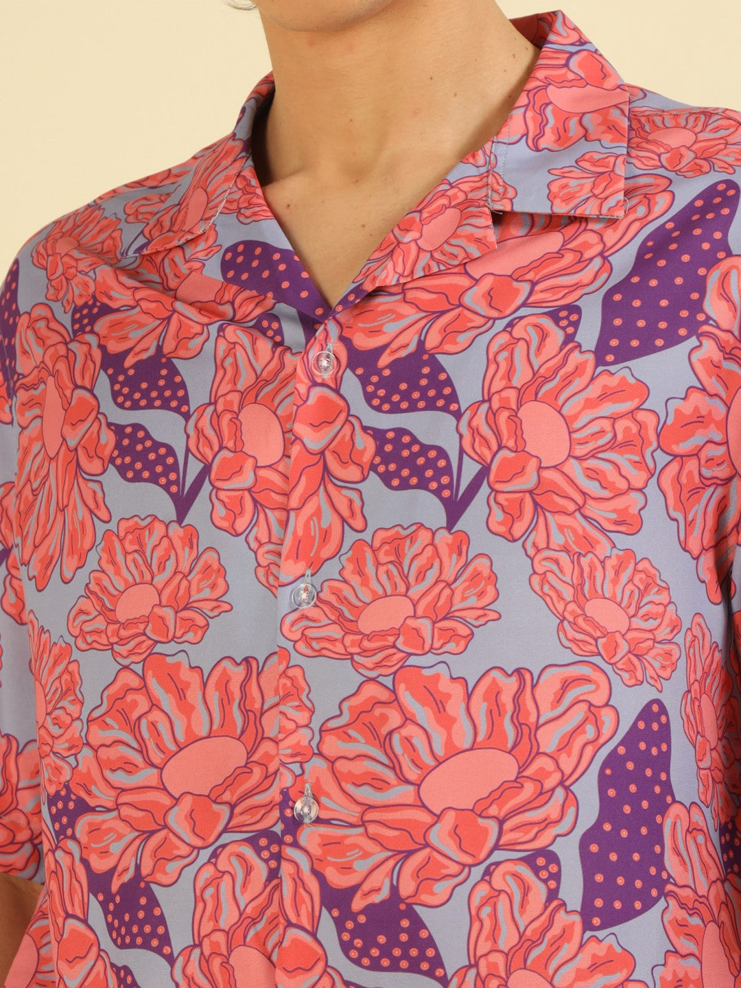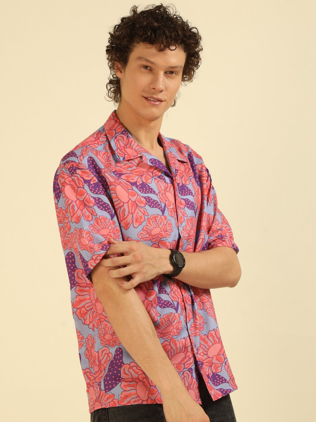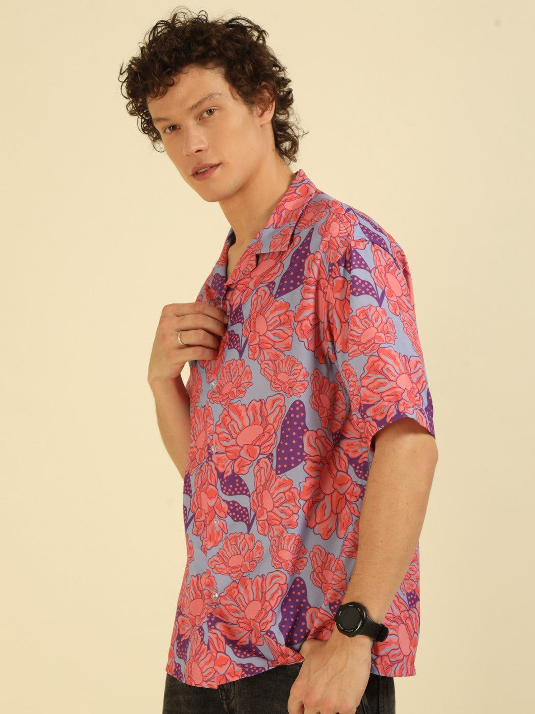 Flaunt your style with this oversized fit shirt featuring a playful pink floral print. The relaxed fit allows for comfort and the vibrant print will add a touch of quirkiness to your wardrobe. Unleash your inner fashionista with this one-of-a-kind piece!