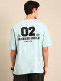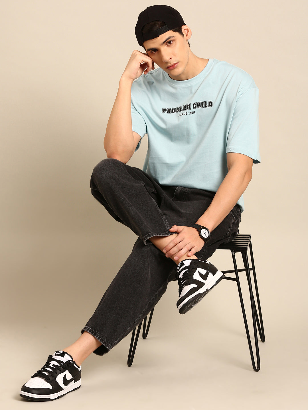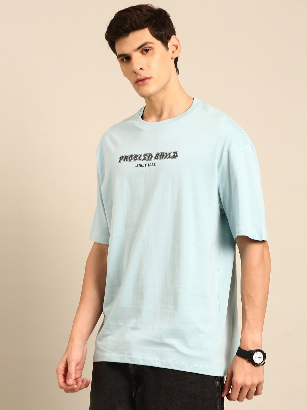 Elevate your tshirt game with our Problem Child oversized fit tee featuring a playful varsity-inspired aqua typography print. Make a statement and stand out in this fun and quirky top. (Don't be a problem child, be a problem solver!)