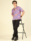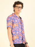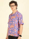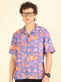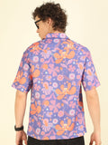 Purple Floral Print Oversized Fit Shirt