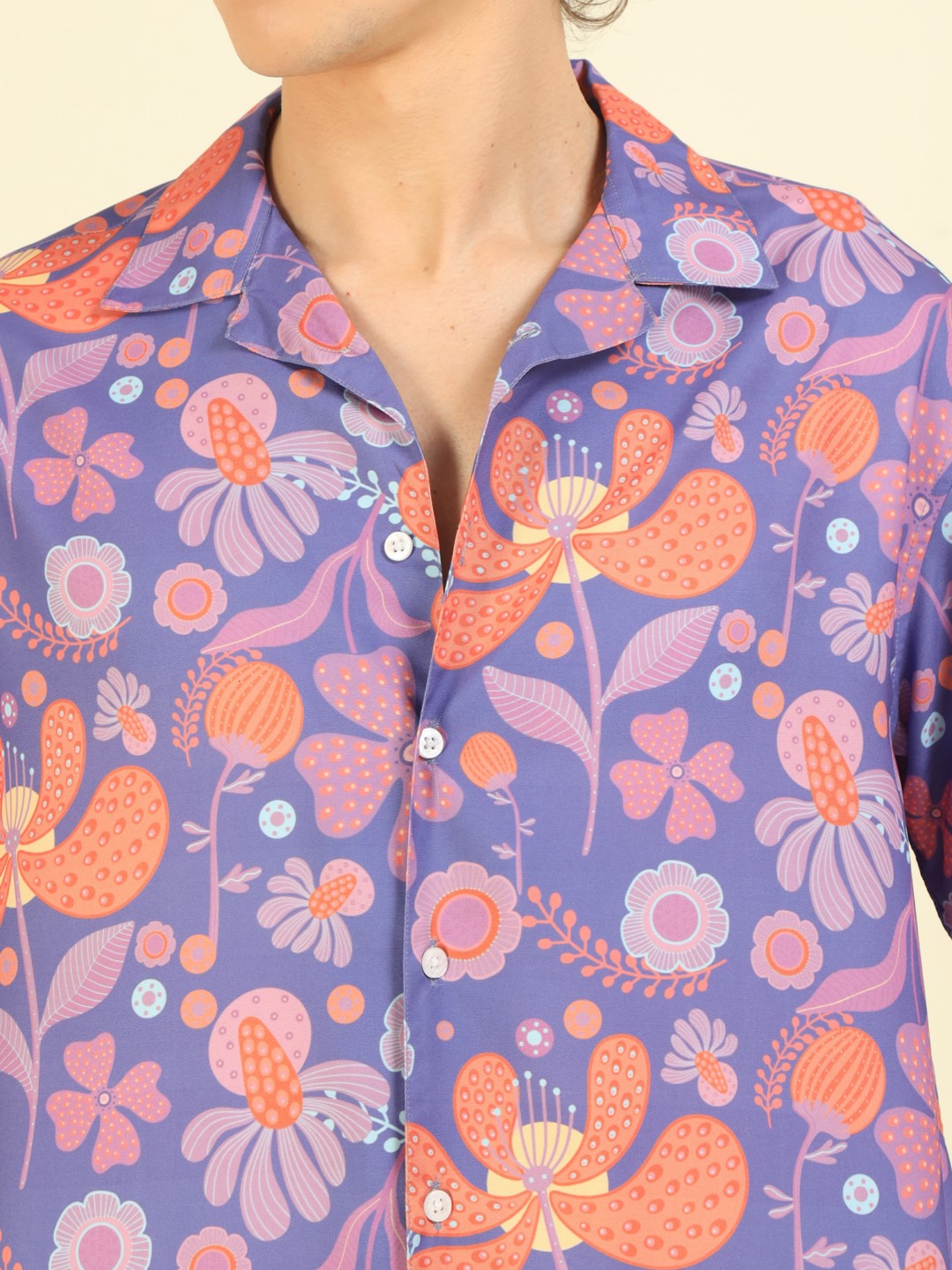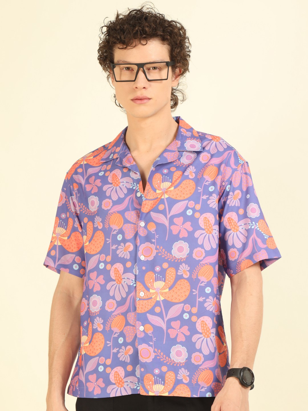 Get ready to turn heads with this stunning oversized shirt, featuring a playful purple floral print. Its relaxed fit provides all-day comfort and effortless style. Perfect for adding a fun and quirky touch to any outfit. (Seriously, don't be surprised if you get stopped for compliments!)
